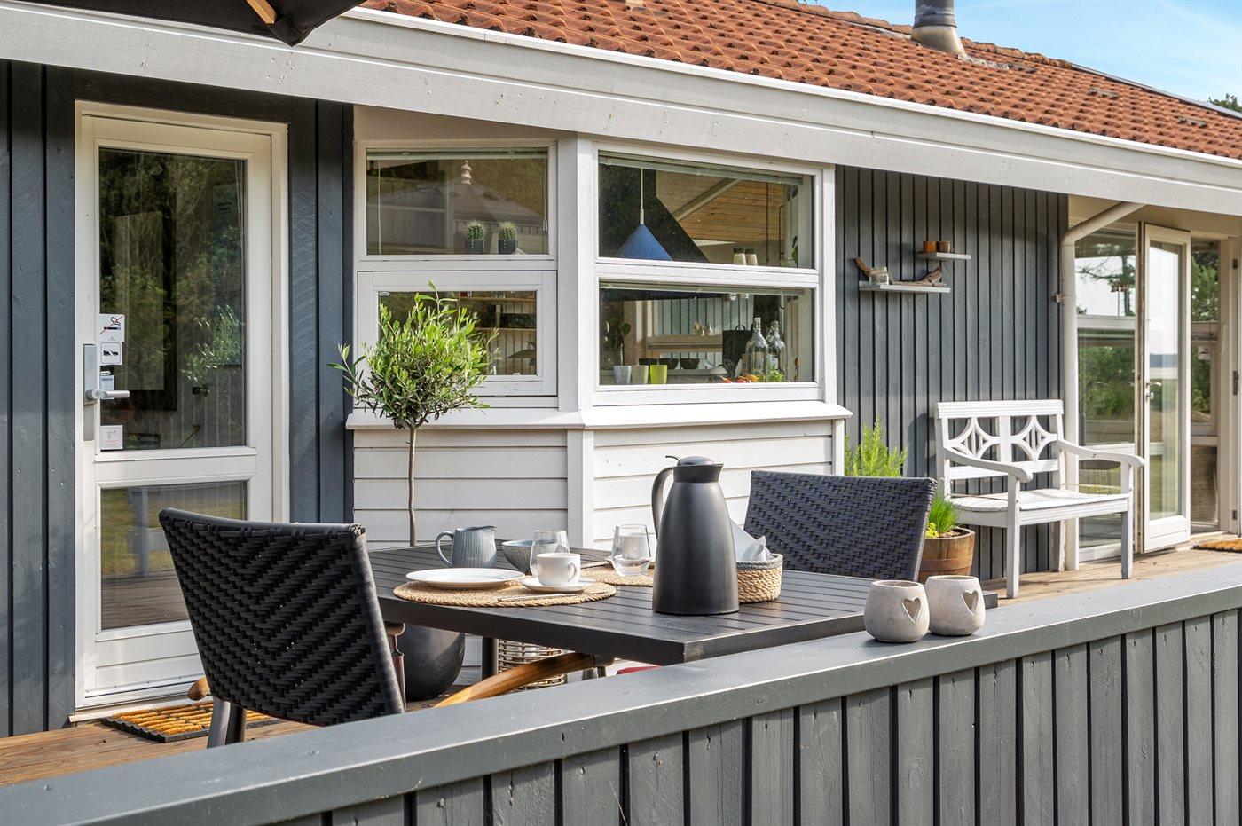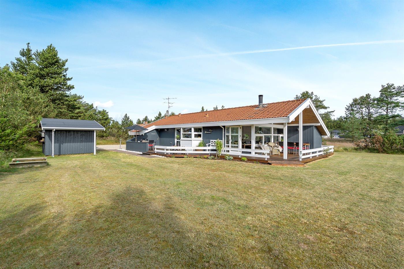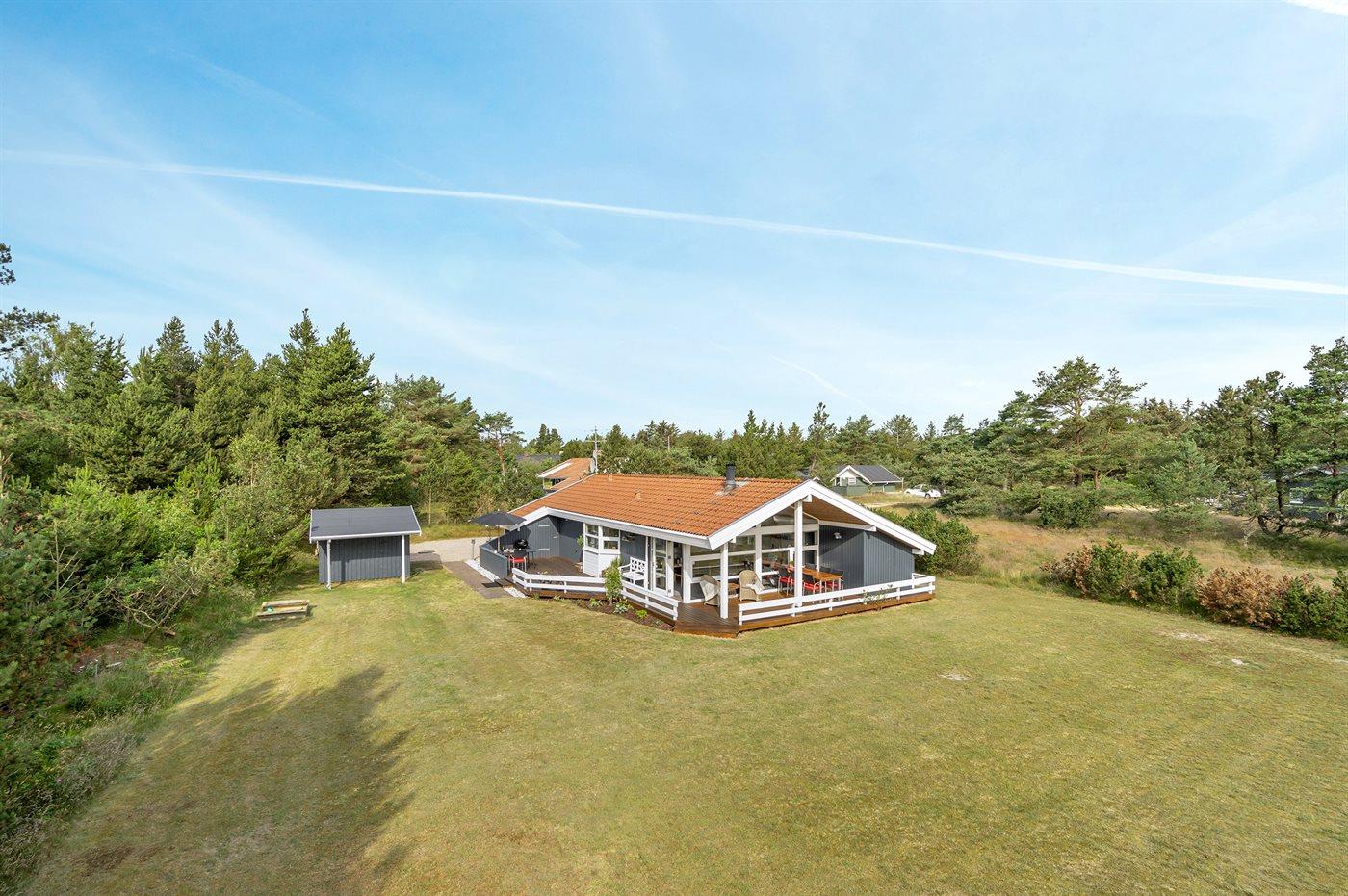 Ferieboligen er beliggende på en 1600 m² stor naturgrund. Der er 4000 m til havet. Nærmeste forretning er beliggende i en afstand af 7500 m. Til ferieboligen hører 50 m² terrasseareal. Desuden er der 10 m² overdækket terrasse. Der er redskabsrum. Gynge. Sandkasse. Der er installeret stik til opladning af elbil. Type 2 stik. Parkering ved ferieboligen.