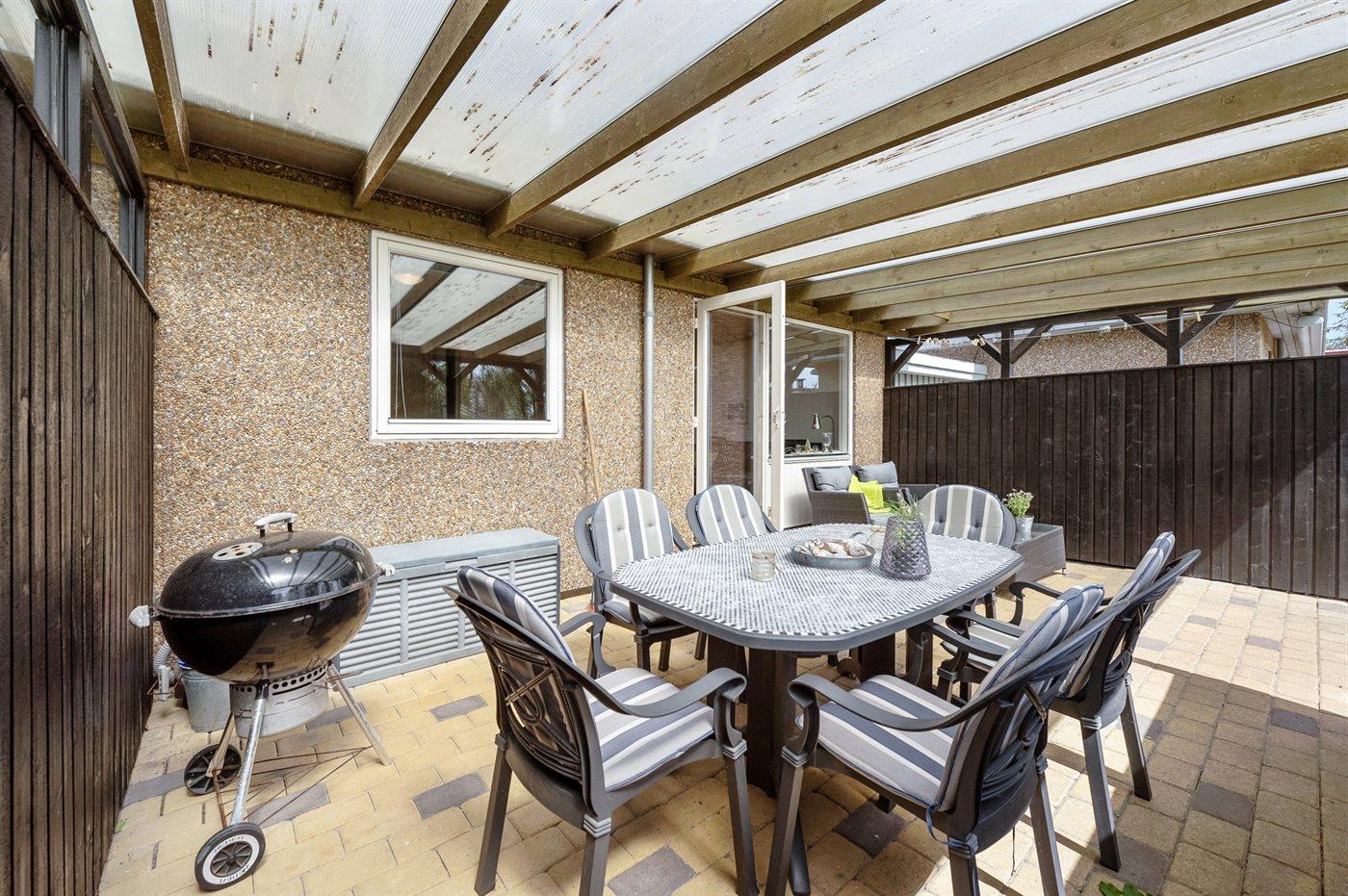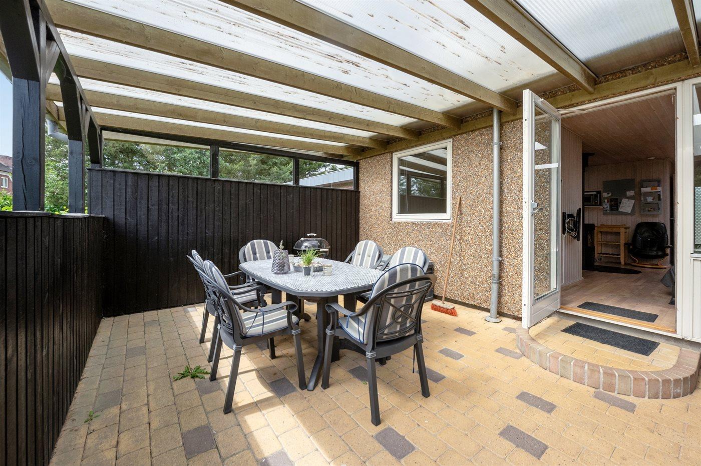 Ferieboligen er beliggende på en 400 m² stor havegrund. Der er 900 m til havet. Nærmeste forretning er beliggende i en afstand af 200 m. Desuden er der 23 m² overdækket terrasse. Gynge. Parkering ved ferieboligen.