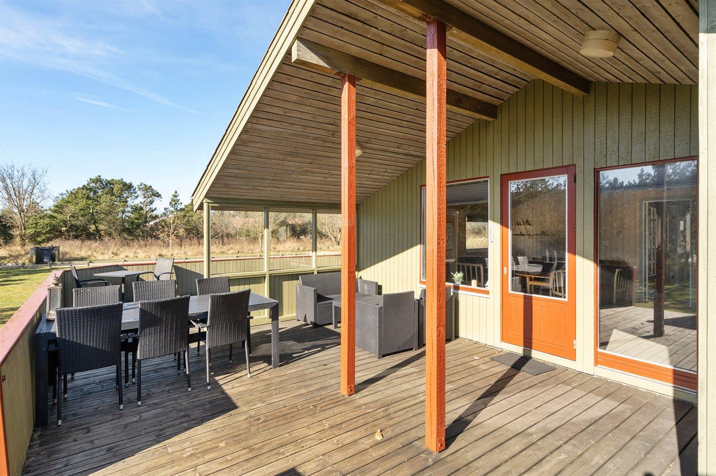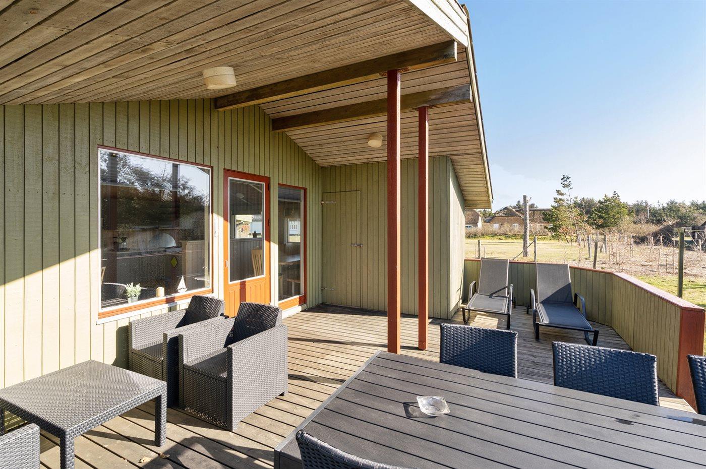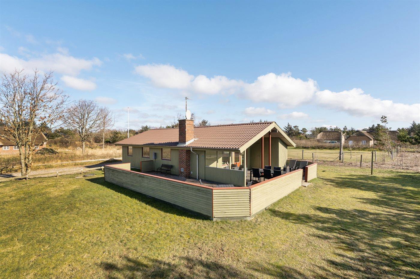 Hyggeligt sommerhus tæt på stranden i Blåvand med stor terrasse og plads til hele familien.
