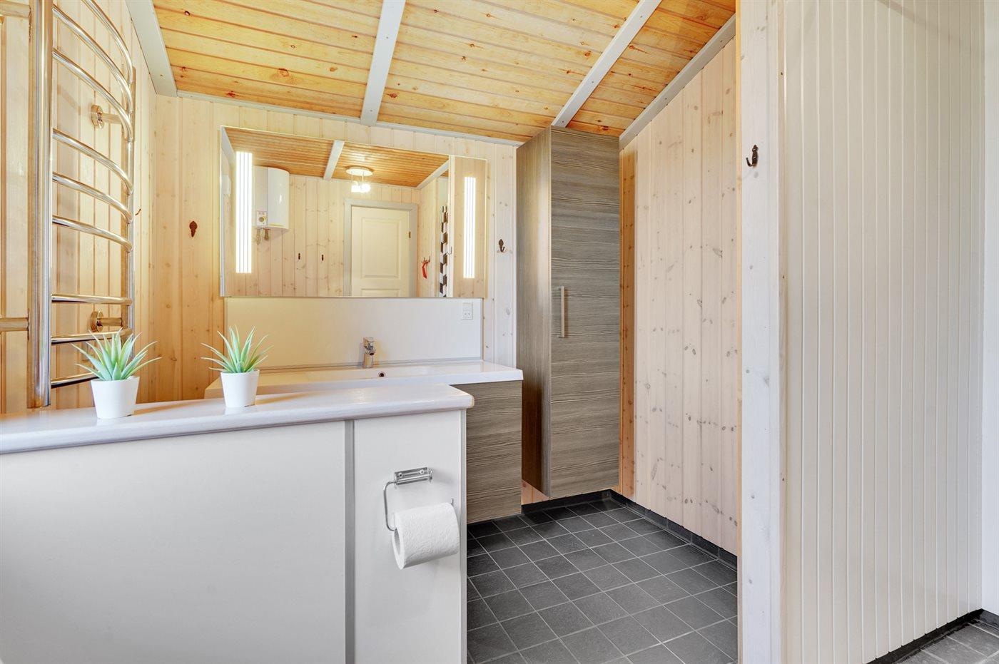 Der er 1 badeværelse med bruser og 1 toilet.. Der er gulvvarme på 1 badeværelse.
