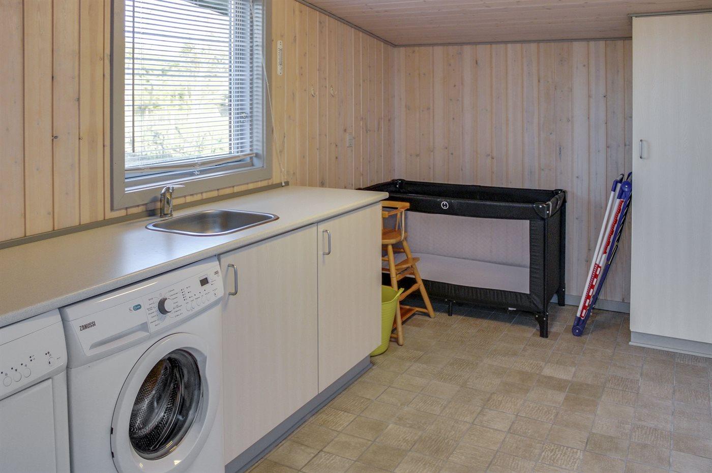 Køkkenet er udstyret med 1 køleskab. Der er 4 elkogeplader, bageovn, mikrobølgeovn samt opvaskemaskine.