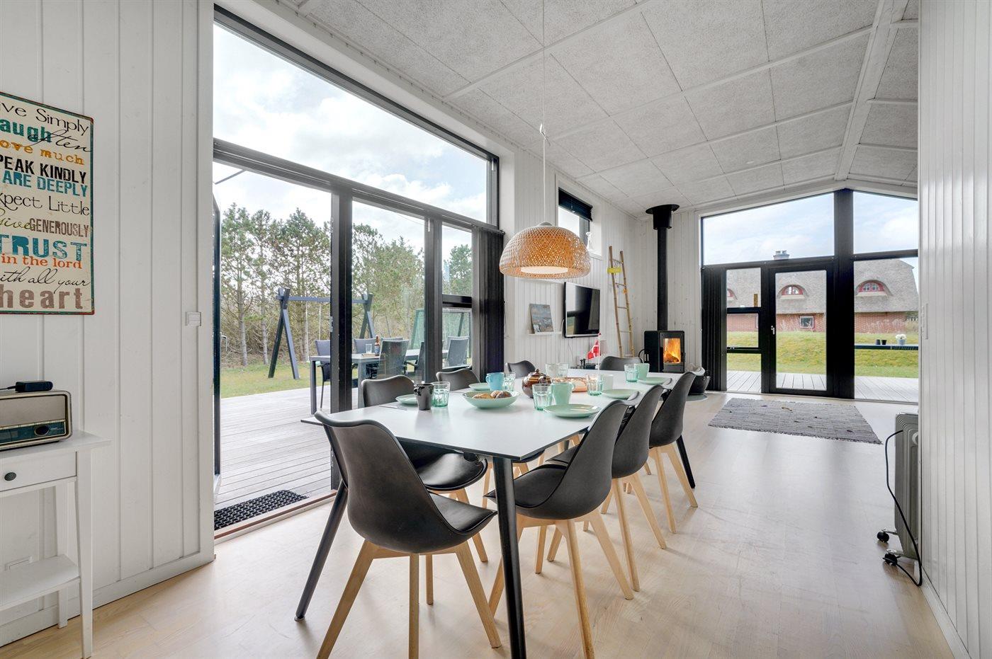 Sommerhuset egner sig til 8 personer. Ferieboligen er på 117 m² og er bygget i 2014. Det er ikke tilladt at medbringe husdyr. Ferieboligen er udstyret med energibesparende varmepumpe. Ferieboligen har vaskemaskine. Tørretumbler. Frysekapacitet på 90 liter. Der er desuden brændeovn. Til de små er der 1 stk. barnestol.