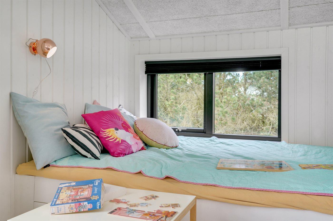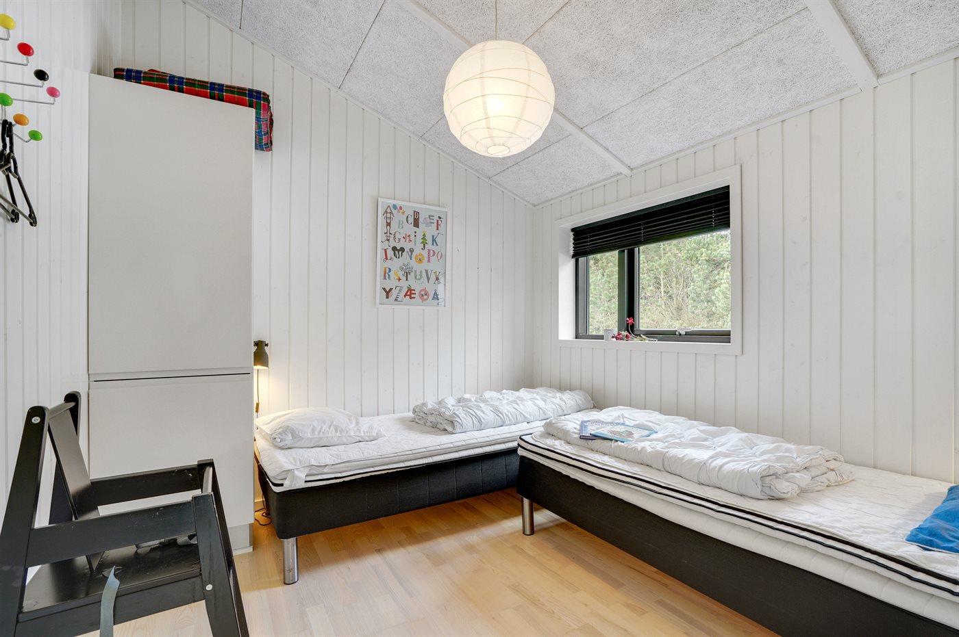 Der er i alt 3 soveværelser. Sovepladserne fordeler sig på: 4 sovepladser i dobbeltsenge. 2 sovepladser i enkeltsenge. 2 sovepladser i alkove. Derudover er der 1 stk. barneseng.