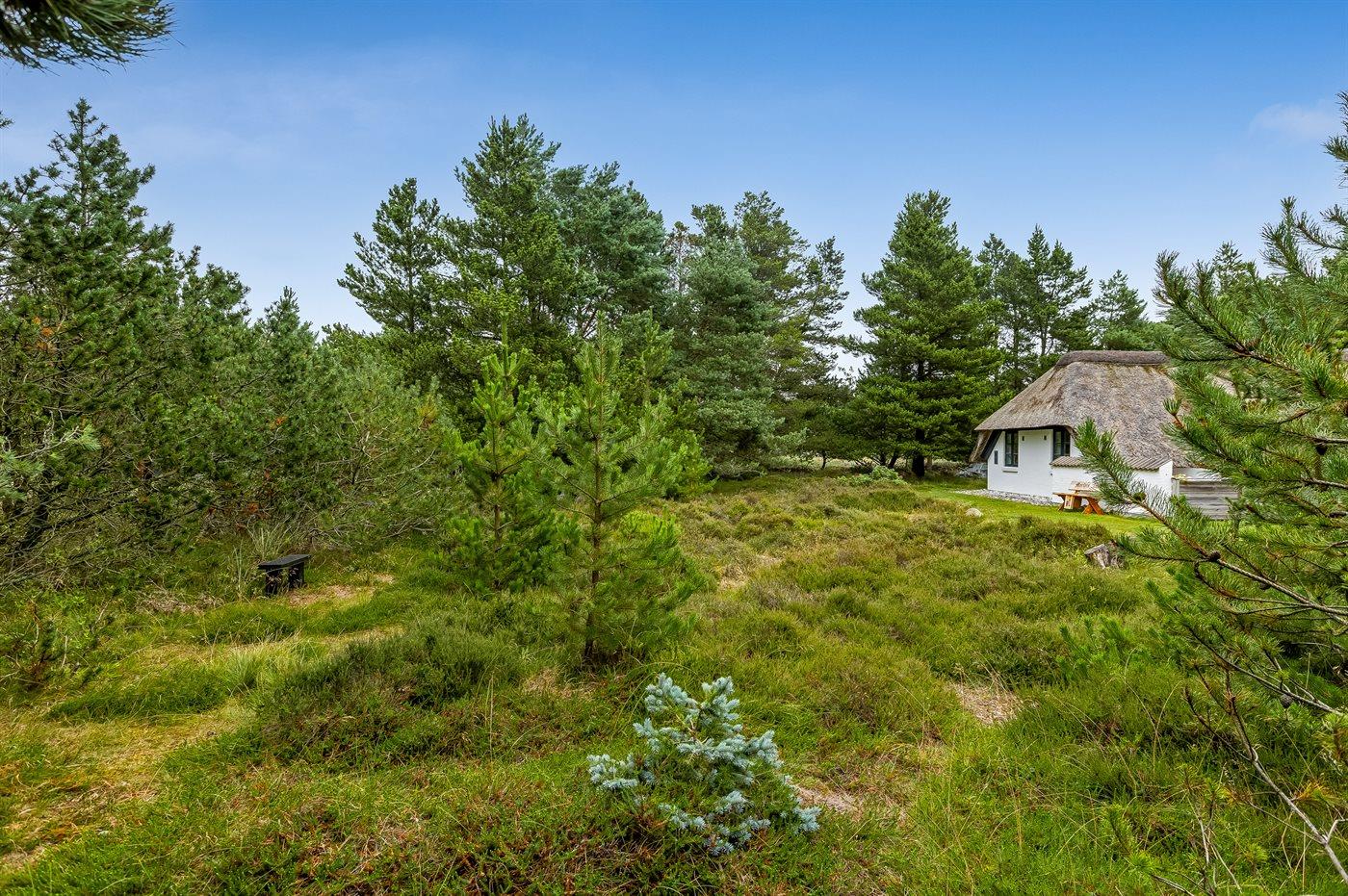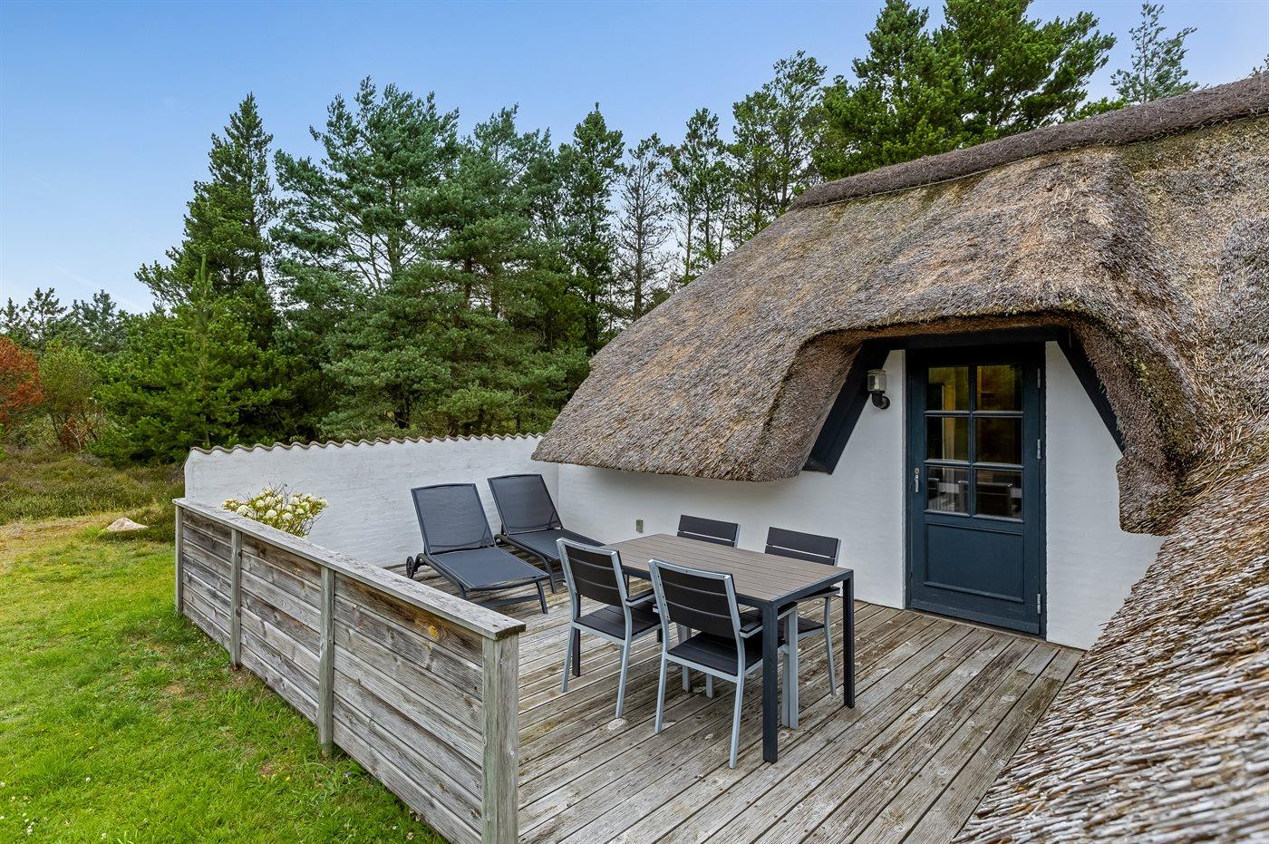 Skønt sommerhus med stråtag, stor naturgrund og moderne faciliteter tæt på Blåvand strand.