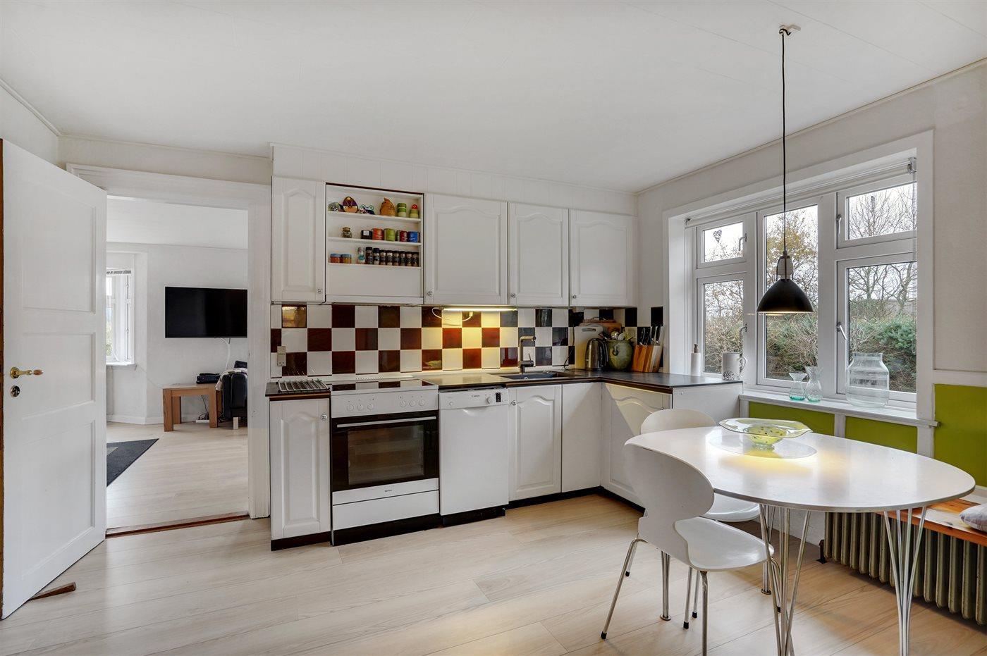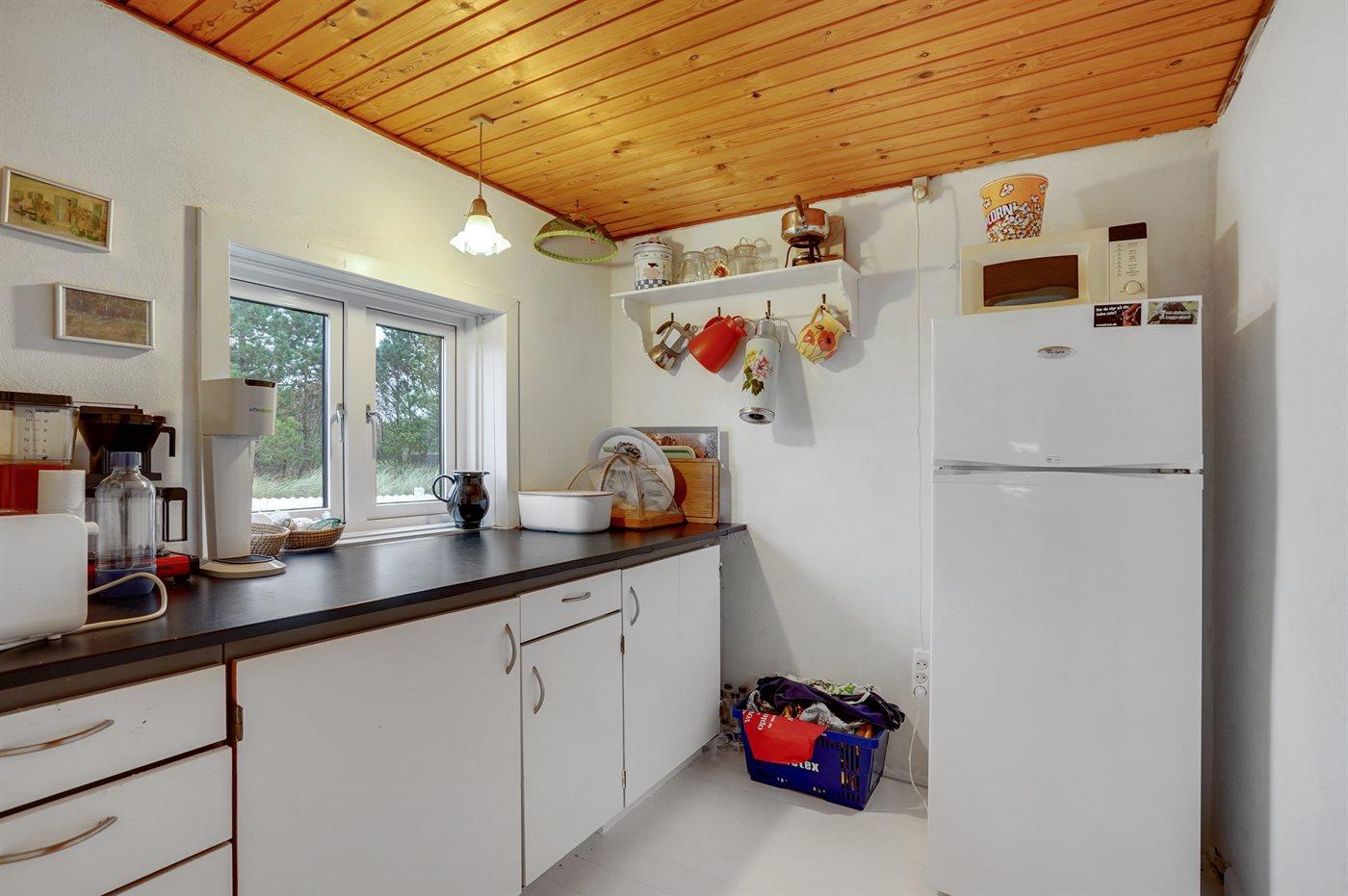 Køkkenet er udstyret med 2 køleskabe. Der er 4 keramiske kogeplader, varmluftovn, mikrobølgeovn samt opvaskemaskine.