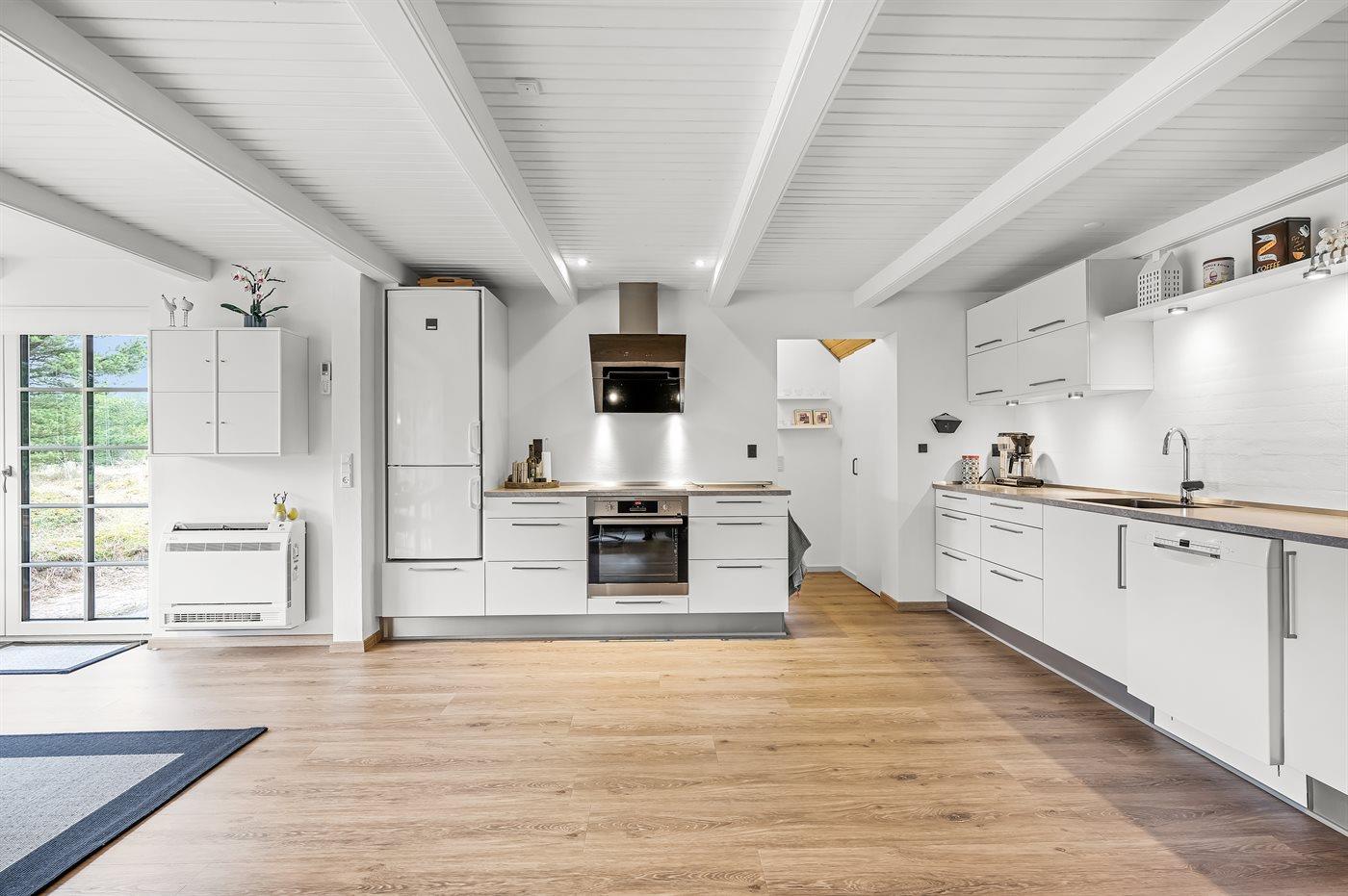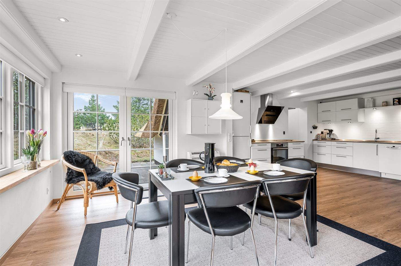 Et rigtig flot sommerhus med stråtag, oprindelig opført i 1969 og senest renoveret i 2014, beliggende på stor skøn naturgrund med klitter og gode læmuligheder i et roligt område. Til huset hører en terrasse med havemøbler og grill.