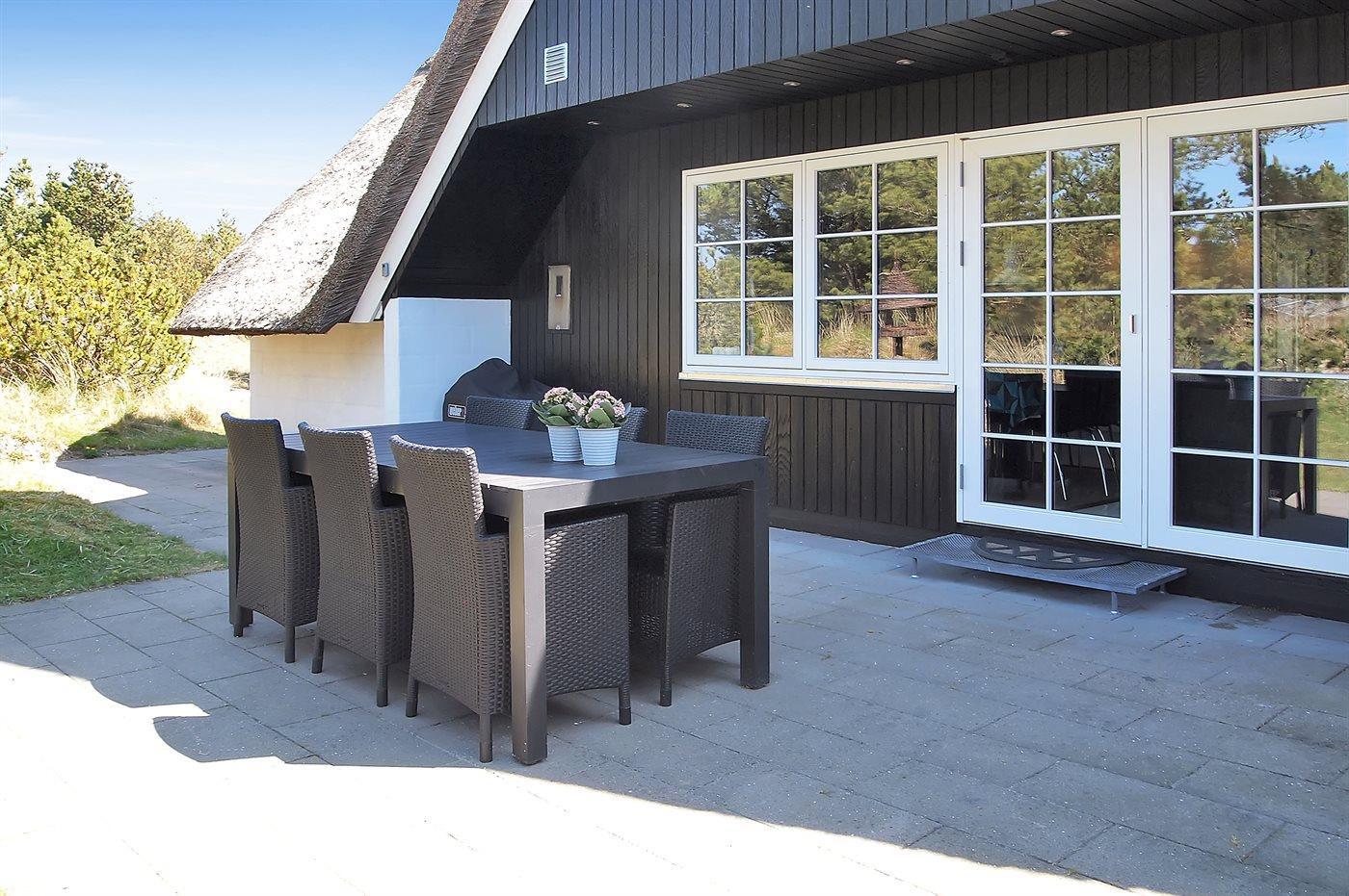 Flot sommerhus i Blåvand med stråtag, stor naturgrund og moderne faciliteter, perfekt til en afslappende ferie.