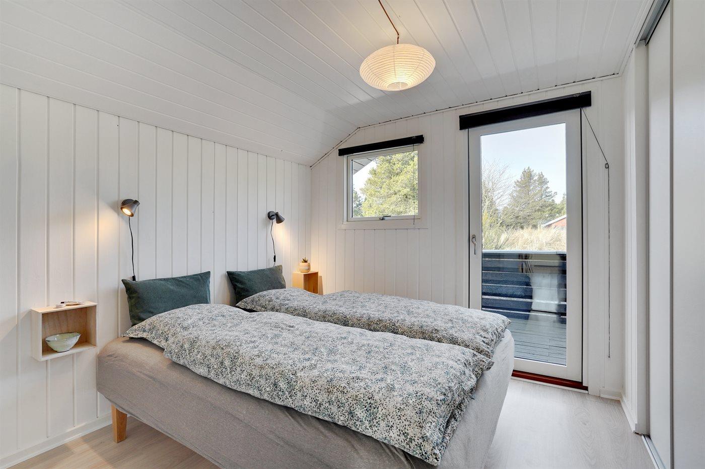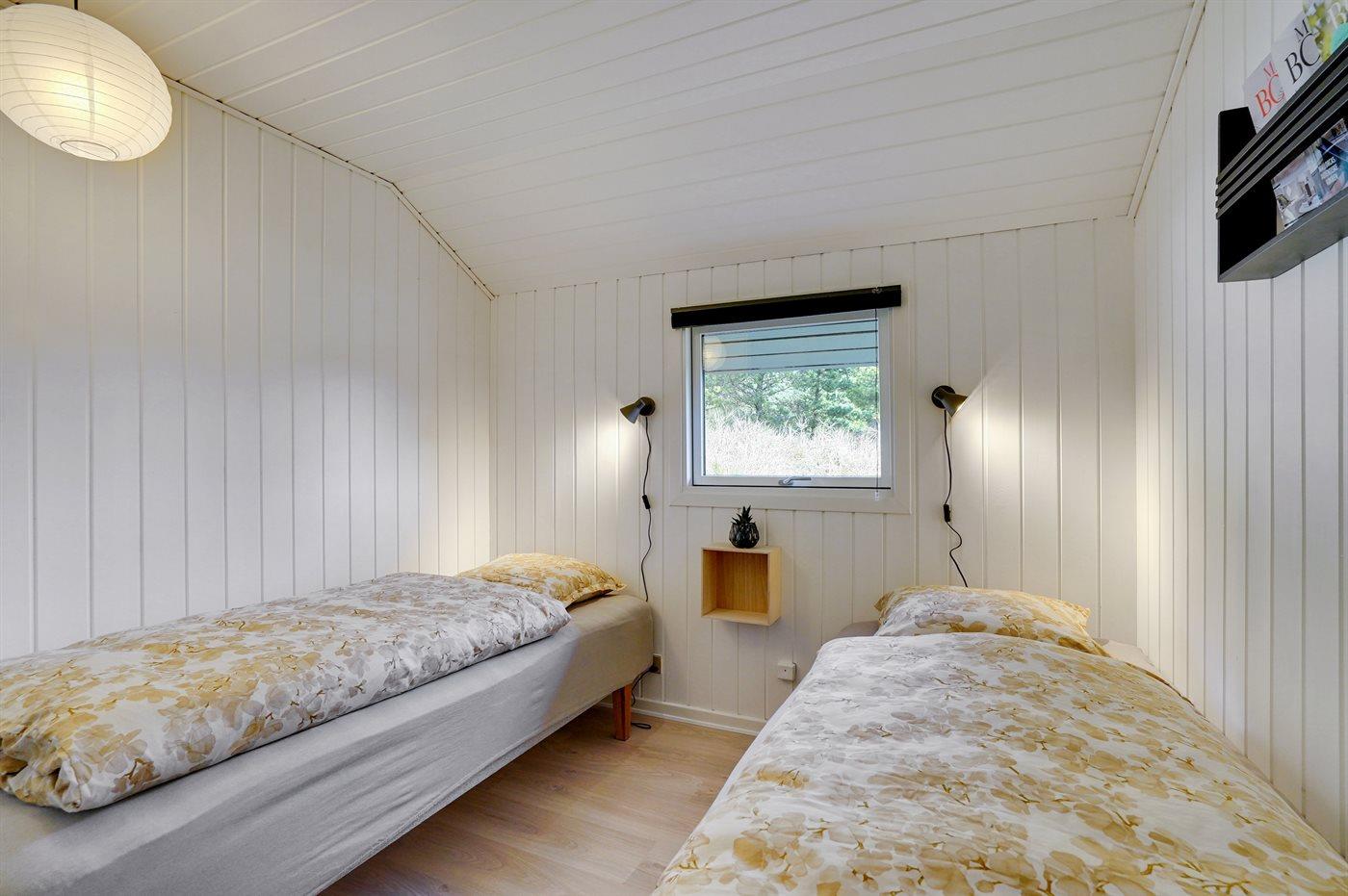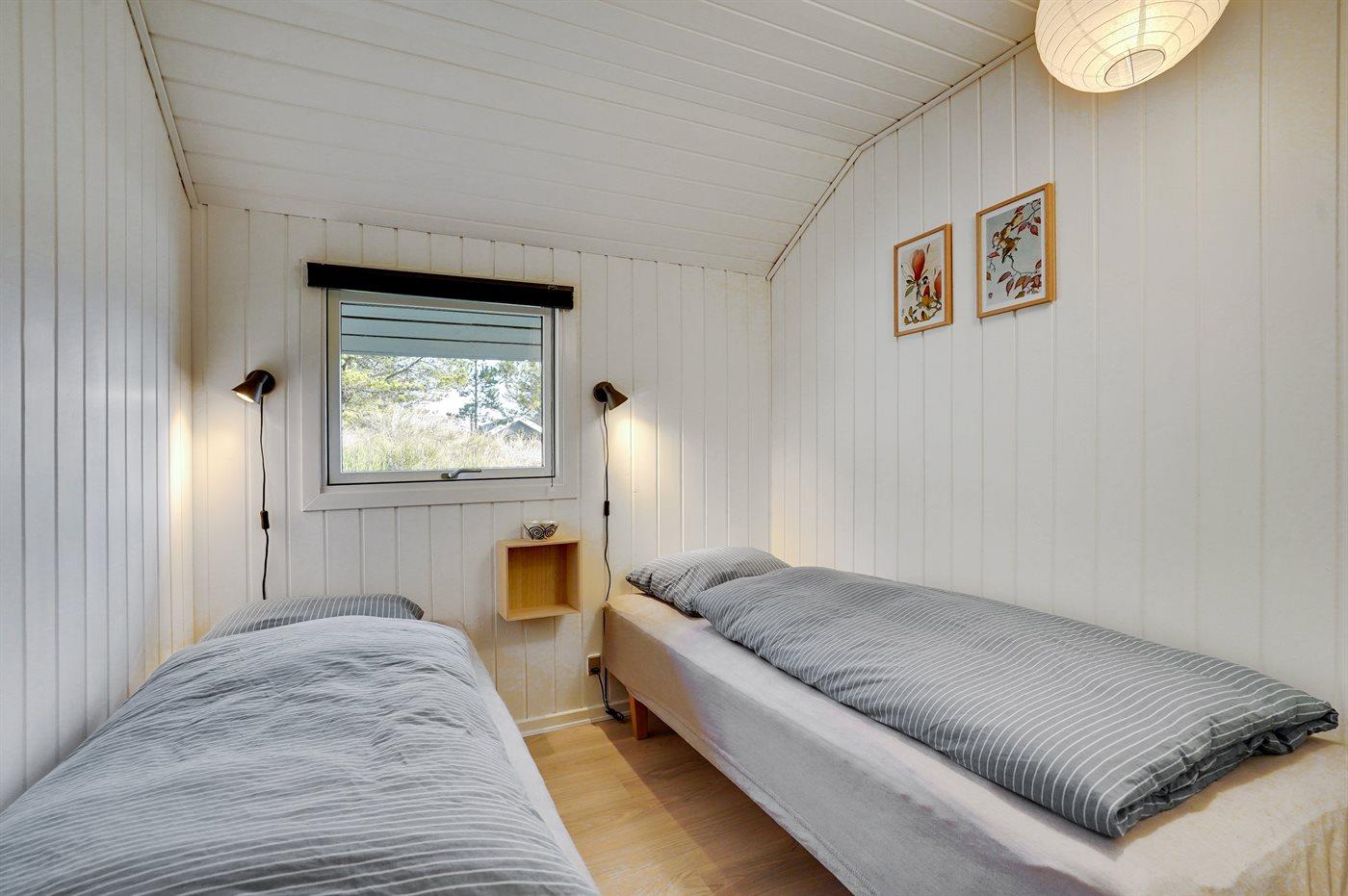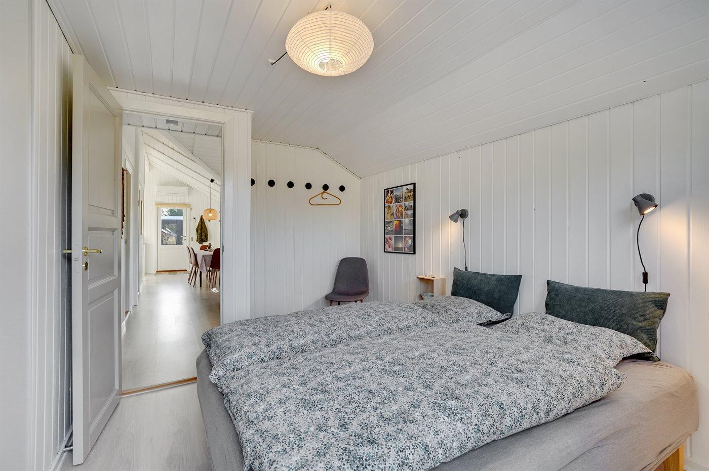 Der er i alt 3 soveværelser. Sovepladserne fordeler sig på: 2 sovepladser i dobbeltseng. 4 sovepladser i enkeltsenge. Derudover er der 1 stk. barneseng.