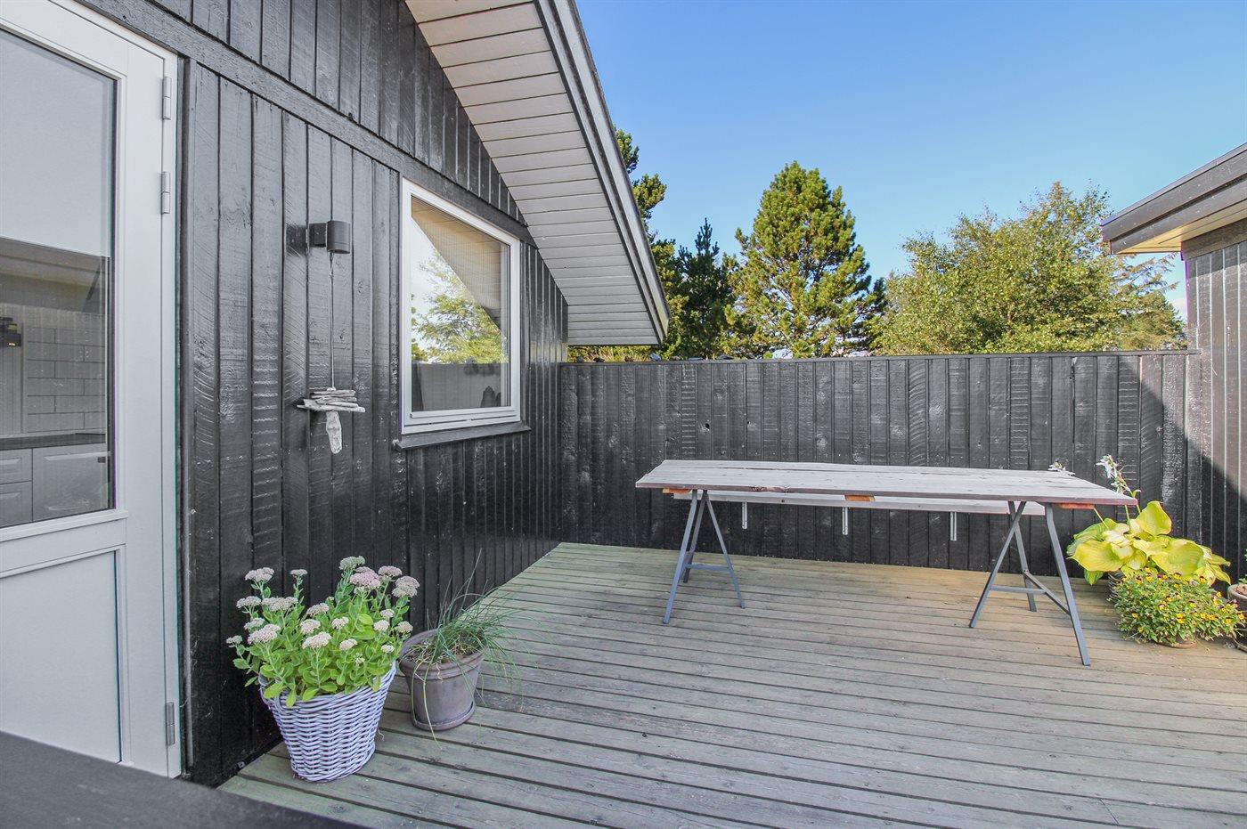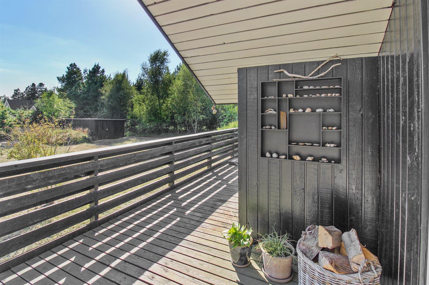 Ferieboligen er beliggende på en 3000 m² stor naturgrund. Der er 1500 m til havet. Nærmeste forretning er beliggende i en afstand af 1000 m. Til ferieboligen hører 70 m² terrasseareal. Desuden er der 10 m² overdækket terrasse. Der er redskabsrum. Gynge. Parkering ved ferieboligen.