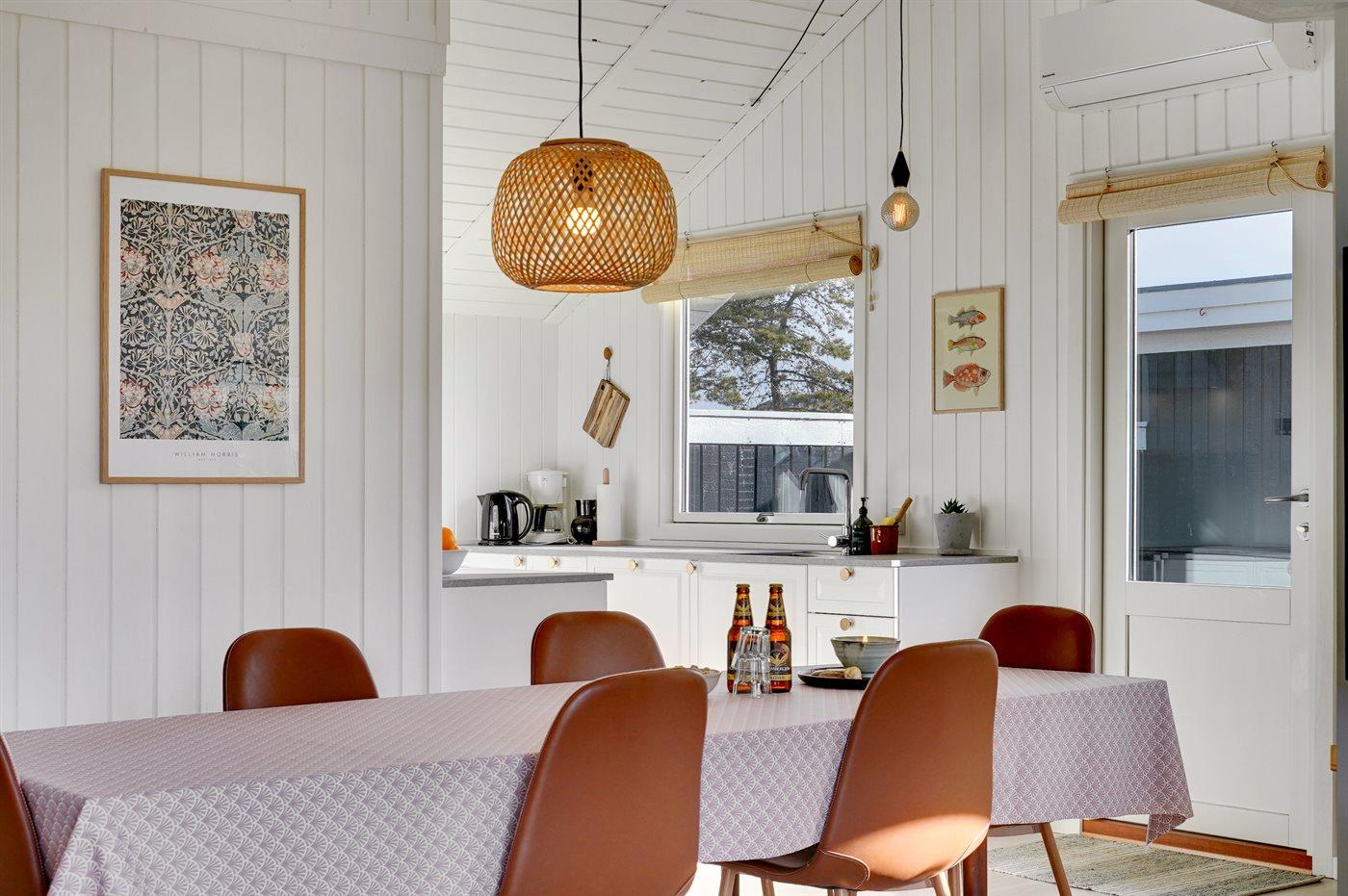 Sommerhuset egner sig til 6 personer samt 1 barn op til 3 år. Ferieboligen er på 77 m² og er bygget i 1985. I 2021 gennemgik ferieboligen en delvis renovering. Det er tilladt at medbringe 1 husdyr. Ferieboligen er udstyret med energibesparende varmepumpe. Ferieboligen har vaskemaskine. Frysekapacitet på 64 liter. Der er desuden brændeovn. Til de små er der 1 stk. barnestol.