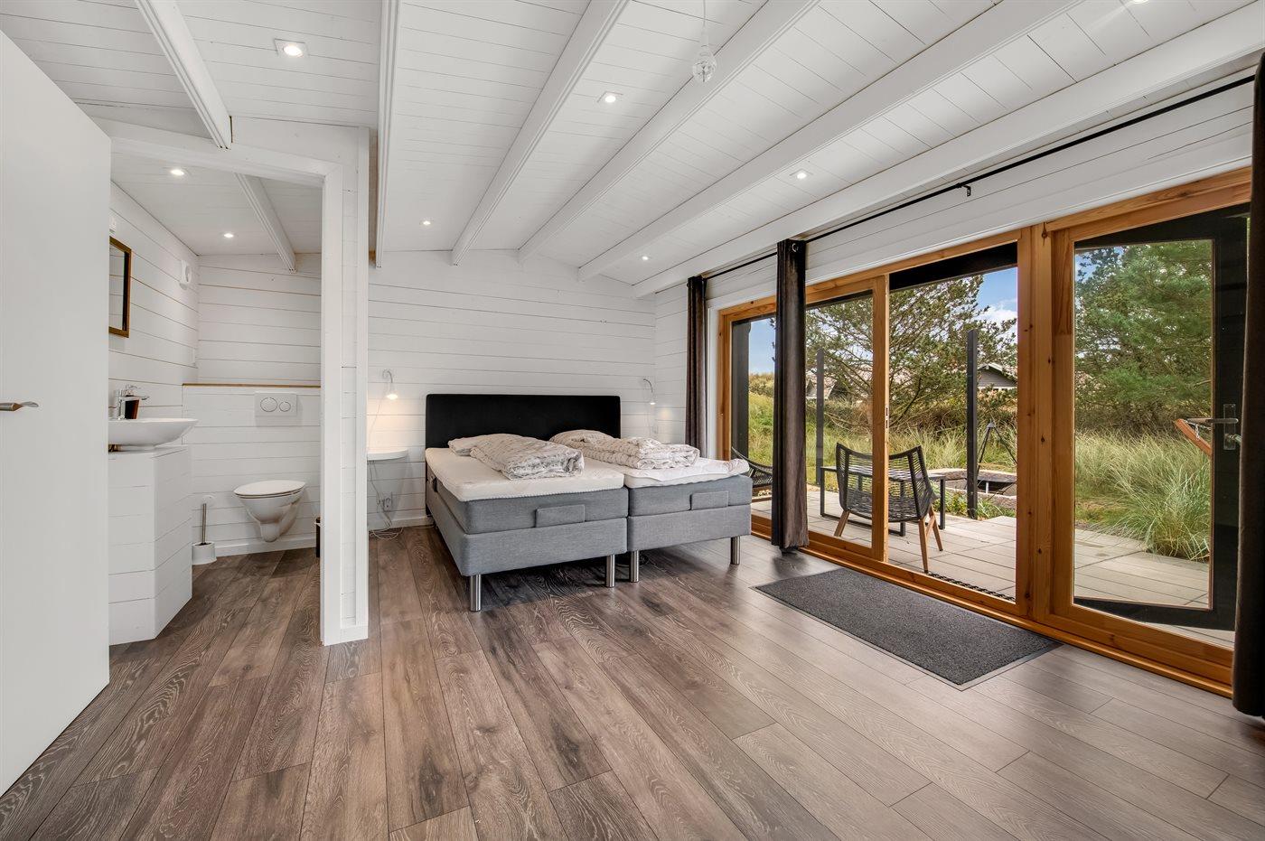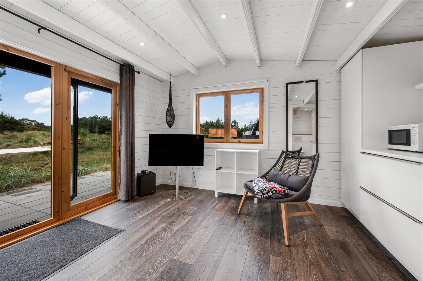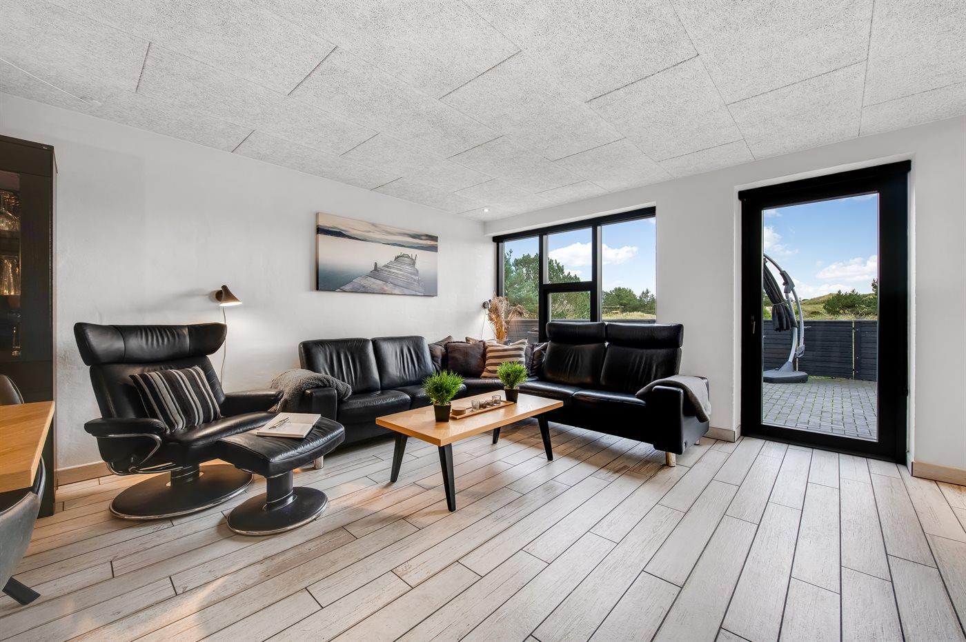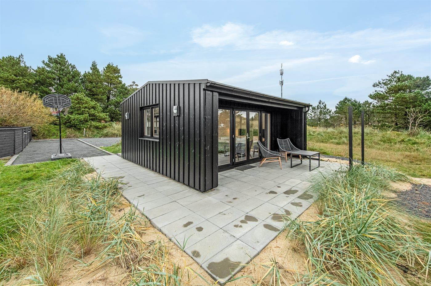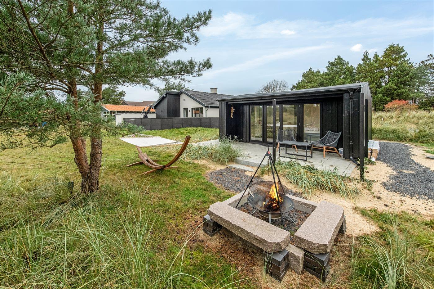 Dette flotte luksussommerhus ligger på en dejlig stor naturgrund, hvor der er plads til boldspil og leg. Fra grunden og huset er der endvidere udsigt til det flotte naturområde. Huset ligger kun 1100 m fra en af Danmarks bedste sandstrande og tæt på Blåvand by - det fås ikke bedre. I det tilhørende anneks befinder 2 af sovepladserne og gæstetoilettet sig. Der findes et stort parkeringsareal til biler.