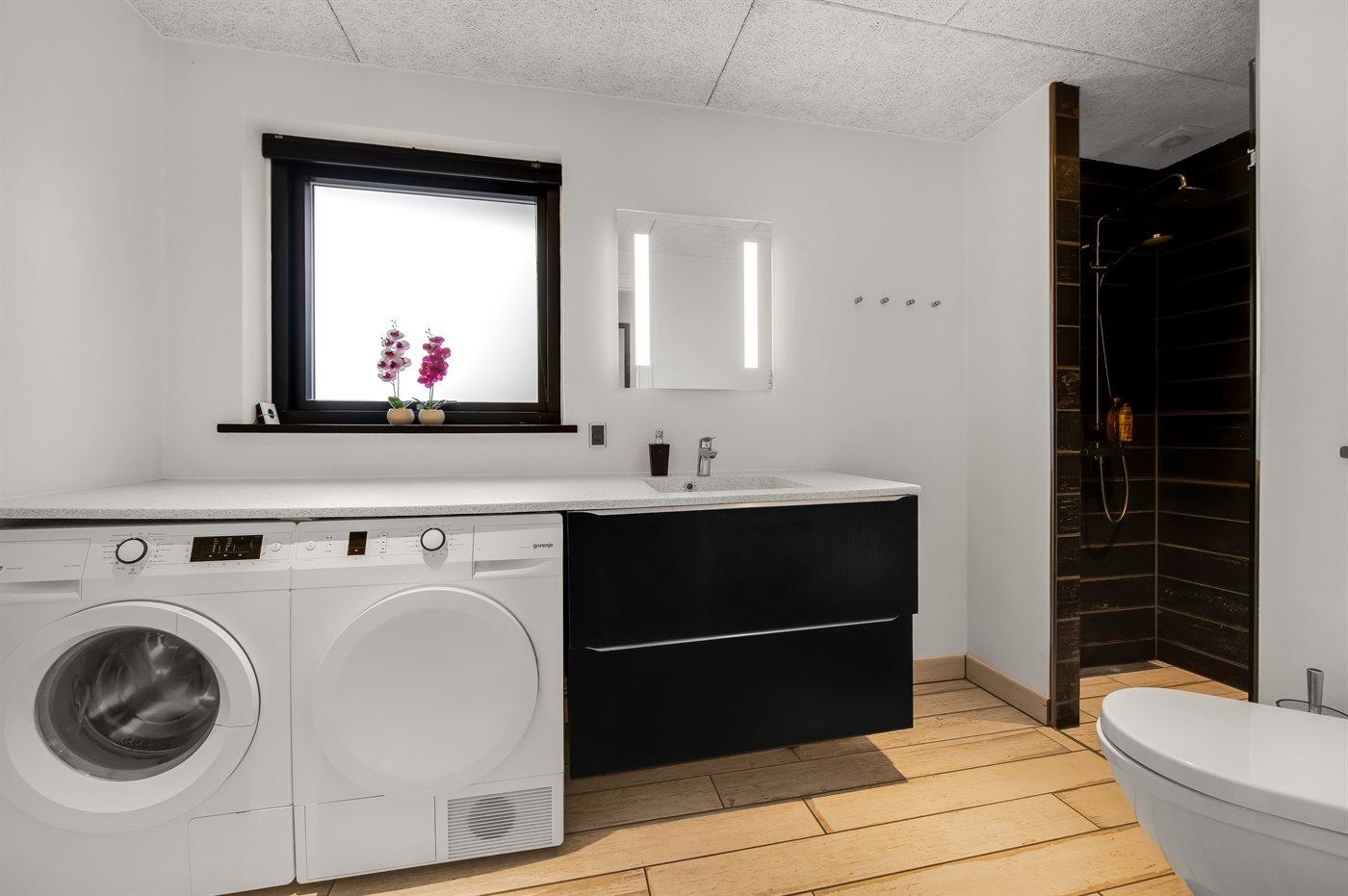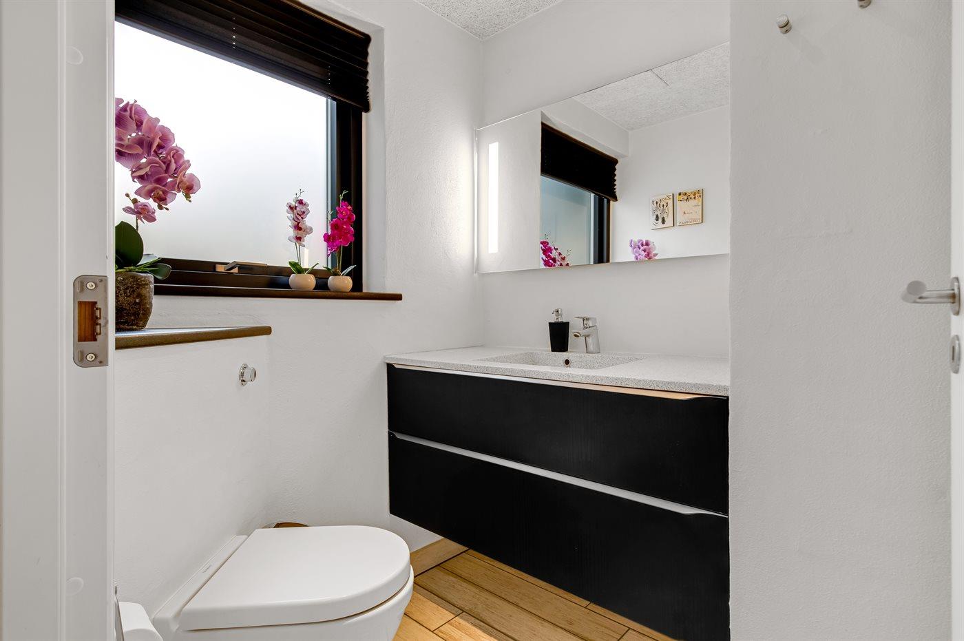 Der er 2 badeværelser med bruseniche og 2 toiletter, heraf 1 gæstetoilet. Der er gulvvarme på 2 badeværelser.