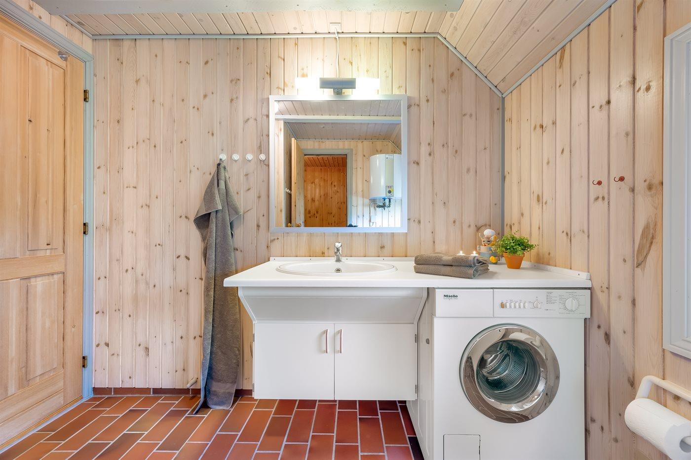 Der er 1 badeværelse med bruseniche og 1 toilet. I saunaen er der mulighed for afslapning.