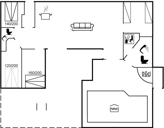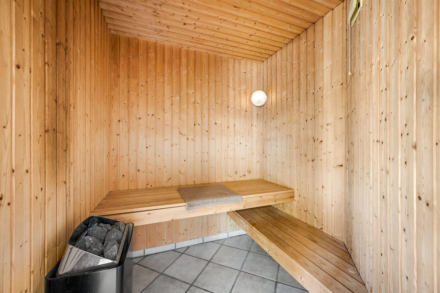 Der er 2 badeværelser med bruseniche og 2 toiletter. Der er gulvvarme på 2 badeværelser. I saunaen er der mulighed for afslapning.