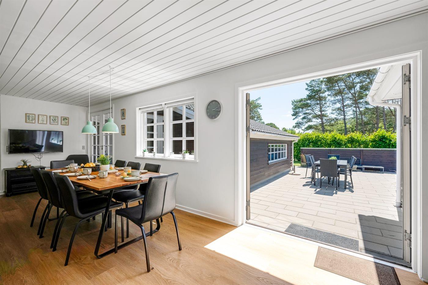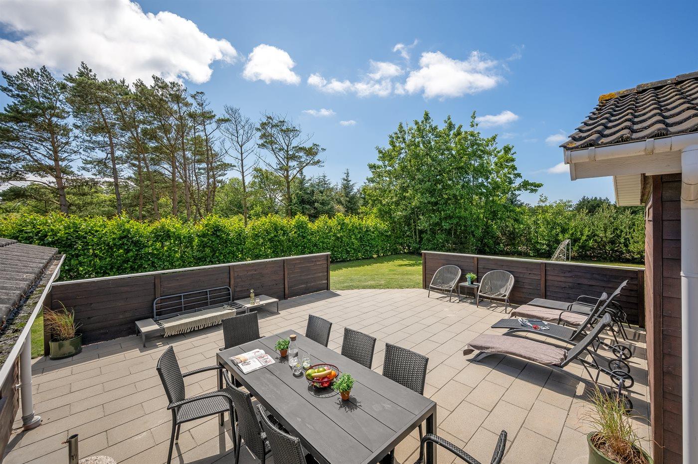 Ferieboligen er beliggende på en 2000 m² stor naturgrund. Der er 400 m til havet. Til ferieboligen hører åbent terrasseareal. Gynge. Sandkasse. Trampolin. Grill til rådighed. Der er installeret stik til opladning af elbil. Type 2 stik. Med 11 kW ladeeffekt. Parkering ved ferieboligen.