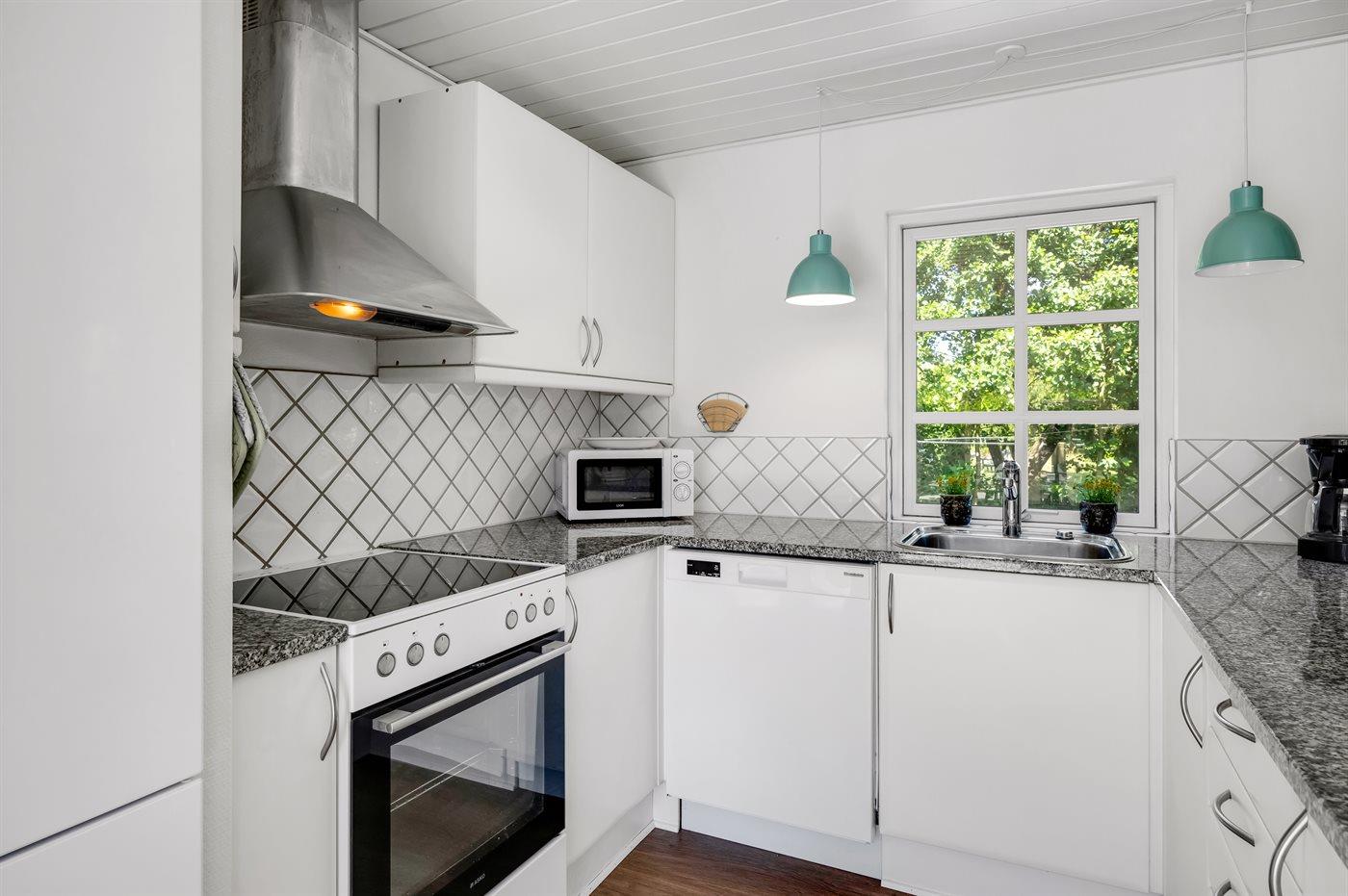 Køkkenet er udstyret med 1 køleskab. Der er 4 keramiske kogeplader, varmluftovn, mikrobølgeovn samt opvaskemaskine.