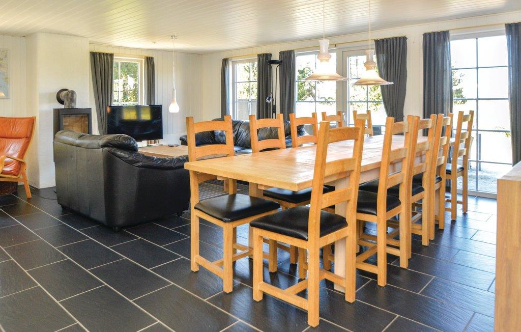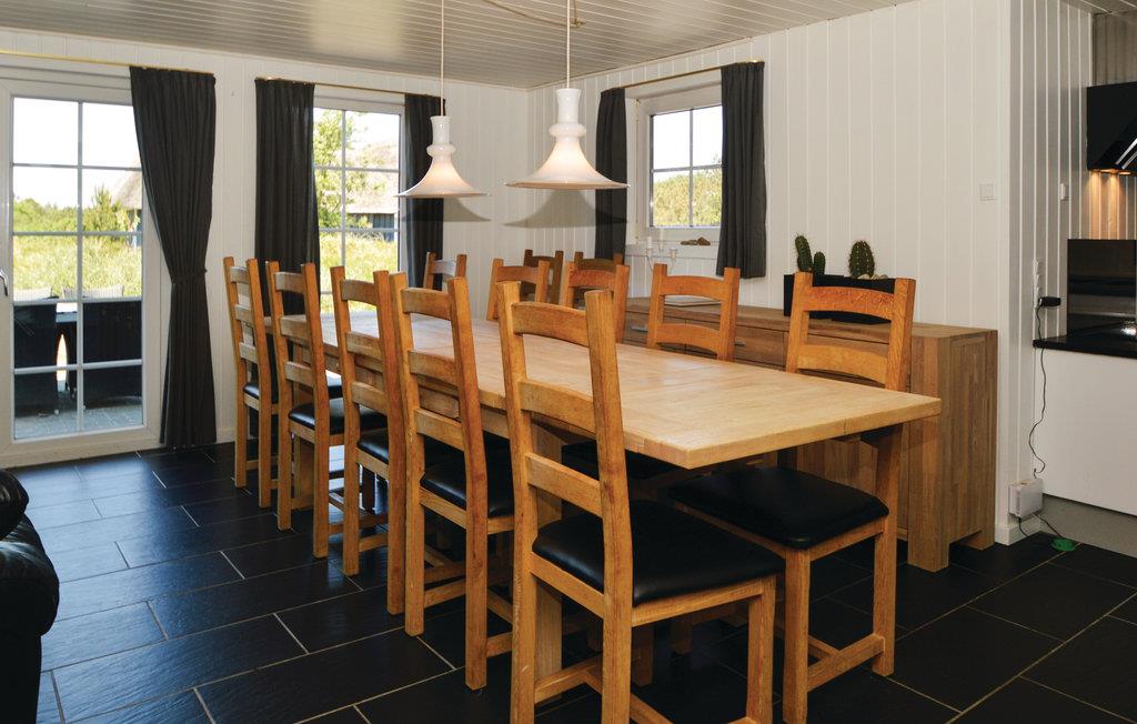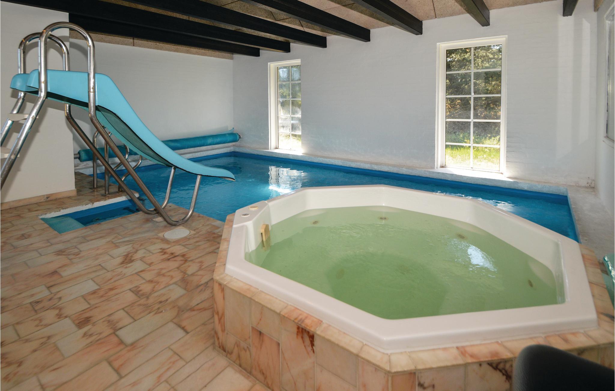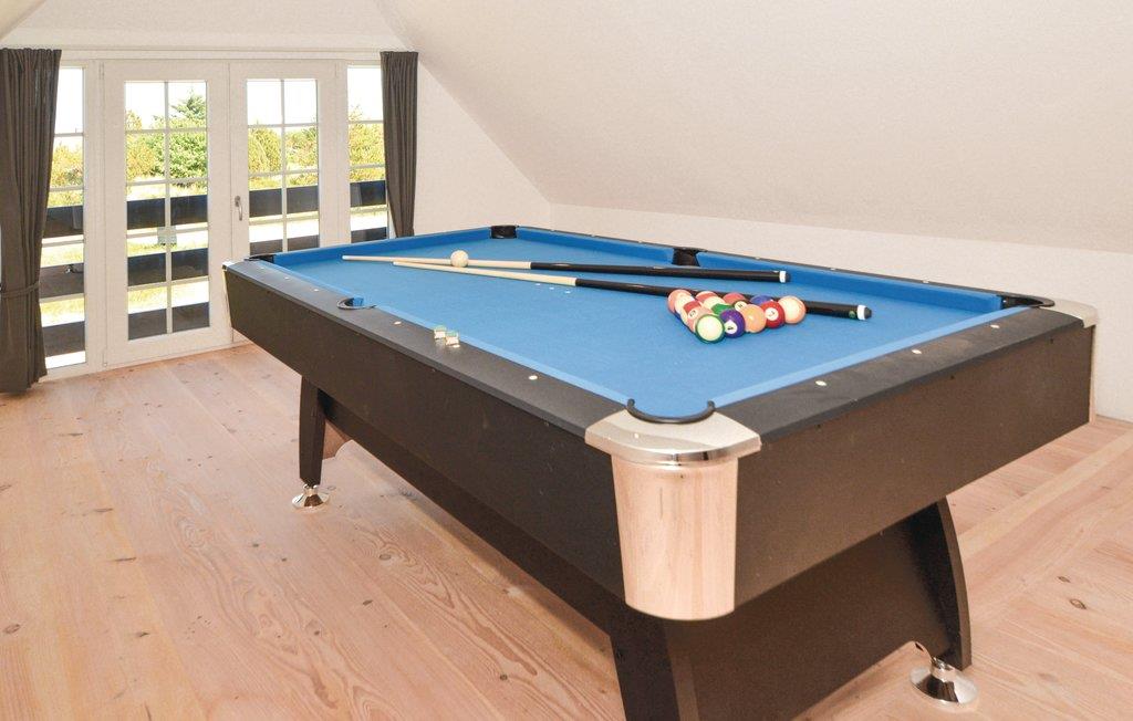 Dejligt stort og rummeligt feriehus, med mange aktivitetsmuligheder. I poolafdelingen er der tænkt på alle aldersgrupper, også de helt små børn, som har en afgrænset lille del af poolen hvor de kan sidde og pjaske, mens andre kan svømme eller slappe af i spabadet. På husets første sal er der indrettet et stort aktivitetsrum med bl.a. poolbord og bordtennis. Det store moderne køkken er åbent mod stuen, så her kan I der har køkkentjansen, blive underholdt af dem der slapper af i sofaen. Der er glas mellem stue og poolafdelingen, så de der ikke er så glade for vand, kan følge med alligevel. Slap af i solen på husets store terrasse. Huset ligger på en let kuperet klitgrund, nær både Blåvand by og den attraktive strand.