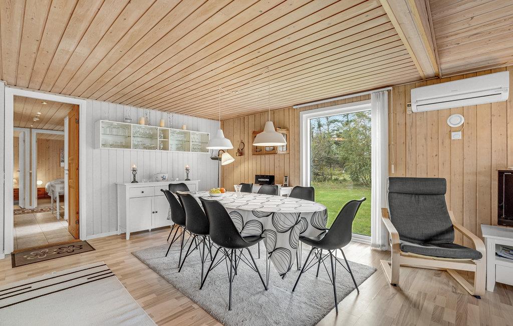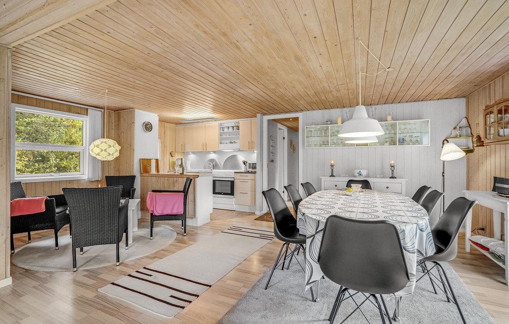 På en stille sidevej uden forbigående trafik ligger dette dejlige feriehus. Det er bygget af træ og fremtræder overalt funktionelt og harmonisk. Det lyse køkken, som har et tidløst look, ligger i åben forbindelse med spise- og opholdsstue. Med fire soveværelser og utallige faciliteter af både komfortabel og praktisk art, er dette feriehus velegnet til to familier. Til husets velgørende sauna er der adgang via terrassen. Udendørs er der et stort græsareal, som vil være meget egnet til fysisk udfoldelse. Der er kort afstand til Blåvand by med utallige shoppingmuligheder og gode restauranter. I nærheden finder I også bl.a. tennisbane og badeland.