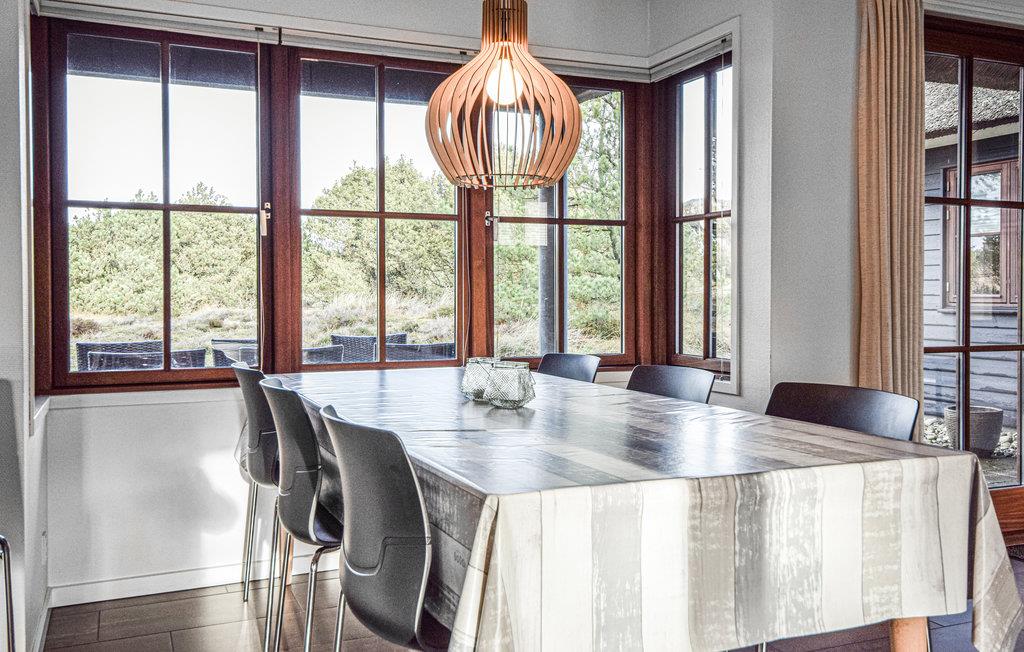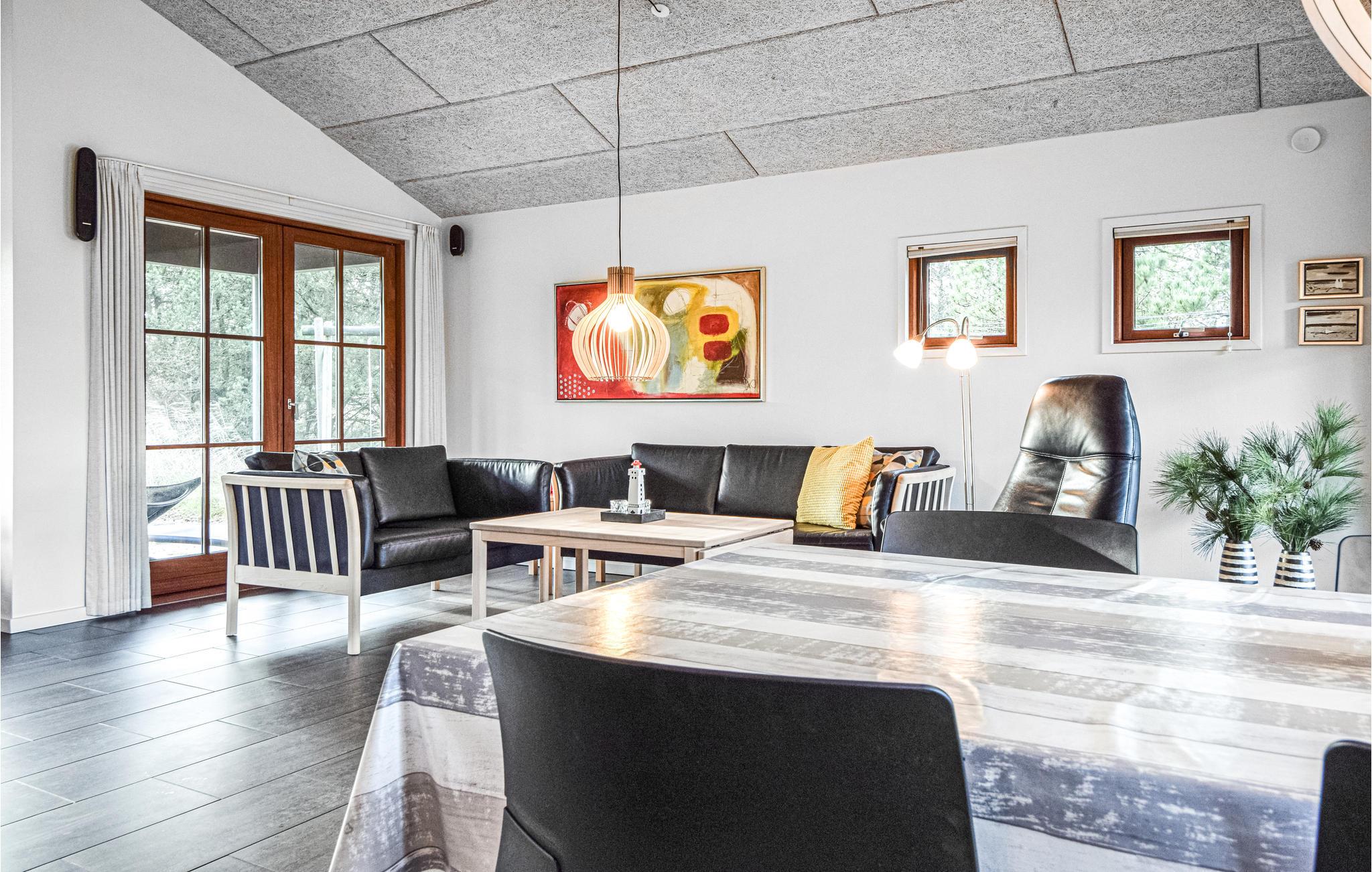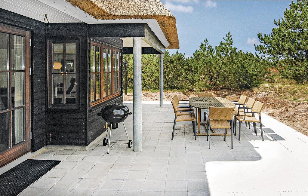 Dette dejlige arkitekttegnede hus ligger helt op til et stort, fredet naturområde, kun 1 km fra Blåvand centrum. En praktisk og smagfuld indretning med flere gode detaljer kendetegner dette luksushus, der ligeledes er komfortabelt udstyret med et spabad med plads til seks pers. og en sauna. Som supplerende varmekilde kan I benytte den smarte væghængte brændeovn, der medvirker til en hyggelig atmosfære indendørs, når dagene er korte og kolde. I det åbne køkken/alrum er der en hyggelig karnap, hvor I kan slappe af i en af de to hvilestole. Alle vinduer er af mahognitræ. Fra stuen, som har franske døre, er der to udgange til de skønne terrasser. Huset har fire lyse soverum, alle med gode boxmadrasser og skabsplads. En ekstra detalje er hemsen, som er ideel til børnene. Fra terrasserne har I en pragtfuld udsigt over det store, naturskønne område. Huset ligger i nærheden af mange aktivitetstilbud, bl.a. svømmehal, golfbane og tennisbaner.