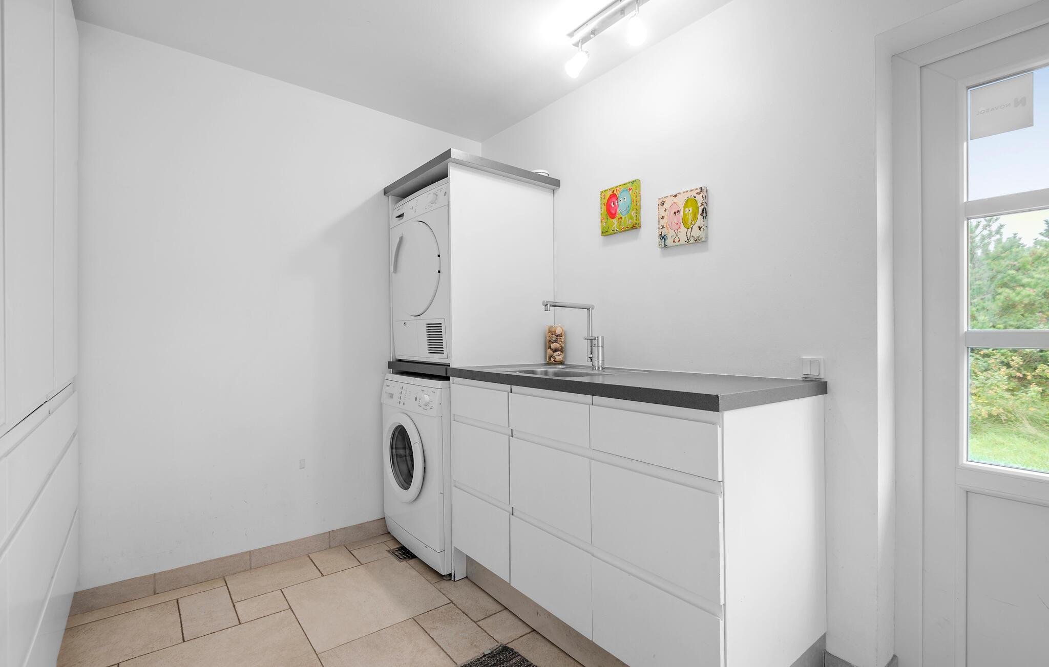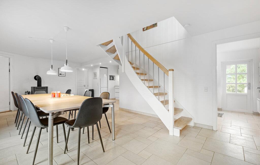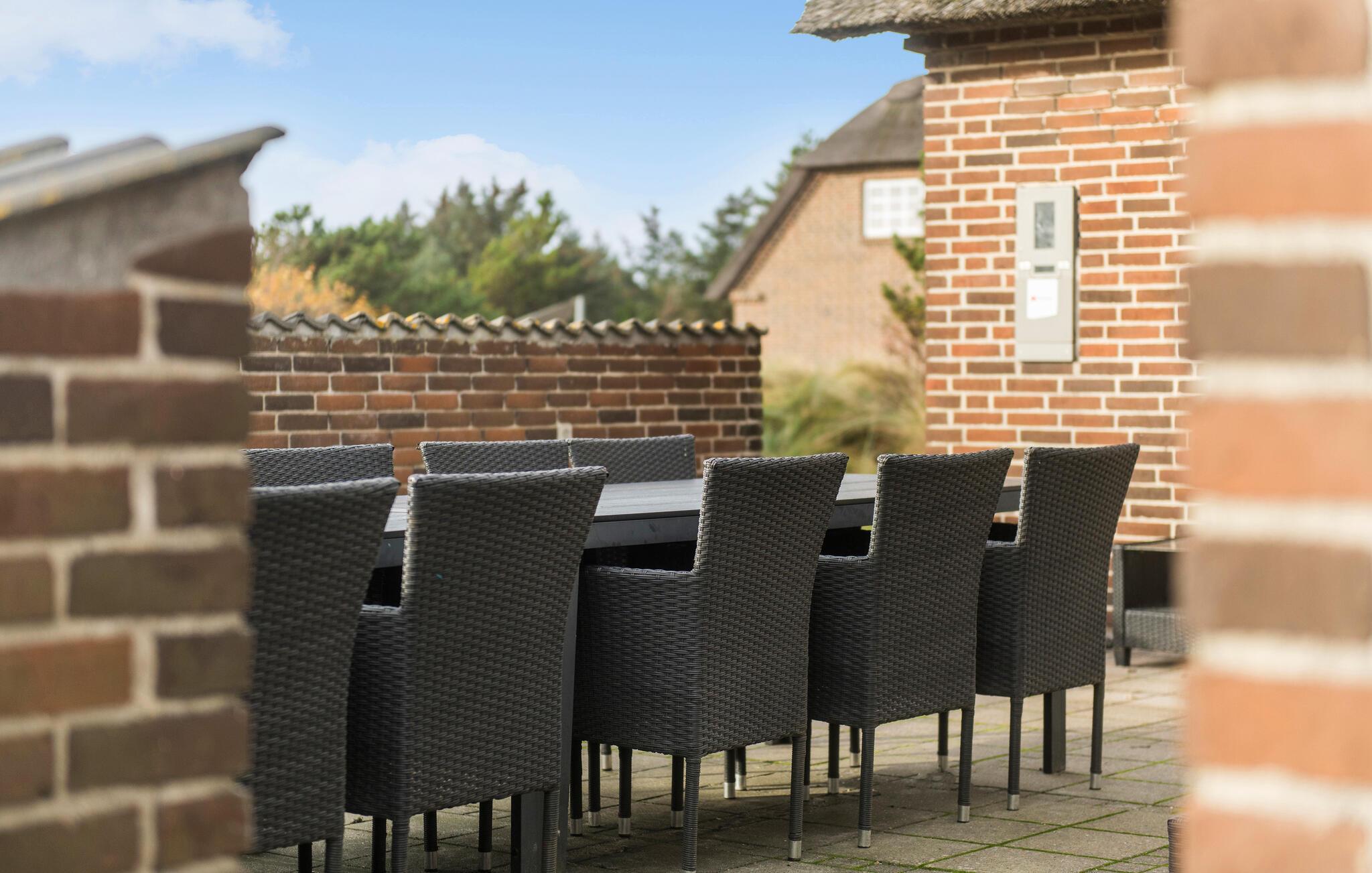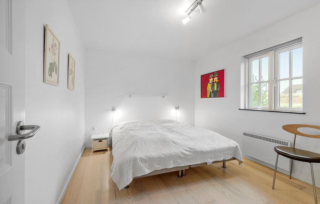 Nogle få hundrede meter fra en af ??Danmarks smukkeste sandstrande ligger dette moderniserede stråtagshus med en forrygende beliggenhed i Blåvand. Her får I en bolig med en stilfuld atmosfære, komfortable indretningsløsninger og et fuldt udstyret køkken, hvilket giver alle de bedste betingelser for at slappe af og holde fri. Der er to separate stuer med fladskærms-tv, så der behøver ikke være kamp om fjernbetjeningen, for både børn og voksne kan sætte favoritprogrammet på samtidig. Den rummelige spisestue har udsigt til poolen og giver jer et godt sted at sidde med kaffen, mens børnene hygger sig i vandet. I kan også sætte jer til rette på øverste etage, hvor der er en fantastisk udsigt over klitterne og ned til fyret.