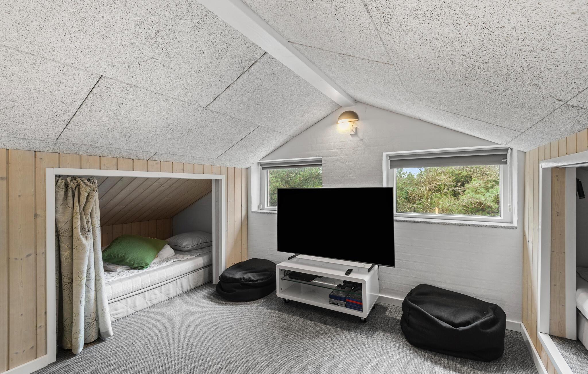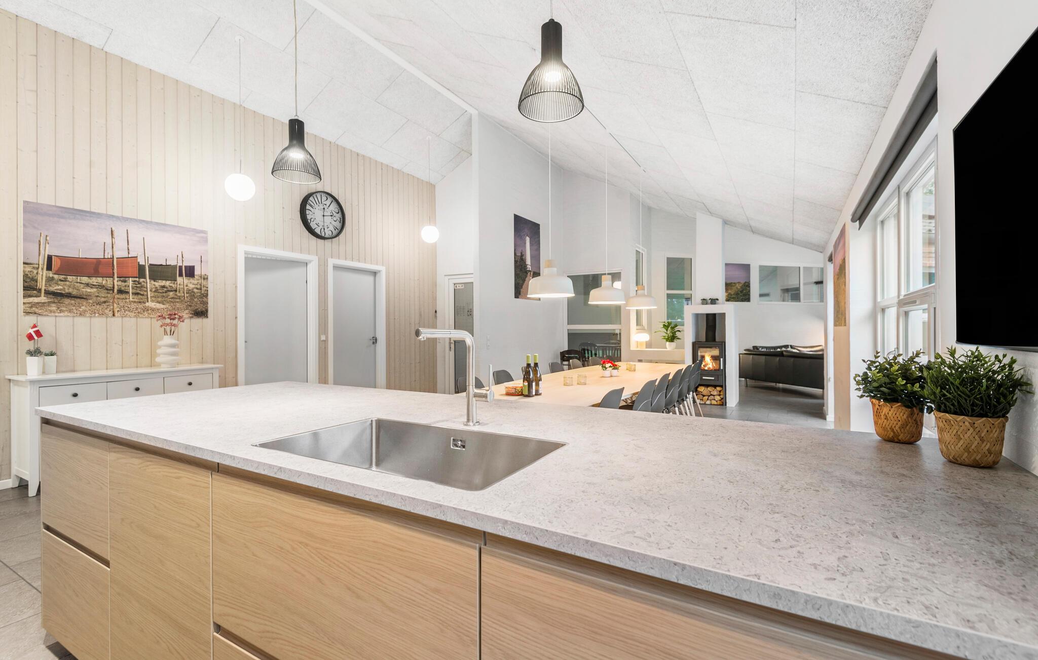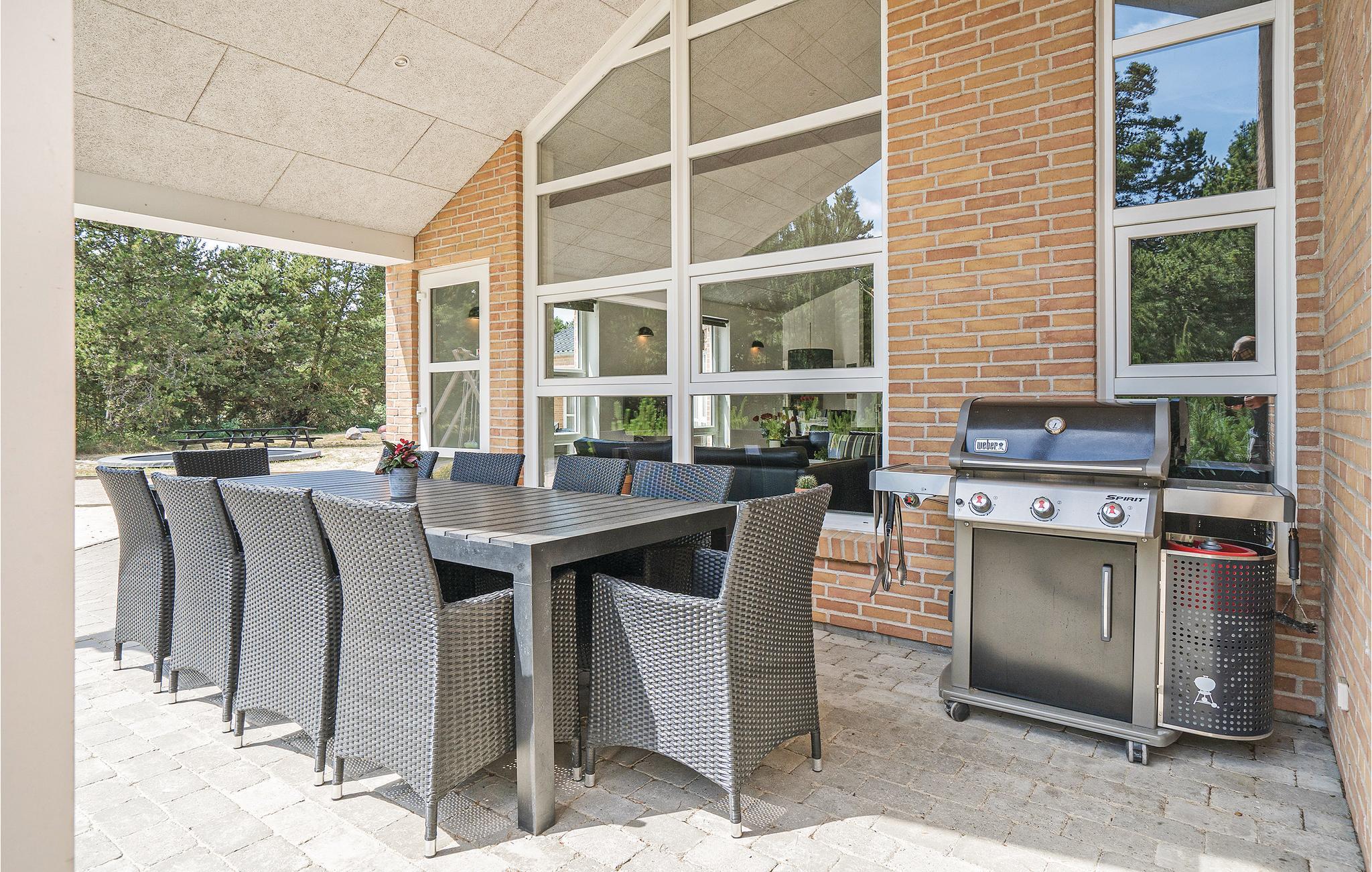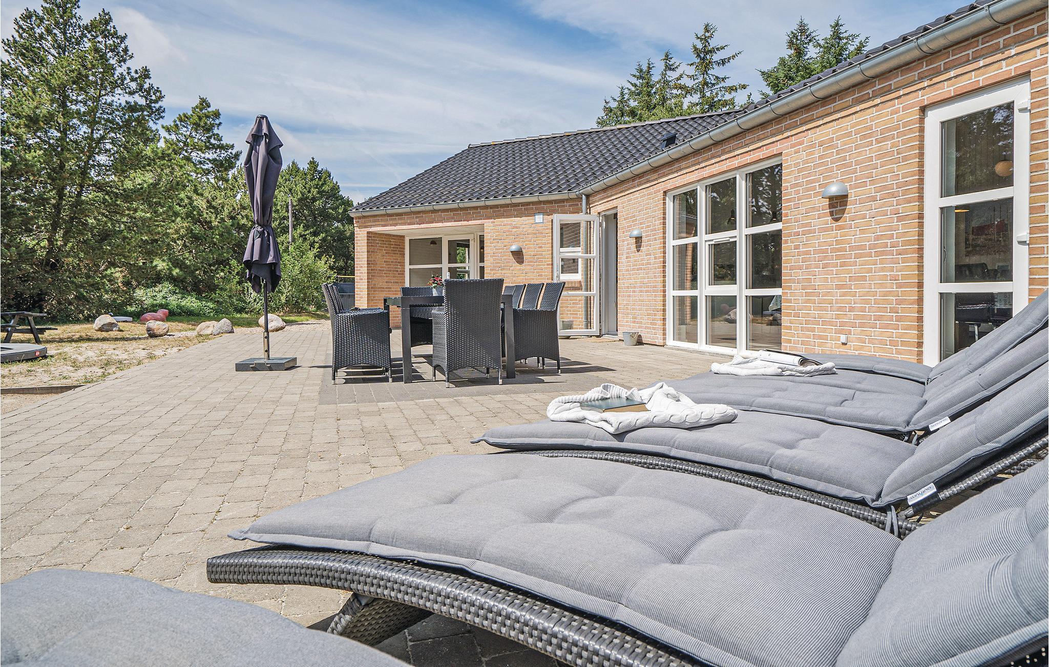 Fantastisk flot og gennemtænkt feriehus, beliggende på en lukket natugrund med masser af sjov for såvel børn som voksne. Det flotte køkken er husets hjerte, og bliver automatisk det sted hvor I samles og hyggesnakker. Aktivitetsrummet byder på masser af underholdning og fra stuen og køkkenet, kan I se ind i den lækre poolafdeling, hvor der også er et stort spabad og sauna samt ekstra bruser. Skønne soverum samt en stor hems, som børnene vil elske. Omkring huset er der store terrasser til hygge og afslapning. Grunden indbyder til sjov og underholdning, og der er bl.a. en multibane til fodbold og basket. Huset er topisoleret og opvarmes udelukkende af jordvarme, så på trods af husets størrelse og faciliteter holdes energiomkostningerne nede. Med Boxer Max TV-abonnement er der sørget for masser af danske kanaler.