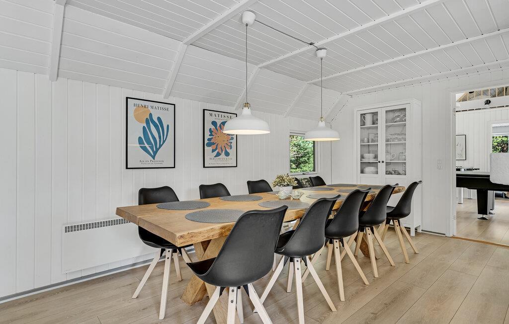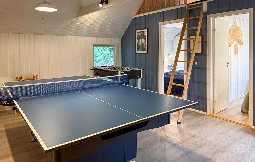 Skal der bades og dyrkes wellness, tilbydes det i det store poolrum med såvel swimnmingpool, spabad og sauna. Spabadet er placeret i en glaskarnap, så det nærmest føles som om, at I sidder ude i naturen, mens kroppen blidt masseres. I den anden ende af huset ligger det hyggelige aktivitetsrum med bl.a. billard og anden sjov underholdning til alle i familien. Udover de fire soveværelser, der ligger i samme ende som aktivitetsrummet, er der også en hems, som børnene vil elske at sove og opholde sig på. I midten af huset ligger køkken og stue, som samler huset og familien om de gode feriemåltider.