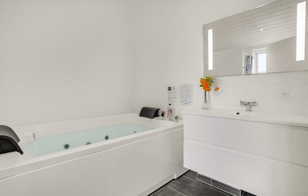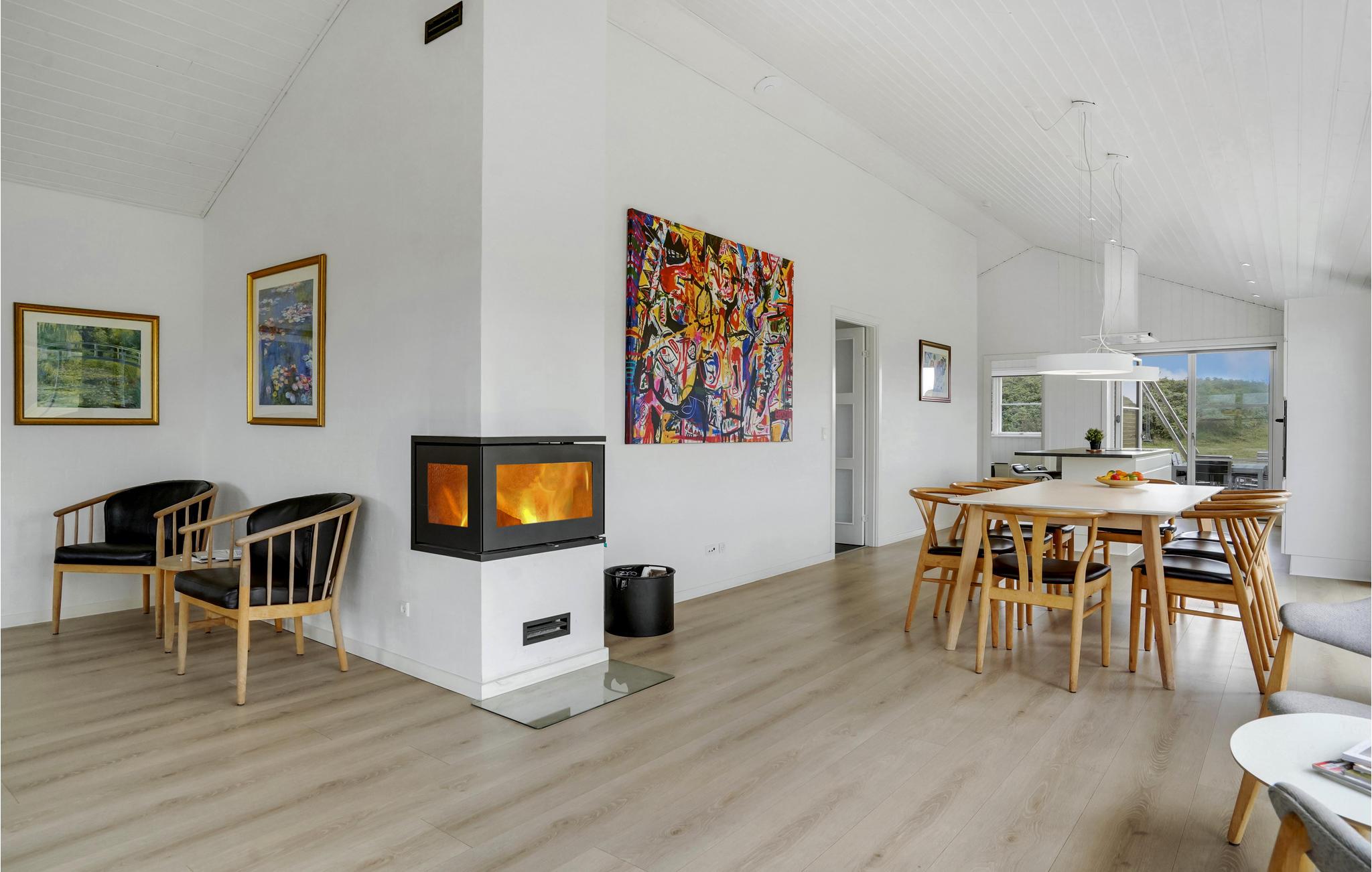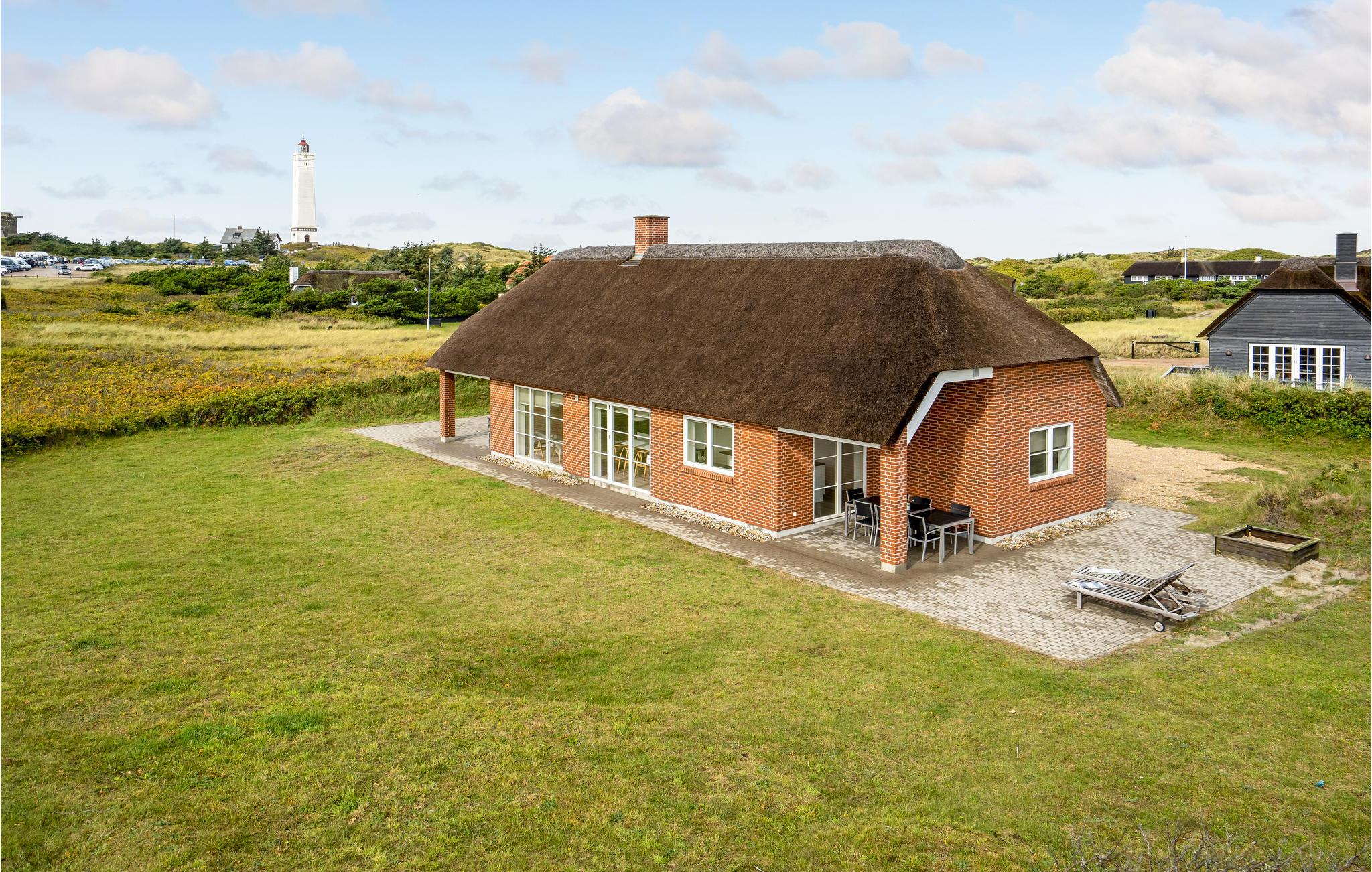 Fantastisk luksusferiehus hvor der hele vejen igennem er tænkt på kvalitet og design, det står færdigbygget til sæson 2018. Huset er et muret, stråtækt feriehus, beliggende på en af Blåvands mest attraktive grunde direkte bag klitterne, og med Vesterhavet som nærmeste nabo. I huset finder I et stort, lækkert køkken/alrum, hvorfra I kan nyde synet af klitterne lige udenfor vinduet, alt imens brændeovnen, med glas til tre sider, sørger for den rigtige feriestemning. De tre gode badeværelser, det ene direkte i forbindelse med et soveværelse, er blot en af de detaljer, som giver indtrykket af et gennemtænkt feriehus. Udendørs finder I flere dejlige terrasser, både åbne og overdækkede.