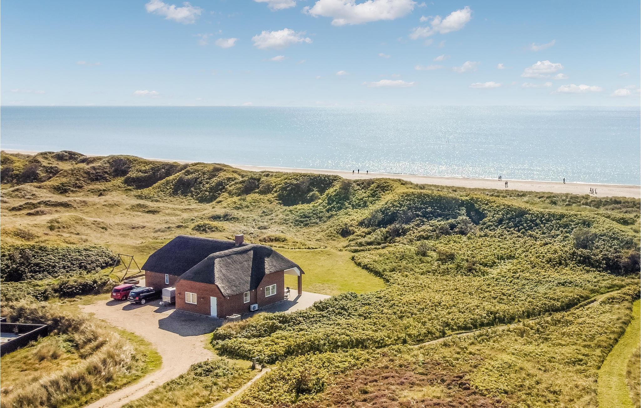 Luksuriøst stråtækt feriehus i Blåvand med design i top og Vesterhavet som nærmeste nabo.