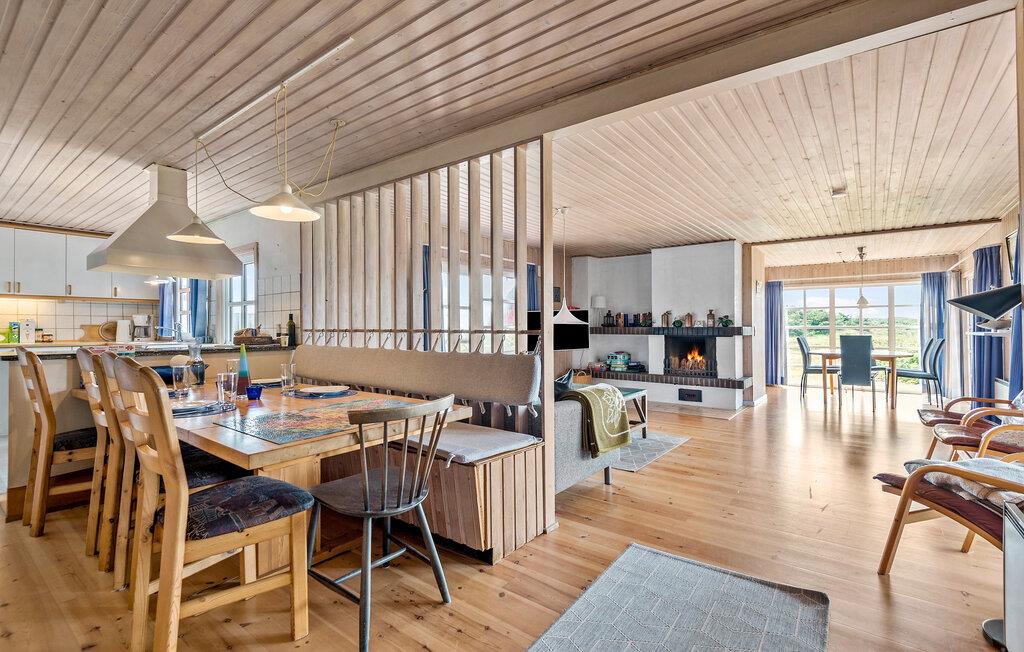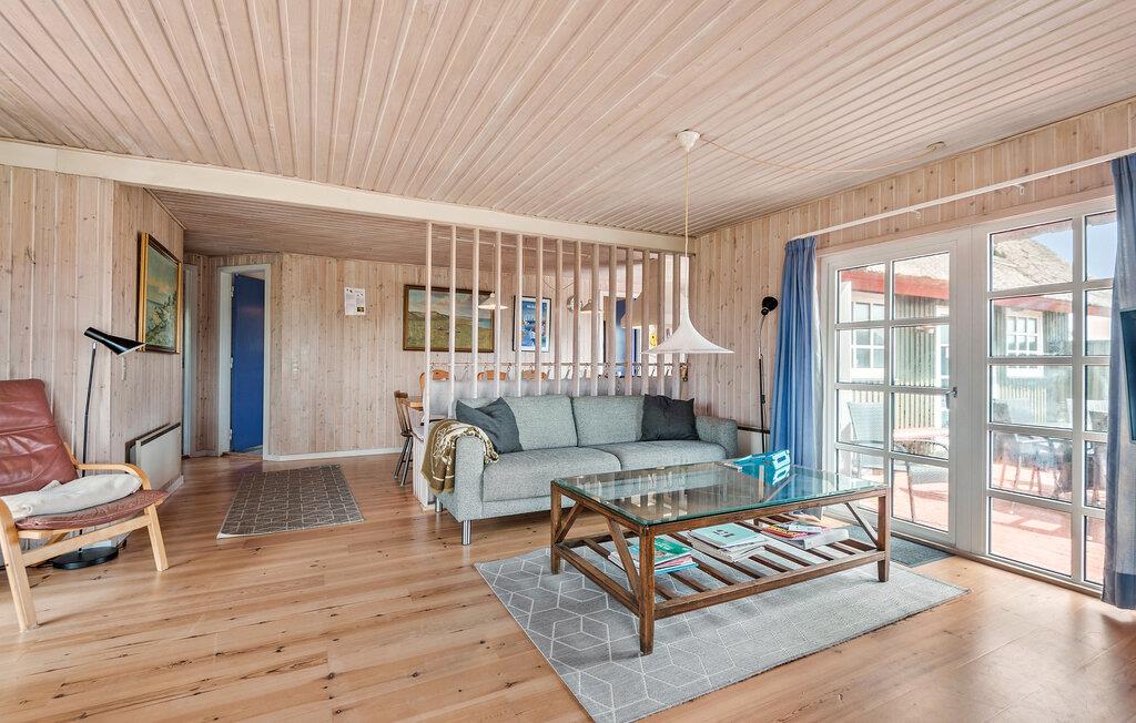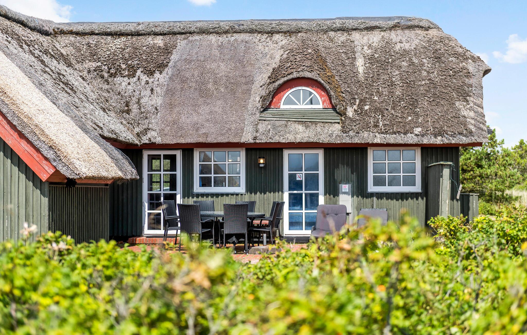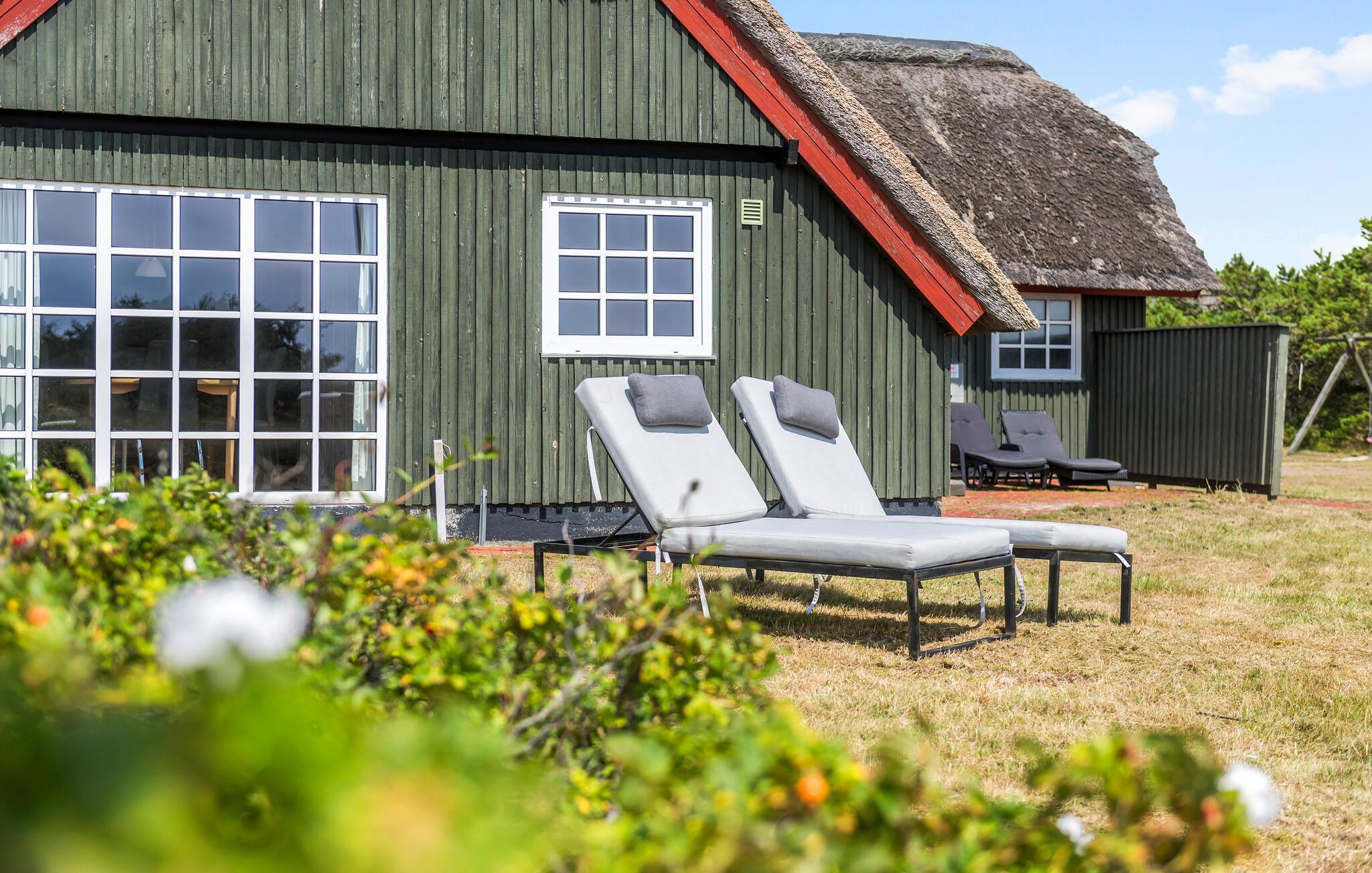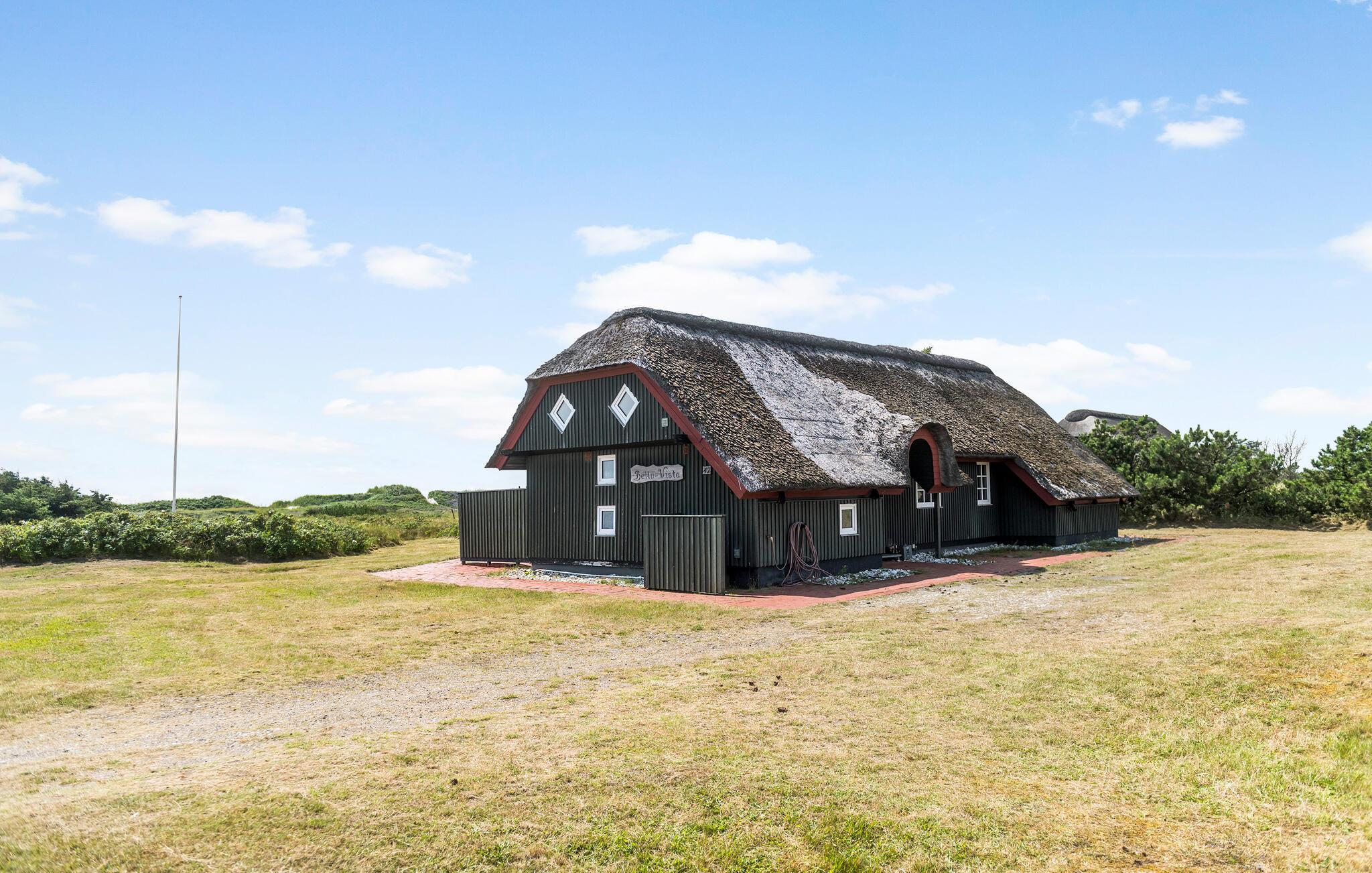 Dette charmerende stråtagshus ligger på en idyllisk klitejendom, kun en kort gåtur fra Vesterhavets kyst. Lad jer fortrylle af den hyggelige atmosfære lavet af masser af træ og naturligt lys og føl jer hjemme. Tilbered lækre måltider i det veludstyrede køkken, tænd for brændeovnen og gør jer godt tilpas i den hyggelige stue. Slap af med en god film eller forkæl jer selv med beroligende stunder i spabadet eller saunaen.
