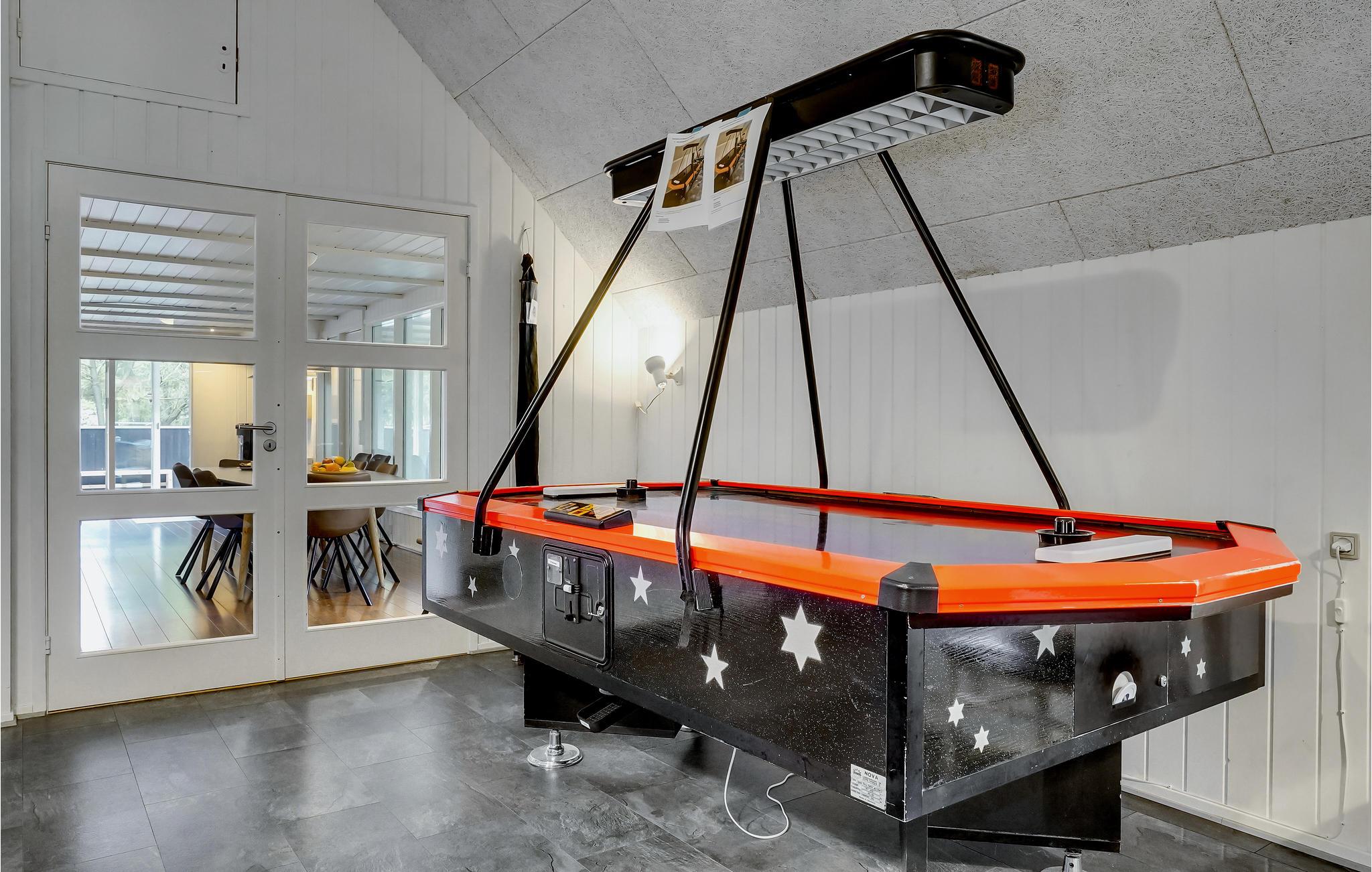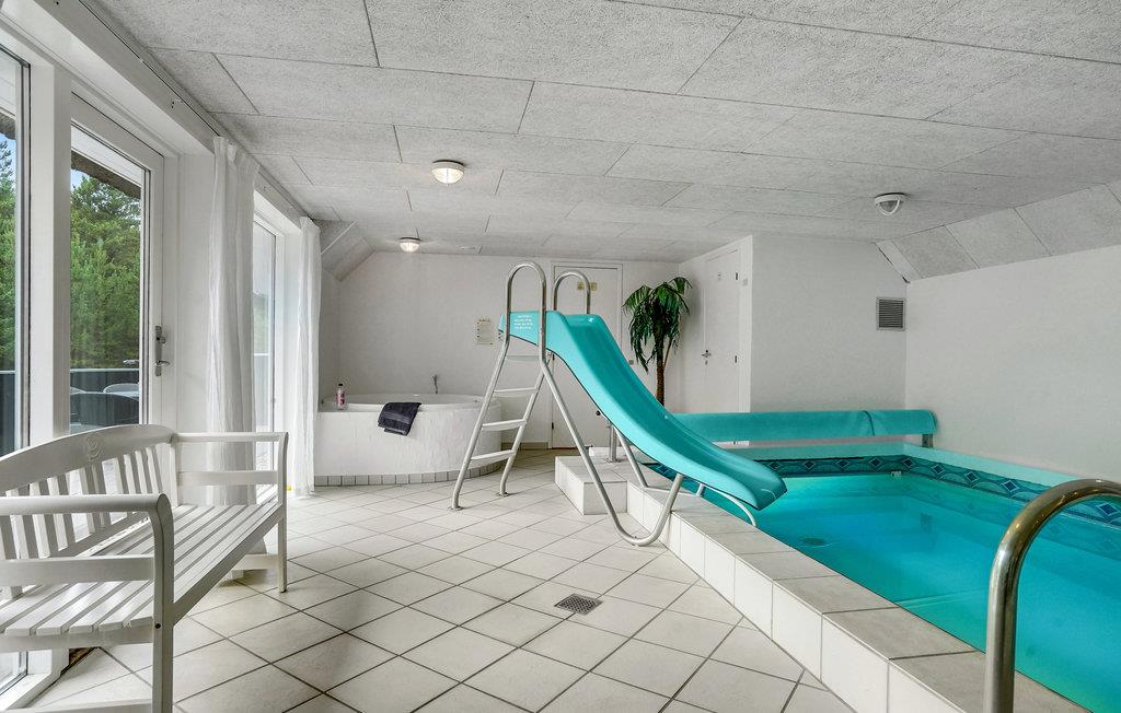 Dejligt stråtækt feriehus med egen swimmingpool, samt ikke mindst et ca. 35 m2 stort aktivitetsrum med diverse spil, så som poolbord og bordtennis. Huset er ideelt til ferien, hvor I ønsker at samle familien, da huset med såvel poolafdeling, aktivitetsrum og stuen imellem disse får huset til at hænge godt sammen, samtidig med at der er god plads til alle i familien. For at holde energiomkostningerne så lave så muligt er der installeret varmepumpe til opvarmning af såvel stuen samt swimmingpoolen. Fra spisebordet kan I sidde og følge børnenes leg i både poolen (med vandrutsjebane) og aktivitetsrummet. Huset råder over to badeværelser heraf det ene i forbindelse med poolafdelingen. Udover fire soveværelser er der en hems med fire sovepladser som børnene vil elske som deres tilholdssted. Omkring huset er der ca. 150 m2 terrasse, så I kan altid finde jeres egen lille lækrog. I haven er der et fantastisk dyreliv med rådyr i haven samt egern og fugle på terrassen.