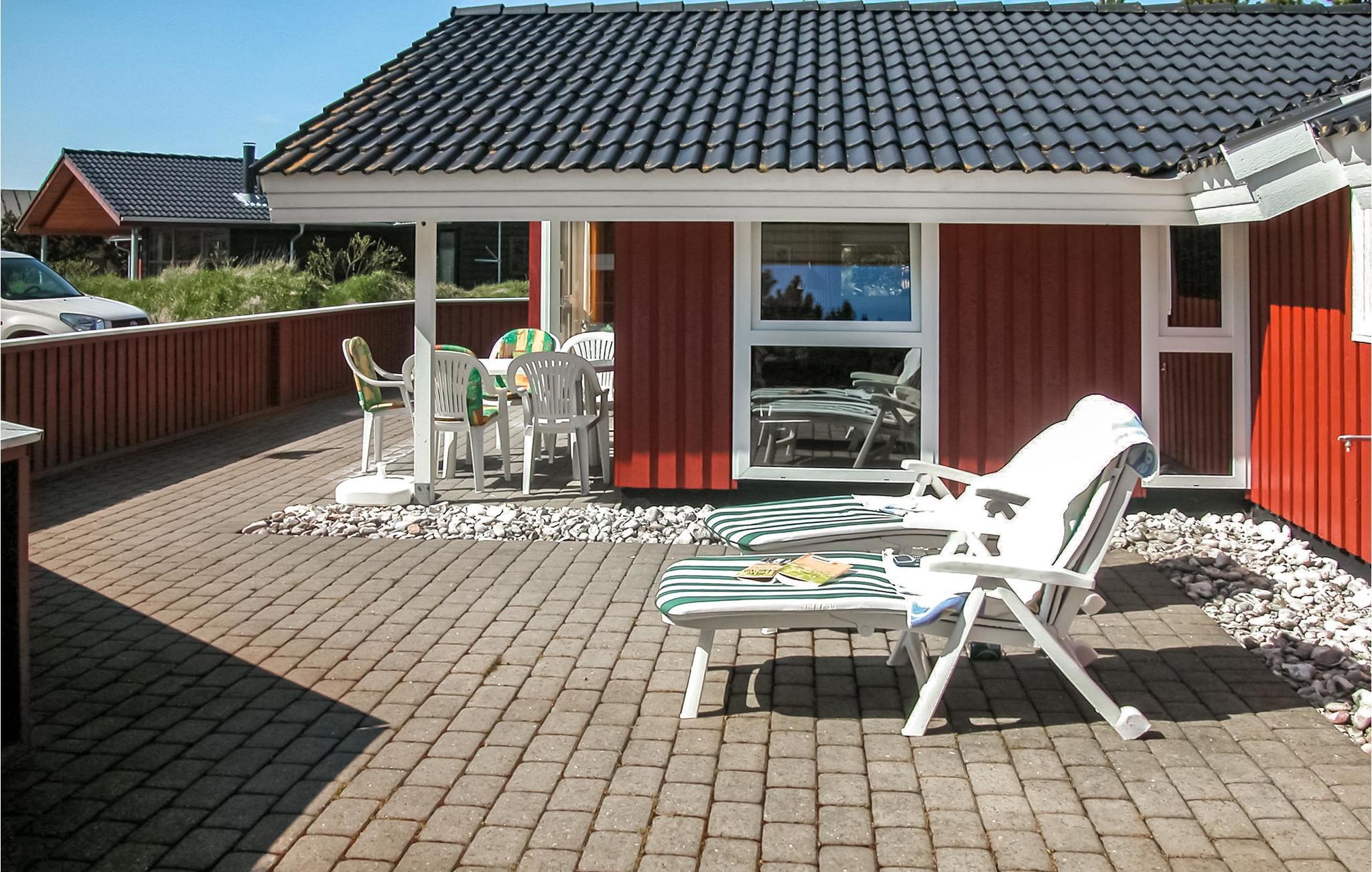 Hyggeligt feriehus nær stranden i Blåvand med stor terrasse og sauna for afslappende ophold.