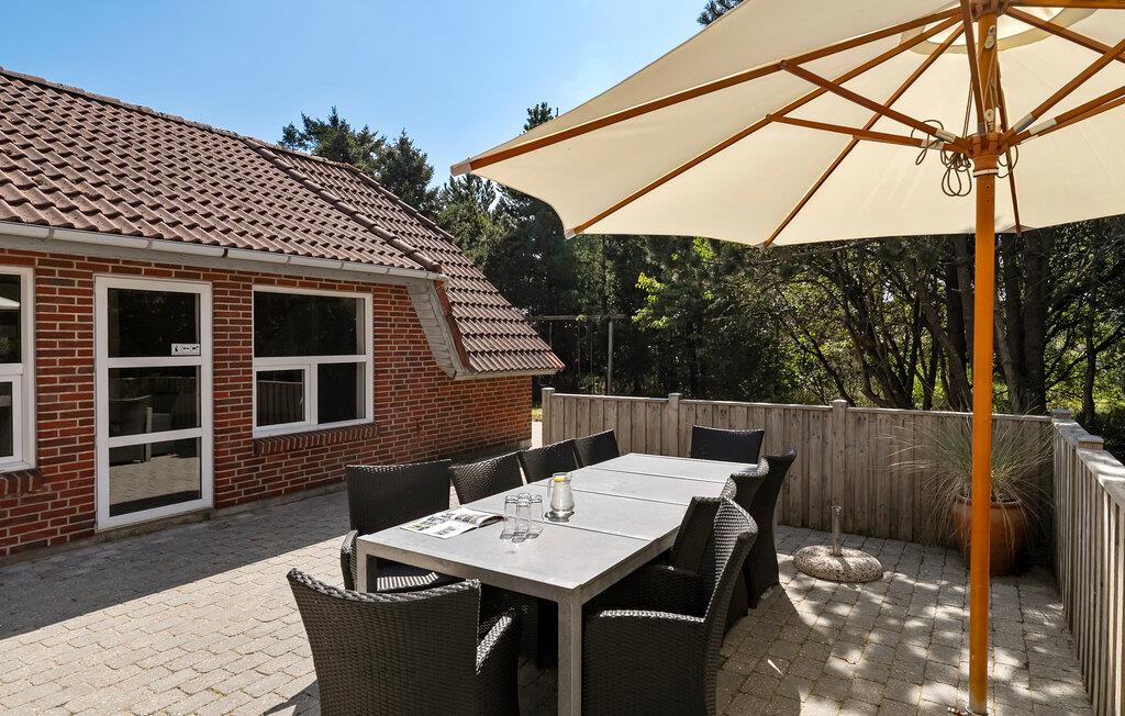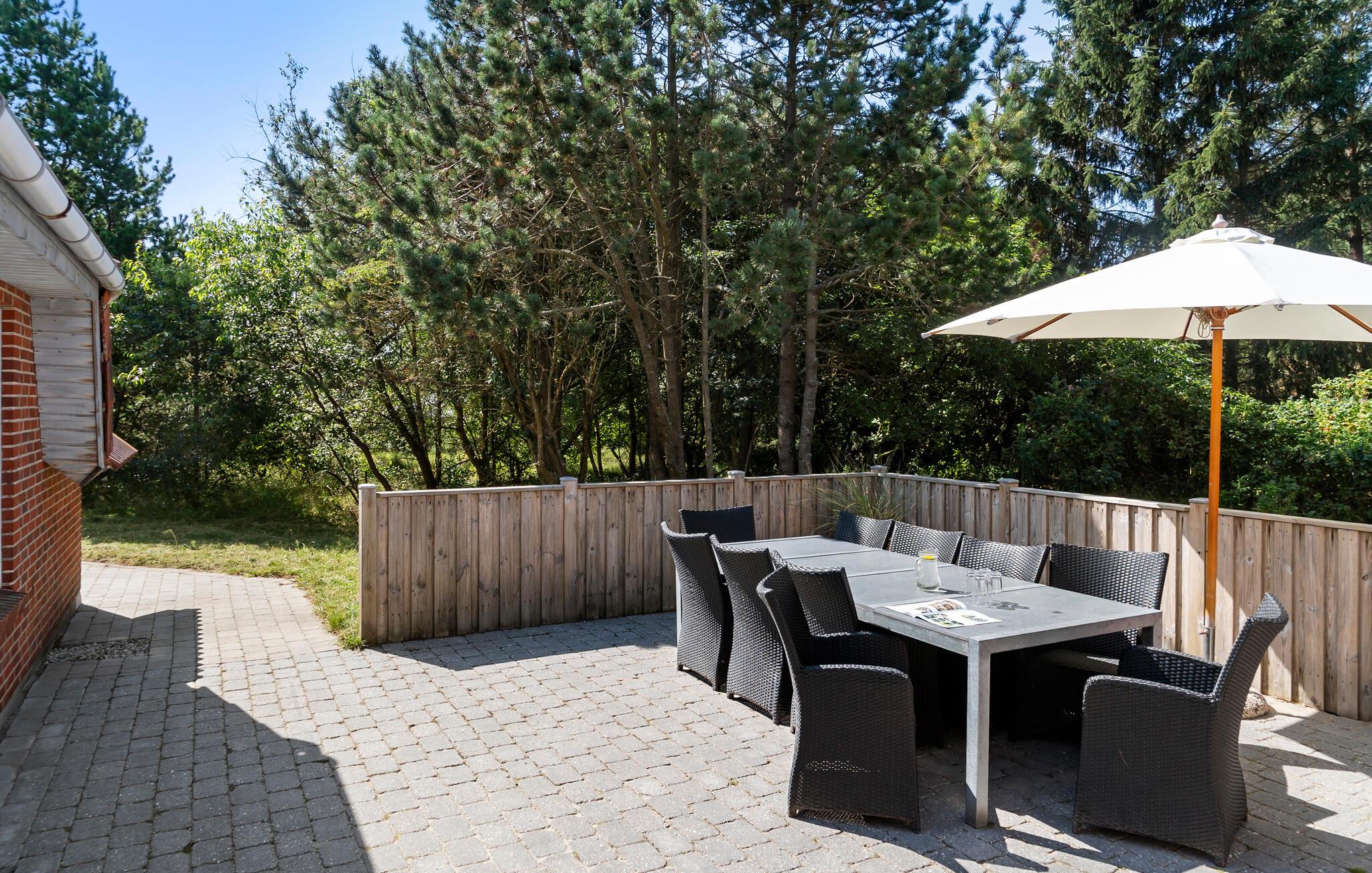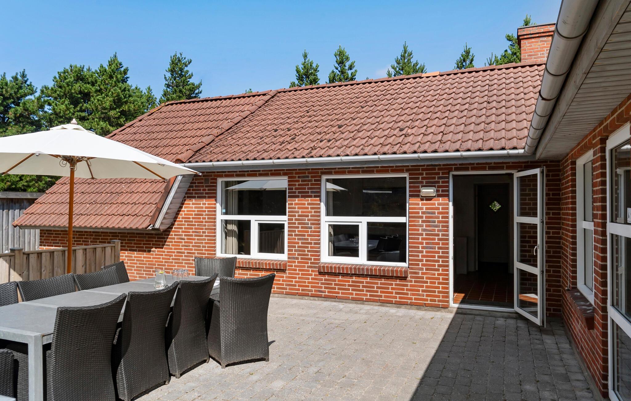 Hyggeligt feriehus i Blåvand med pool, sauna og stor terrasse på en naturskøn grund.
