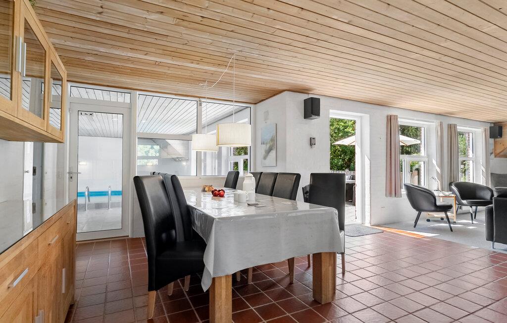 Fra spisestuen kan I følge aktiviteterne i poolafdelingen, hvor der også er plads til at sidde og hyggesnakke efter I har benyttet saunaen og spabadet. Omkring huset er der flisebelagte terrasser med læmuligheder næsten hele vejen rundt om huset. Huset ligger desuden for enden af en lille vej, og har derfor ikke noget trafik. Blåvand by med de gode shoppingmuligheder ligger også tæt på huset, så I kan enten gå eller cykle dertil.