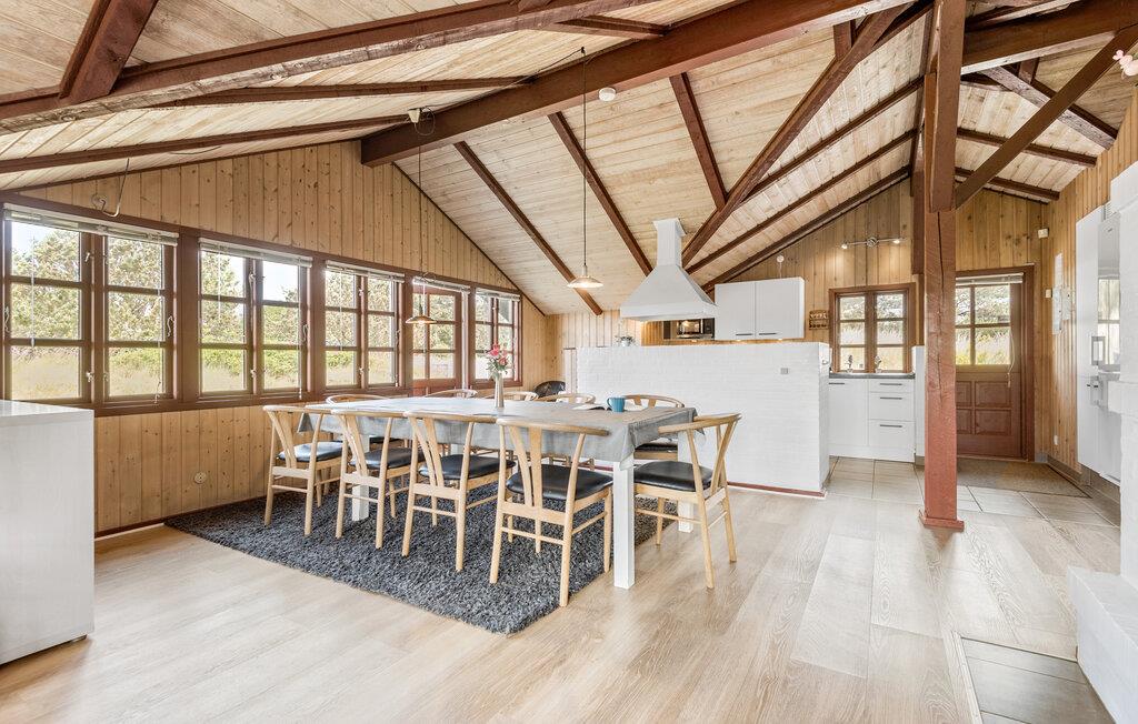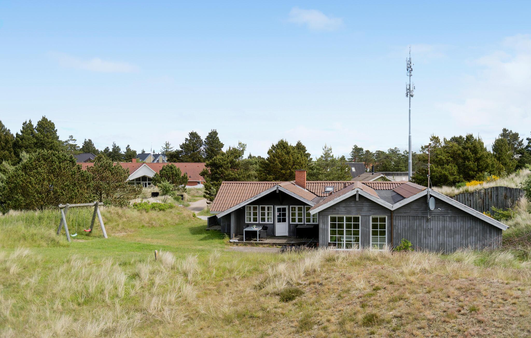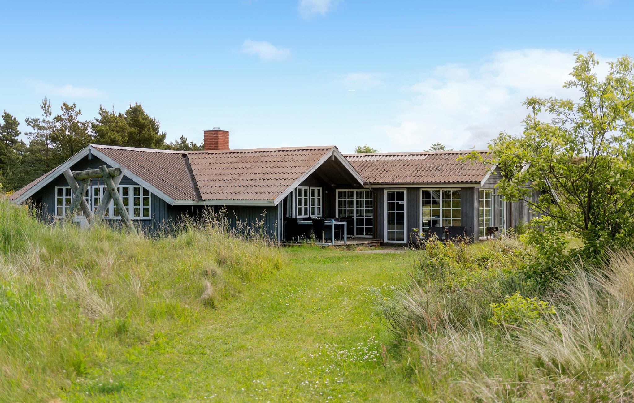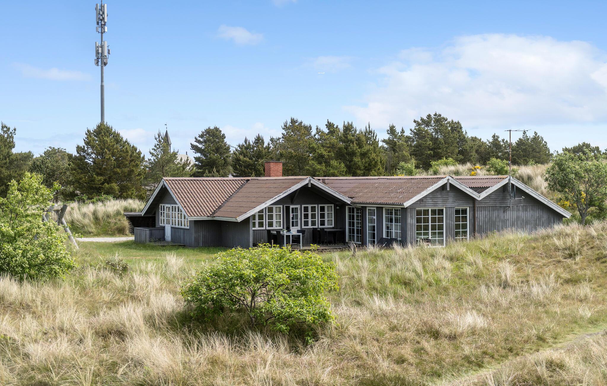 Centralt i Blåvand, på en stor, delvist kuperet naturgrund, ligger dette dejlige feriehus, kun 1300 m fra Vesterhavet. Huset er veludstyret med dejlige faciliteter som bl.a. en 40 m2 stor swimmingpool. I poolafdelingen, med vandskurede vægge og klinkegulve, finder I endvidere det skønne spabad til fem personer, saunaen, et separat toilet samt et dejligt stort opholdsareal, hvor I kan sidde og betragte de badende. Hertil kommer et badeværelse med gulvvarme. Køkkenet ligger i åben forbindelse med opholdsstuen, der har ludbehandlede vægge samt parketgulve med løse tæpper. Gennem de store vinduespartier i stuen kan I se ud over grunden, og I har udgang til den overdækkede og åbne terrasse. Her er I midt i naturen og lige ved siden af byen.