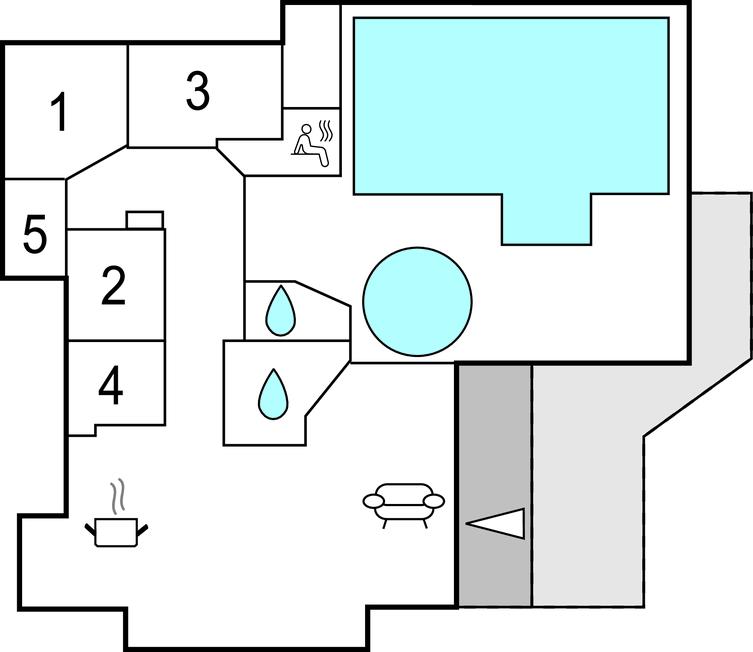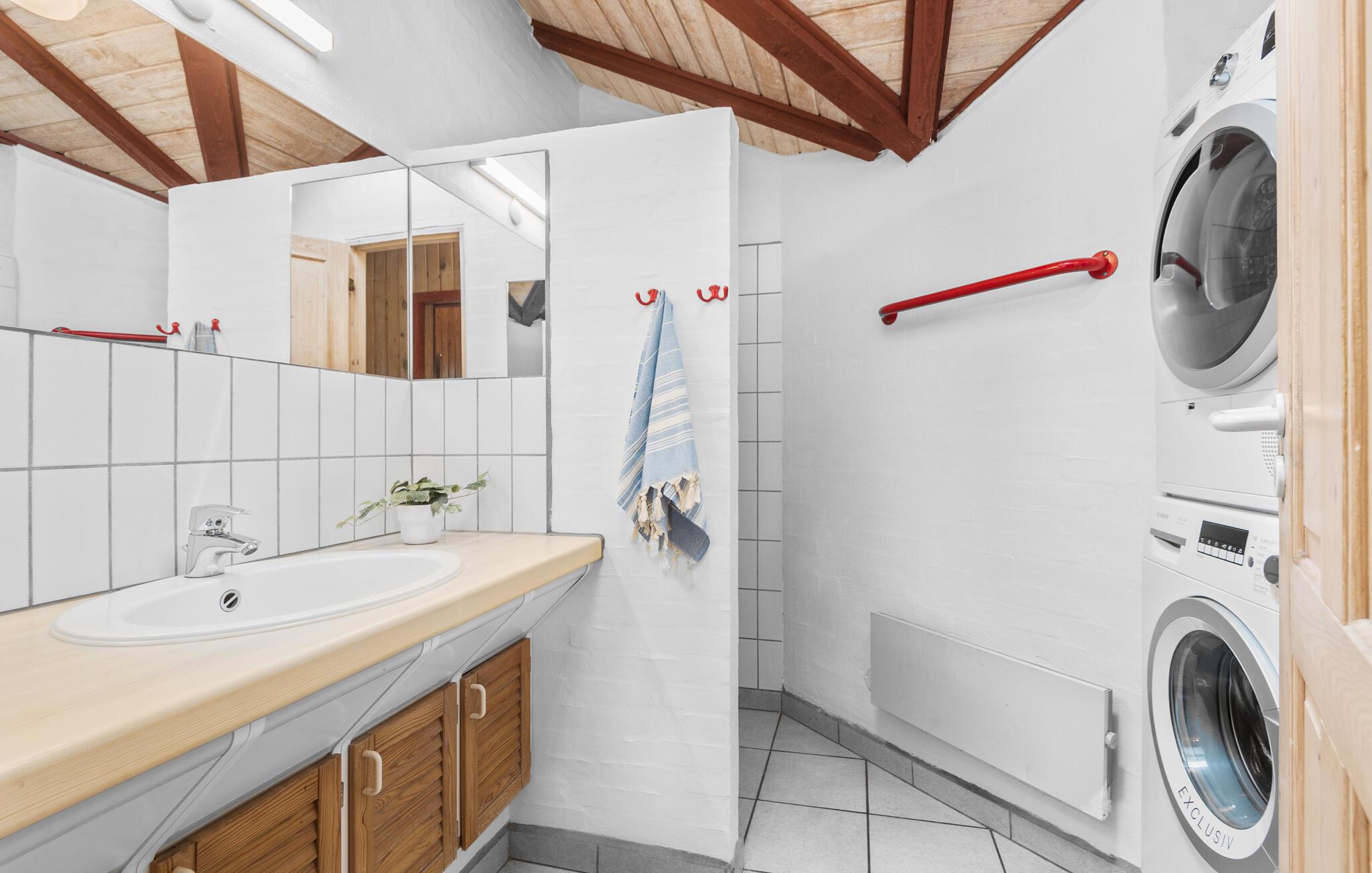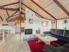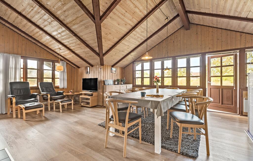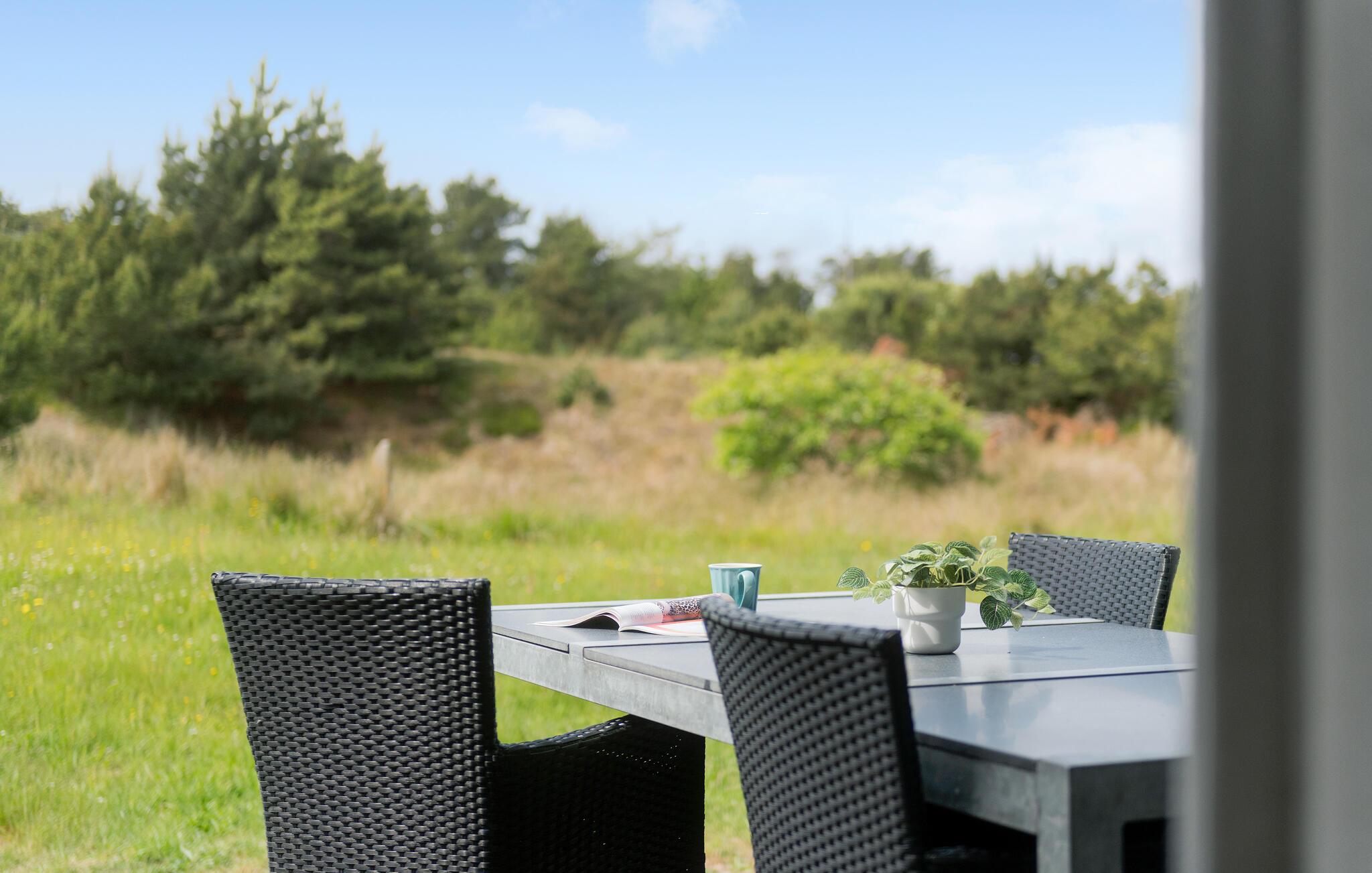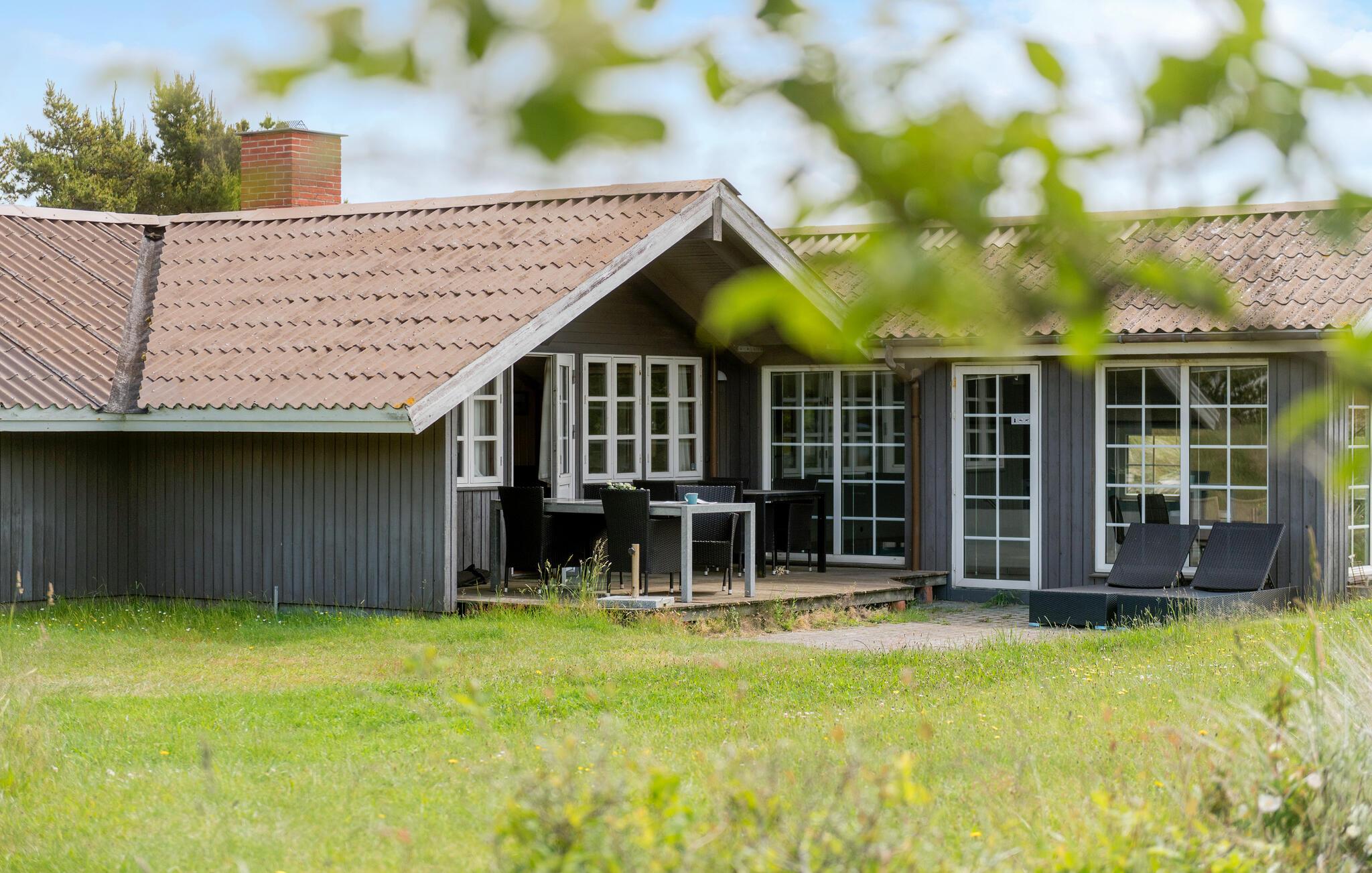 Centralt i Blåvand, på en stor, delvist kuperet naturgrund, ligger dette dejlige feriehus, kun 1300 m fra Vesterhavet. Huset er veludstyret med dejlige faciliteter som bl.a. en 40 m2 stor swimmingpool. I poolafdelingen, med vandskurede vægge og klinkegulve, finder I endvidere det skønne spabad til fem personer, saunaen, et separat toilet samt et dejligt stort opholdsareal, hvor I kan sidde og betragte de badende. Hertil kommer et badeværelse med gulvvarme. Køkkenet ligger i åben forbindelse med opholdsstuen, der har ludbehandlede vægge samt parketgulve med løse tæpper. Gennem de store vinduespartier i stuen kan I se ud over grunden, og I har udgang til den overdækkede og åbne terrasse. Her er I midt i naturen og lige ved siden af byen.