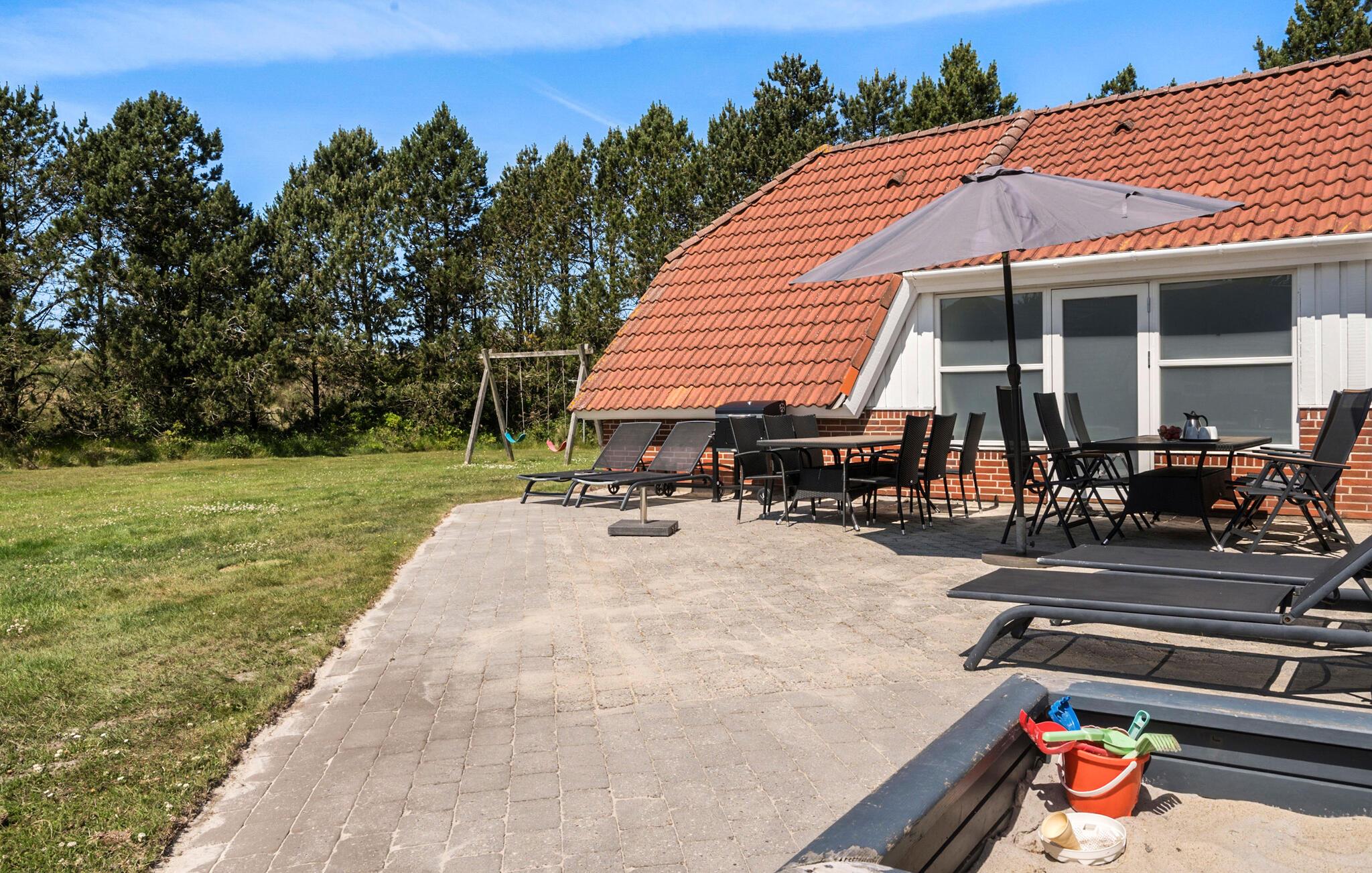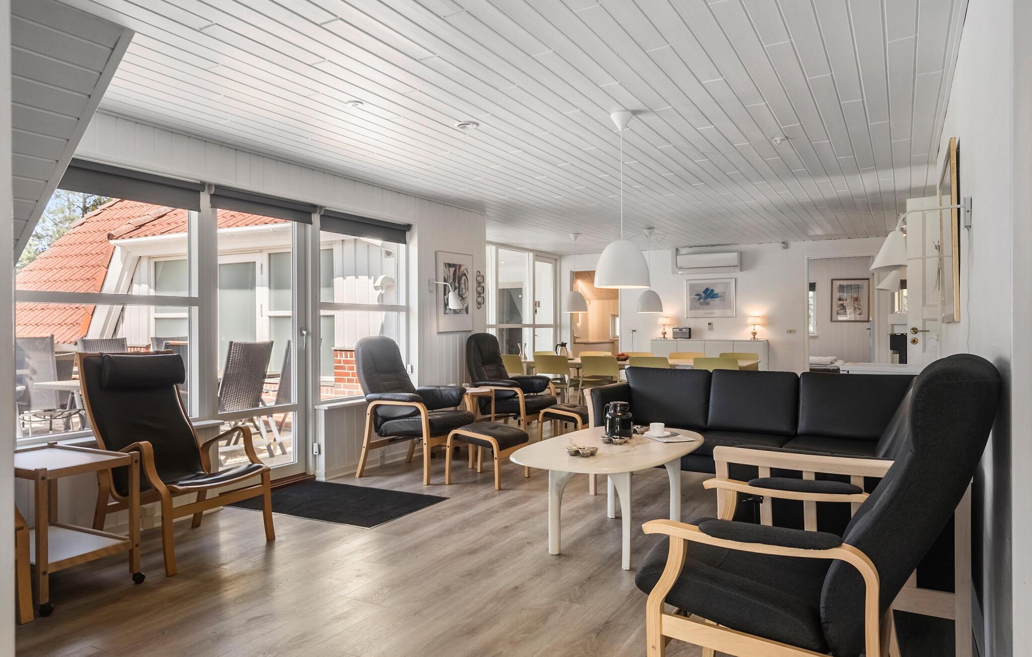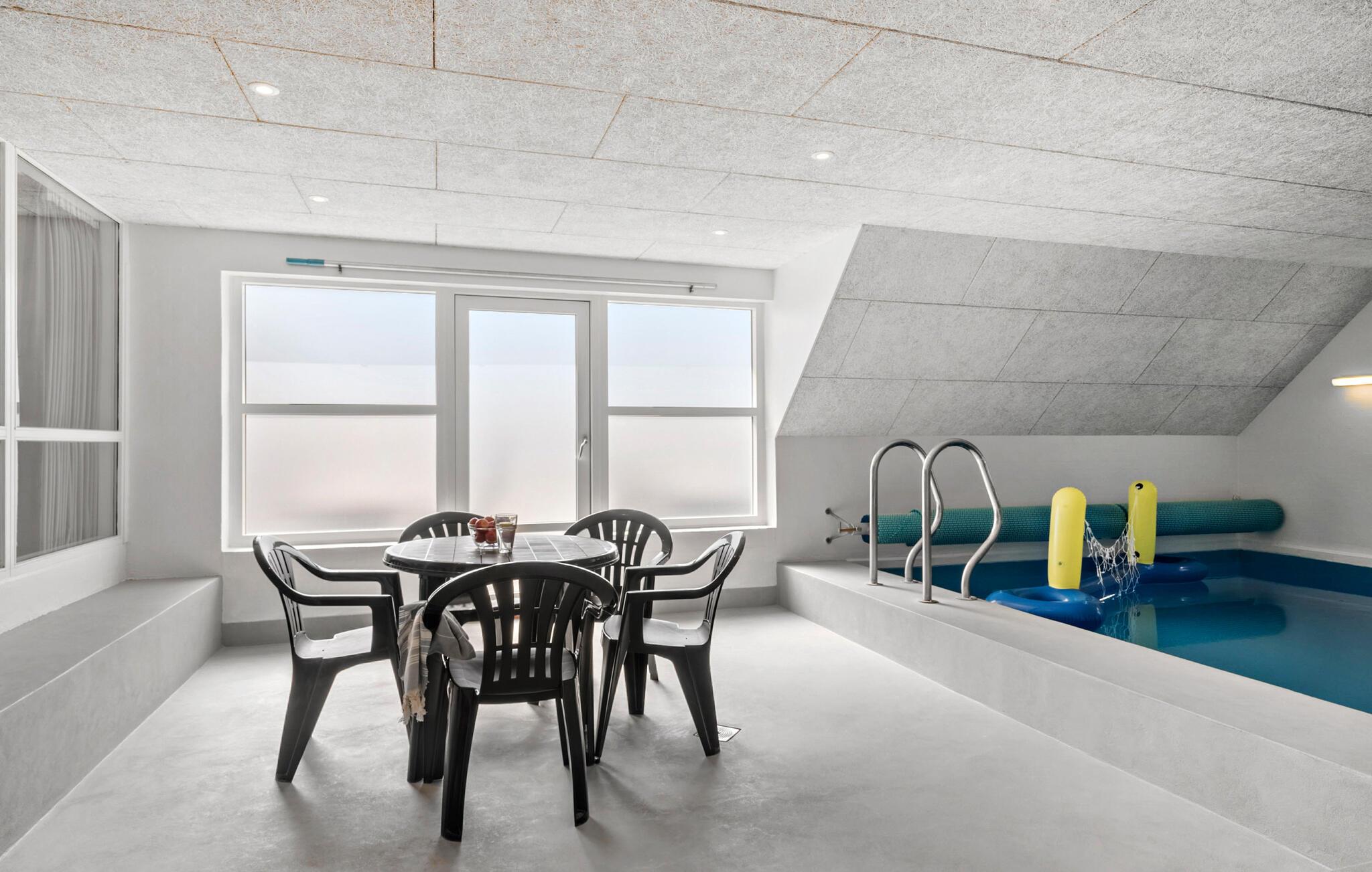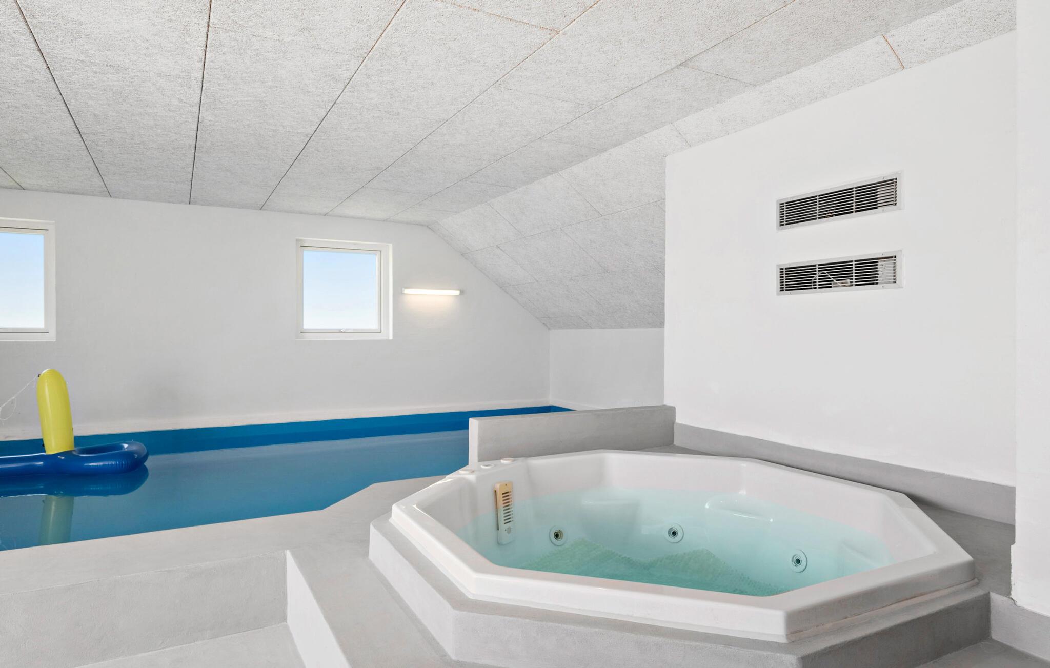 Stort feriehus nær Blåvand centrum med indendørs pool og spabad, ideelt til afslapning og aktiviteter.