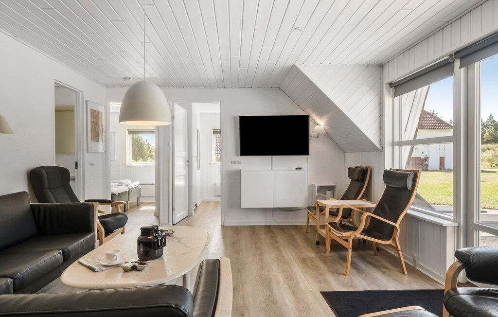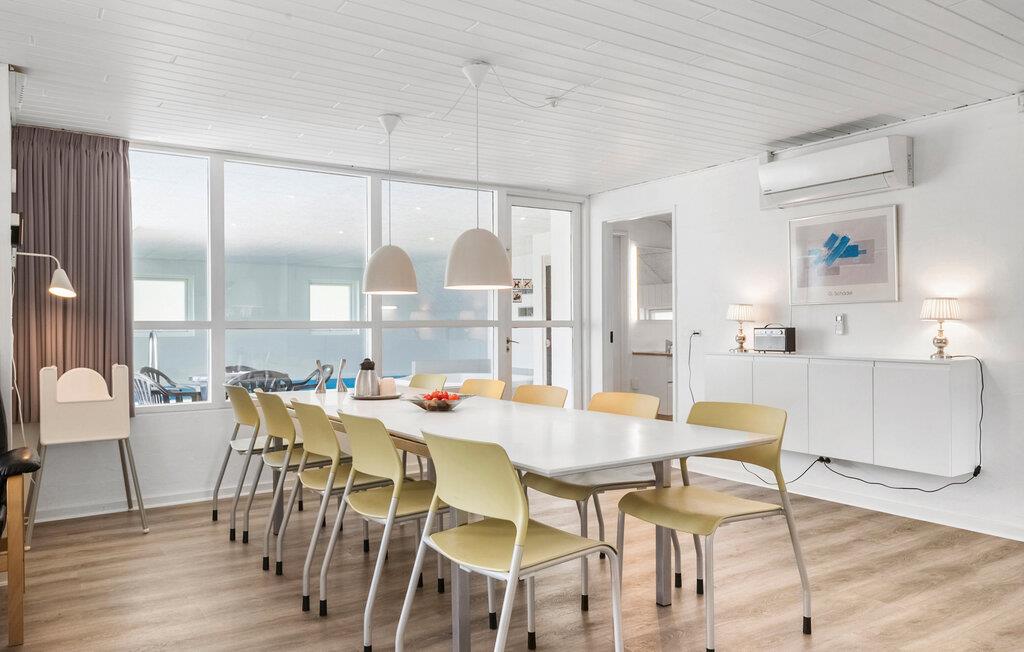 Nær Blåvand centrum og dog tilbagetrukket ligger dette store, dejlige feriehus. Huset indeholder næsten al tænkeligt udstyr, bl.a. en indendørs swimmingpool og et fem pers. spabad. Huset er indrettet med kvalitetsmøbler overalt og stuen er kombineret med den flotte, åbne køkkenafdeling, hvor en halvmur fungerer som bardisk. Fra spisestuen kan I se direkte ind i det store poolrum. Udendørs, på den dejlige terrasse, kan I alle hygge jer sammen og nyde de lune sommerdage. Den store græsplæne vil også være oplagt til boldspil. Der er kun få minutters gang til et stort aktivitetscenter og Blåvands store legeplads. Ligeledes er der heller ikke mere end 10-15 min.'s gang til Hvidbjerg Strand, som er et sandt paradis for badegæster og surfere.