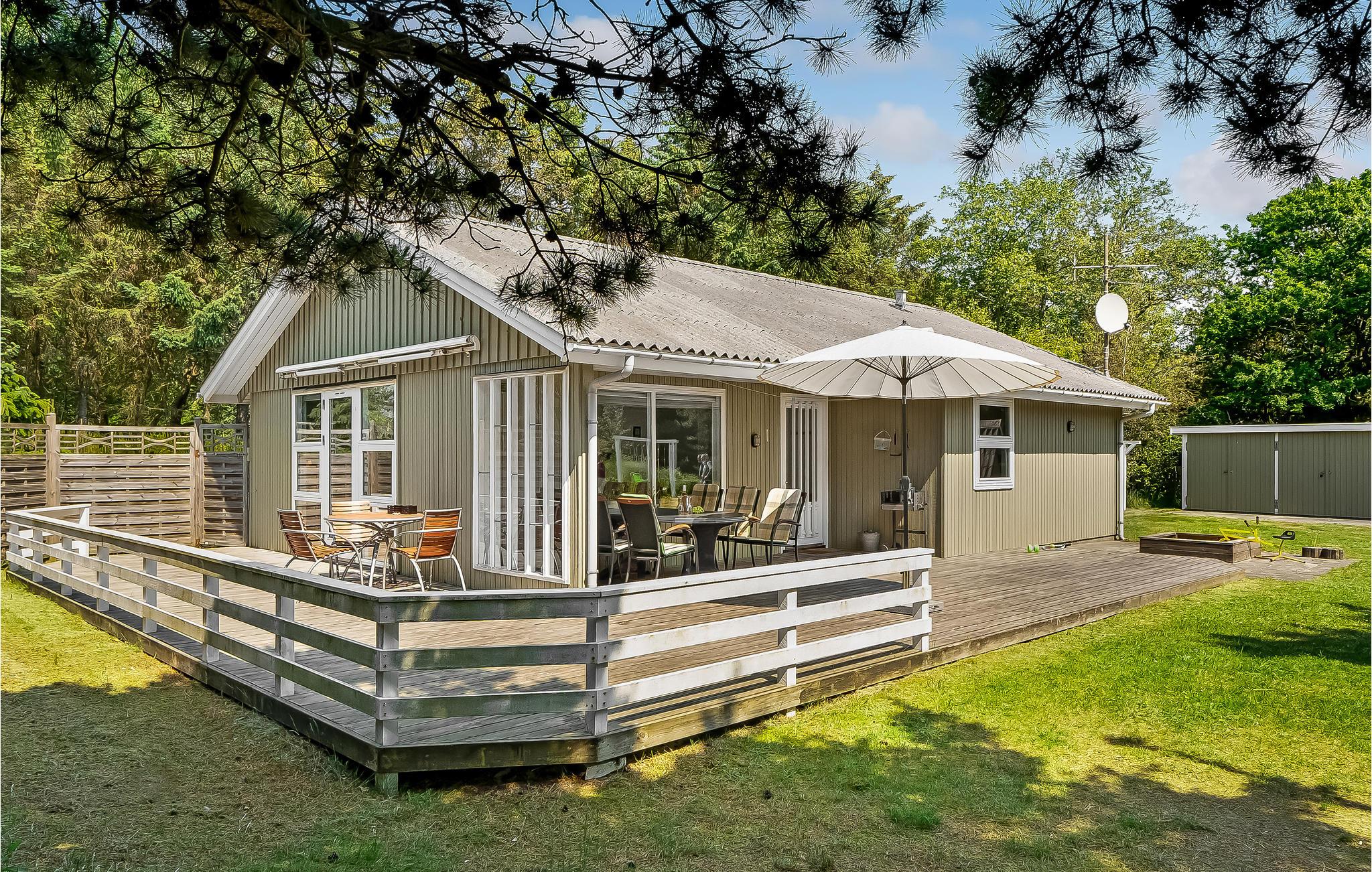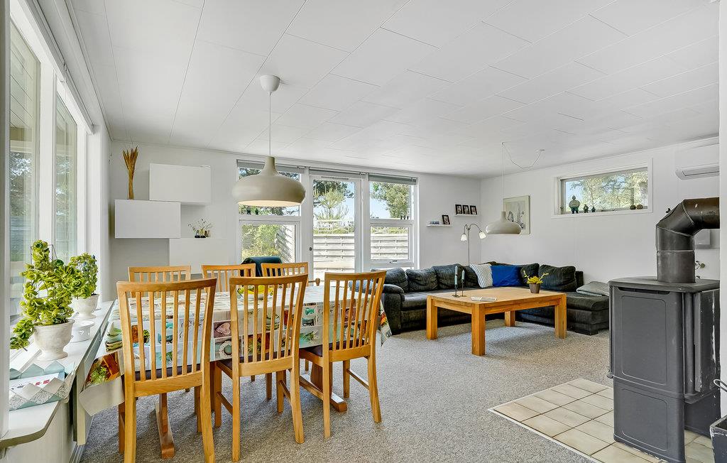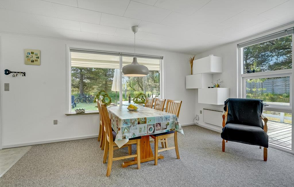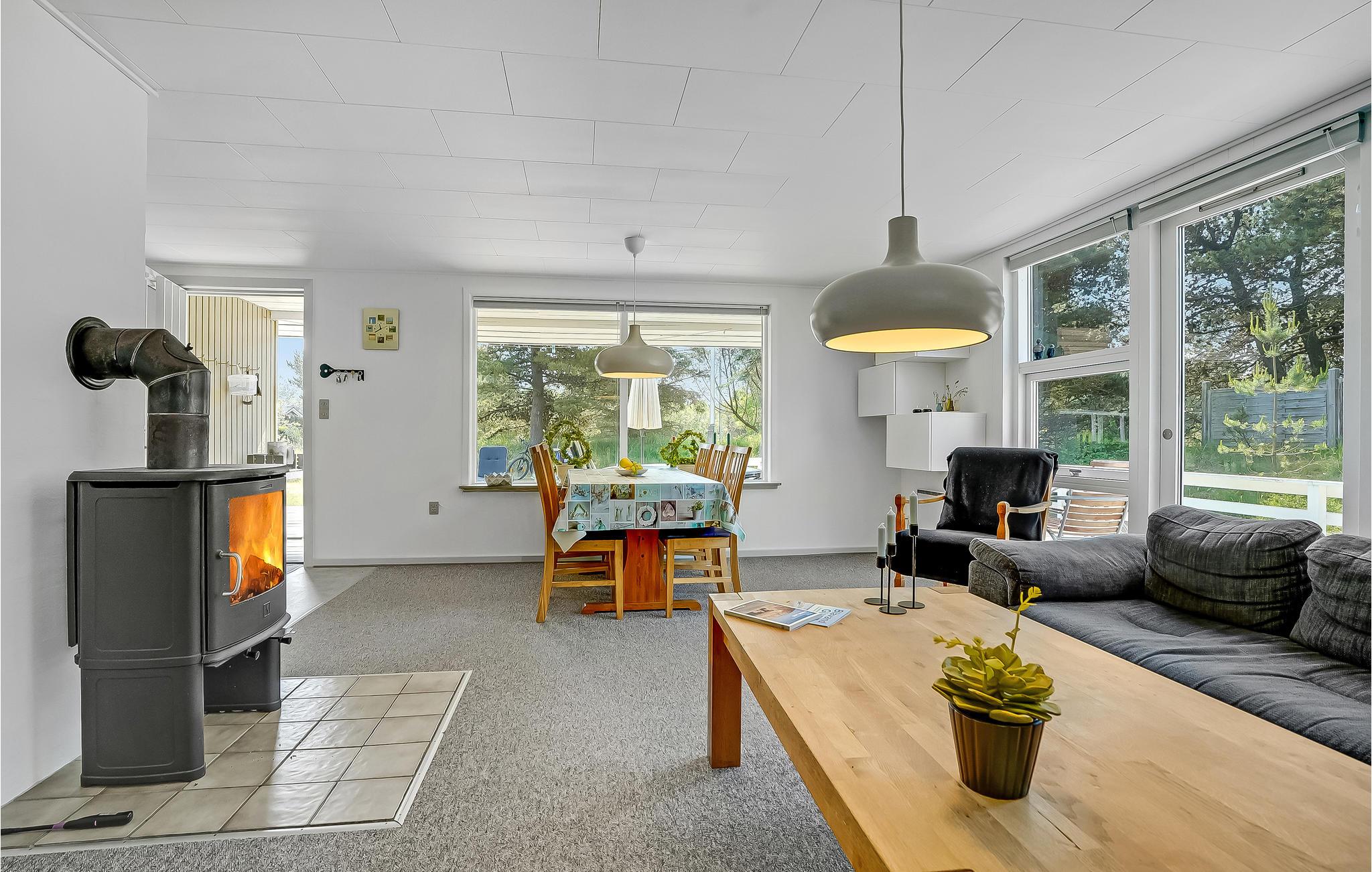 Kun få minutters gang fra Blåvand centrum ligger dette hyggelige sandfarvede træhus på en stor delvist lukket naturgrund. Her er alt, hvad I behøver til en ubekymret ferie med kvalitetstid og uforglemmelige timer i det fri. I stuen er der flere store vinduespartier, som lader dagslyset strømme ind. Bag en kage sammen med børnene i det turkise køkken, som I kan nyde til aften- eller eftermiddagskaffen ved spisebordet eller i sofakrogen, mens I spiller familiens favoritbrætspil eller quizzer. Udenfor er der en stor dejlig træterrasse, som indbyder til skønne grillaftener og hyggestunder i løbet af dagen. En del af terrassen er overdækket, så her vil I altid kunne finde læ. Har I brug for lidt skygge på den åbne terrasse, kan I blot rulle markisen ud. Haven er et sandt legeparadis for alle barnlige sjæle og bliver uden tvivl et hit! Området er perfekt til lange gå- og cykelture i den smukke natur.