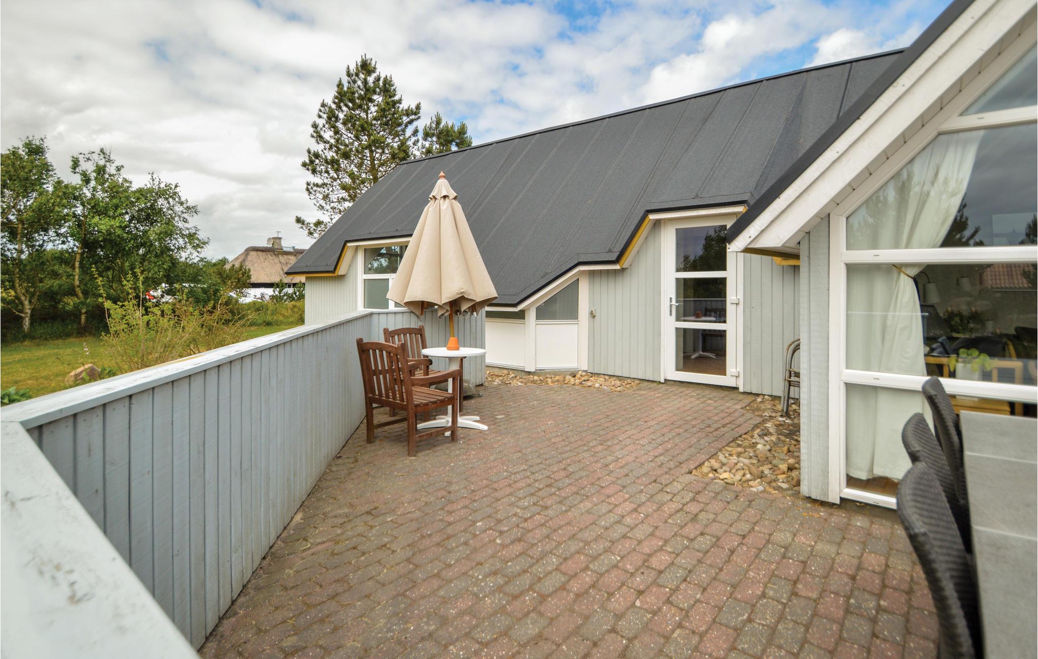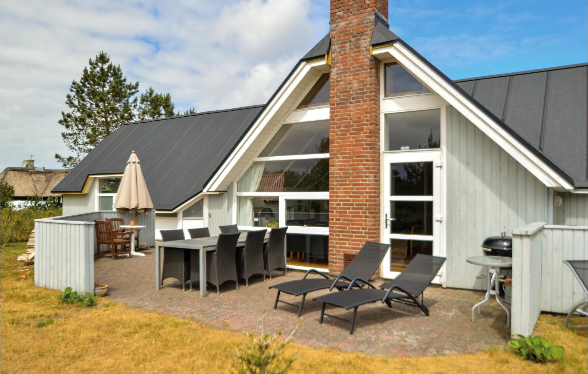 Dette store, stråtækte feriehus ligger op til et storslået naturområde tæt ved Blåvand by og knap to km fra en af Vestkystens mest eftertragtede sandstrande. Der er heller ikke langt til et stort aktivitetscenter med bowlingbane, badeland, tennisbaner, legeplads m.m. Desuden er der kun 8 km til en flot 18-hullers golfbane. Indvendigt er huset godt og praktisk indrettet og der er lagt vægt på en hyggelig og venlig atmosfære overalt. Køkkenet ligger i åben forbindelse med spisestuen og derfor kan I alle samles og hygge jer under madlavningen. Udenfor byder den 80 m² store sydvestvendte terrasse på masser af plads til både leg og afslapning samt selskabelige grillaftener.