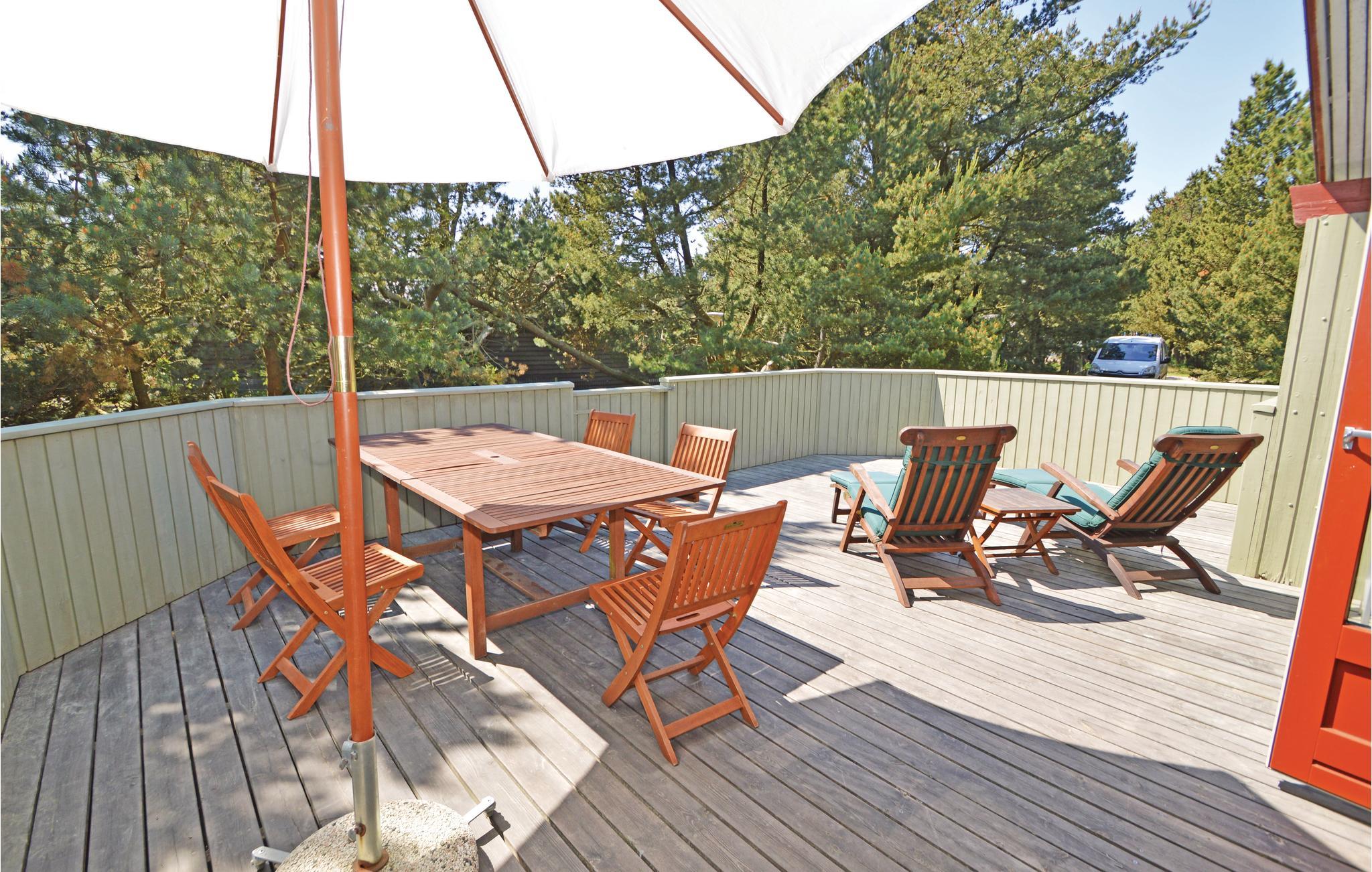 Er I på udkig efter et feriehus i grønne omgivelser, ikke alt for langt fra stranden? Så er dette hus på en skøn naturgrund et godt valg. Her er alt, hvad I behøver til en ubekymret ferie med kvalitetstid og mange timer i det fri. Bag en kage sammen med børnene, som I kan nyde til aftenkaffen ved spisebordet, mens I spiller familiens favoritbrætspil. Har I brug for ekstra afslapning, kan I svede hverdagens stress ud i husets sauna. Boligen har dejlige terrasser, hvoraf den ene er helt lukket, og den anden er overdækket. På den måde er der plads til både kortspil under parasollen og lange hyggelige grillaftener. Haven er et sandt legeparadis for alle barnlige sjæle. Her kan jeres børn spille bold, lege gemmeleg og meget mere. Huset ligger i gåafstand til Blåvand by.
