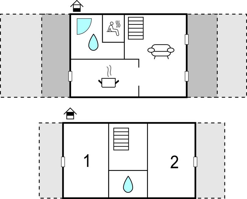 Soveværelse (nr. 1) - 1 Soveplads. (Enkeltseng(e)). 2 Sovepladser. (Dobbeltseng(e)).