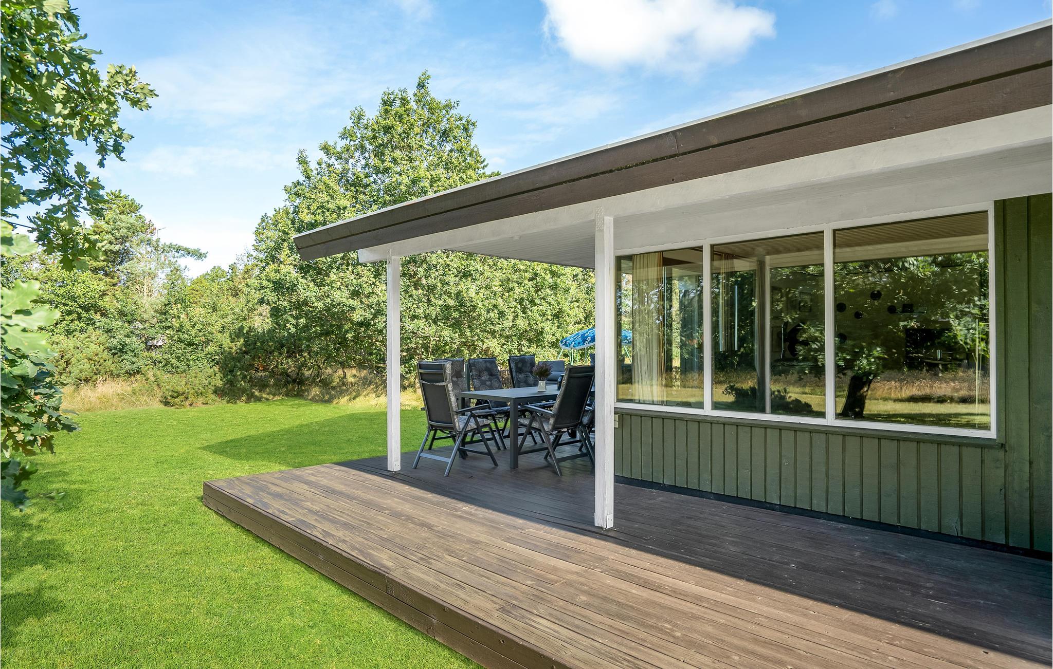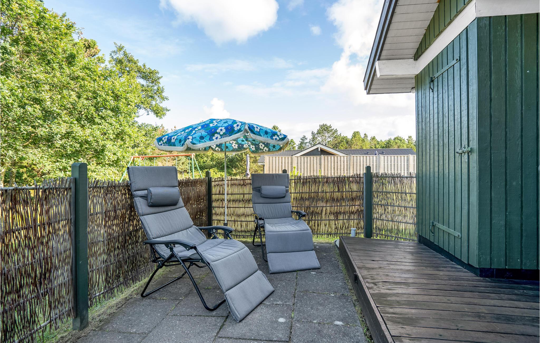 Hyggeligt feriehus på stor naturgrund nær Blåvand med åben og overdækket terrasse, ideelt til familie og naturelskere.