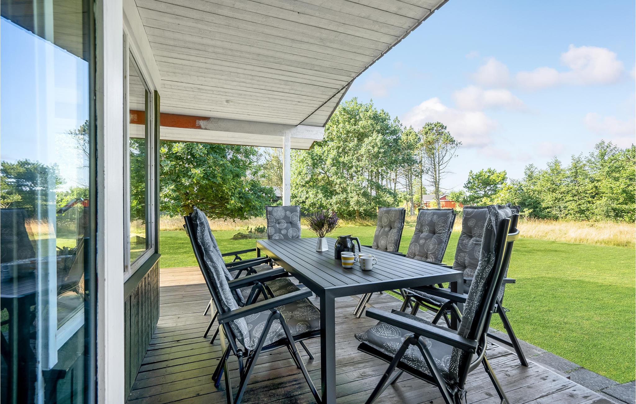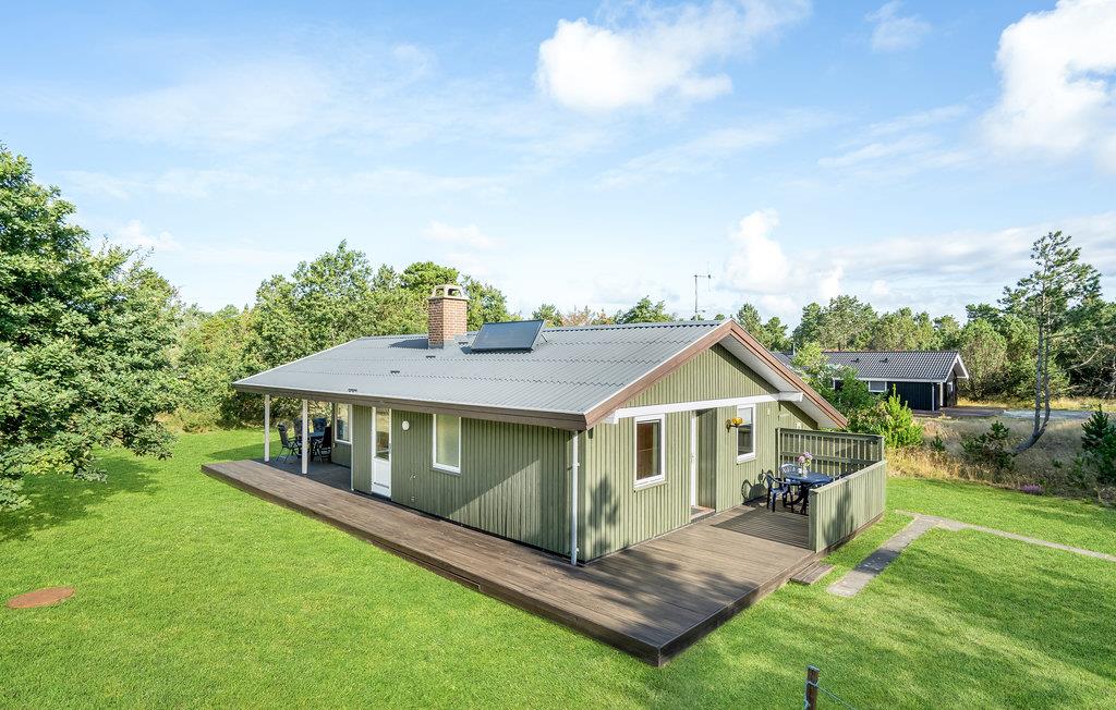 Dette feriehus ligger ugenert i grønne omgivelser, kun få km fra Blåvand. Et ideelt sted for naturelskere, som kan udforske den nærliggende Bordrup-Oksby Plantage. Huset byder på en varm atmosfære, et godt lysindfald og er hyggeligt indrettet. Stuen vil hurtigt danne rammen om familiehygge med sjove aktiviteter, og i køkkenet venter fælles madlavning. Mangler overskuddet i hverdagen, vil der her være rig mulighed for at have børnene med i køkkenet. Måske vil I bage lidt lækkert til i aften eller lave børnenes yndlingsret? Nyd de lange lune aftener på den dejlige træterrasse, der snor sig rundt om huset. De lidt større børn kan servere maden på den overdækkede terrasse. Området er perfekt til lange vandre- og cykelture i den smukke natur. Her får man lyst til at gå en frisk aftentur.