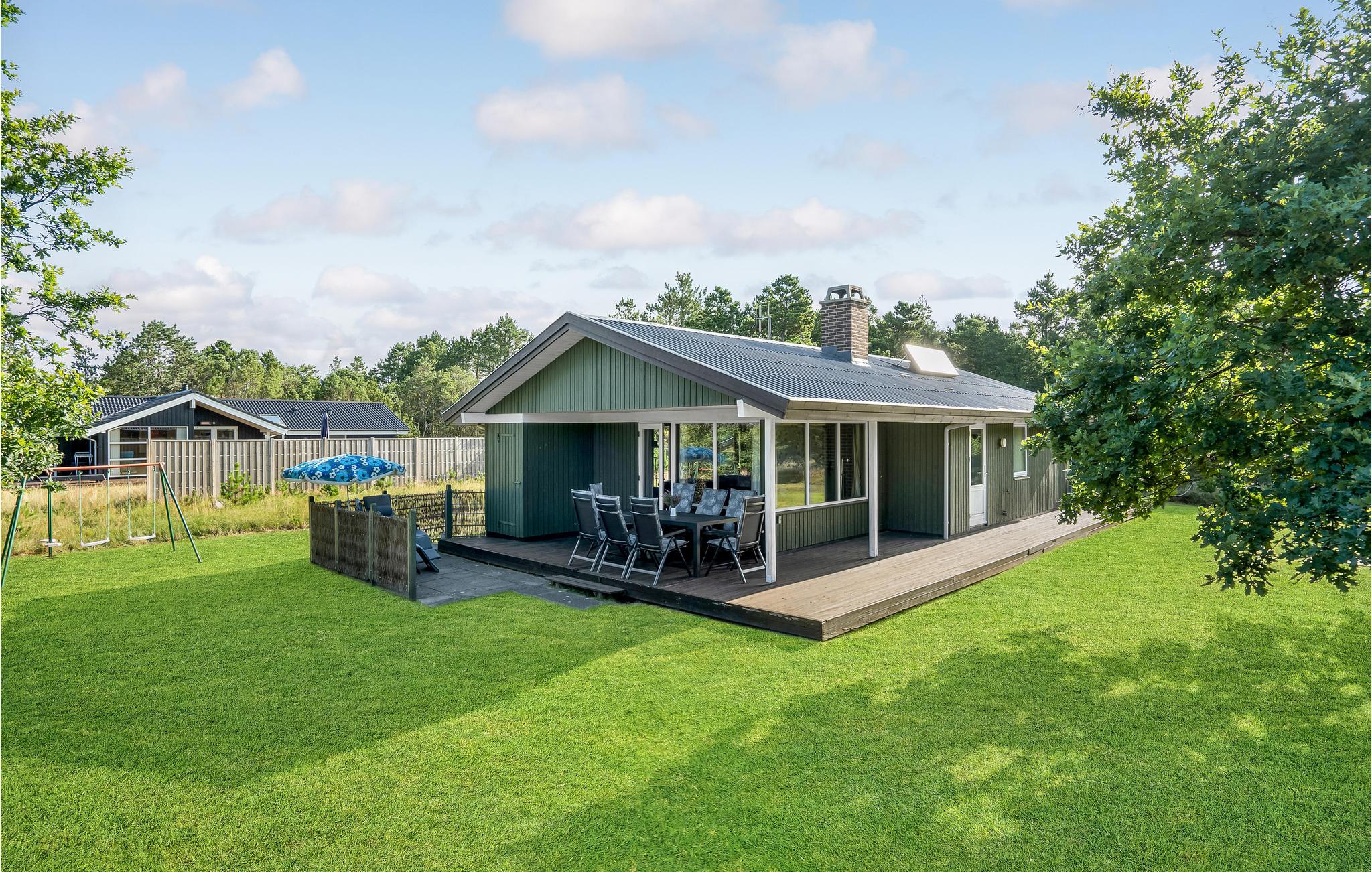 Glæd jer til kvalitetstid i dette feriehus på en stor naturgrund i Oksby.