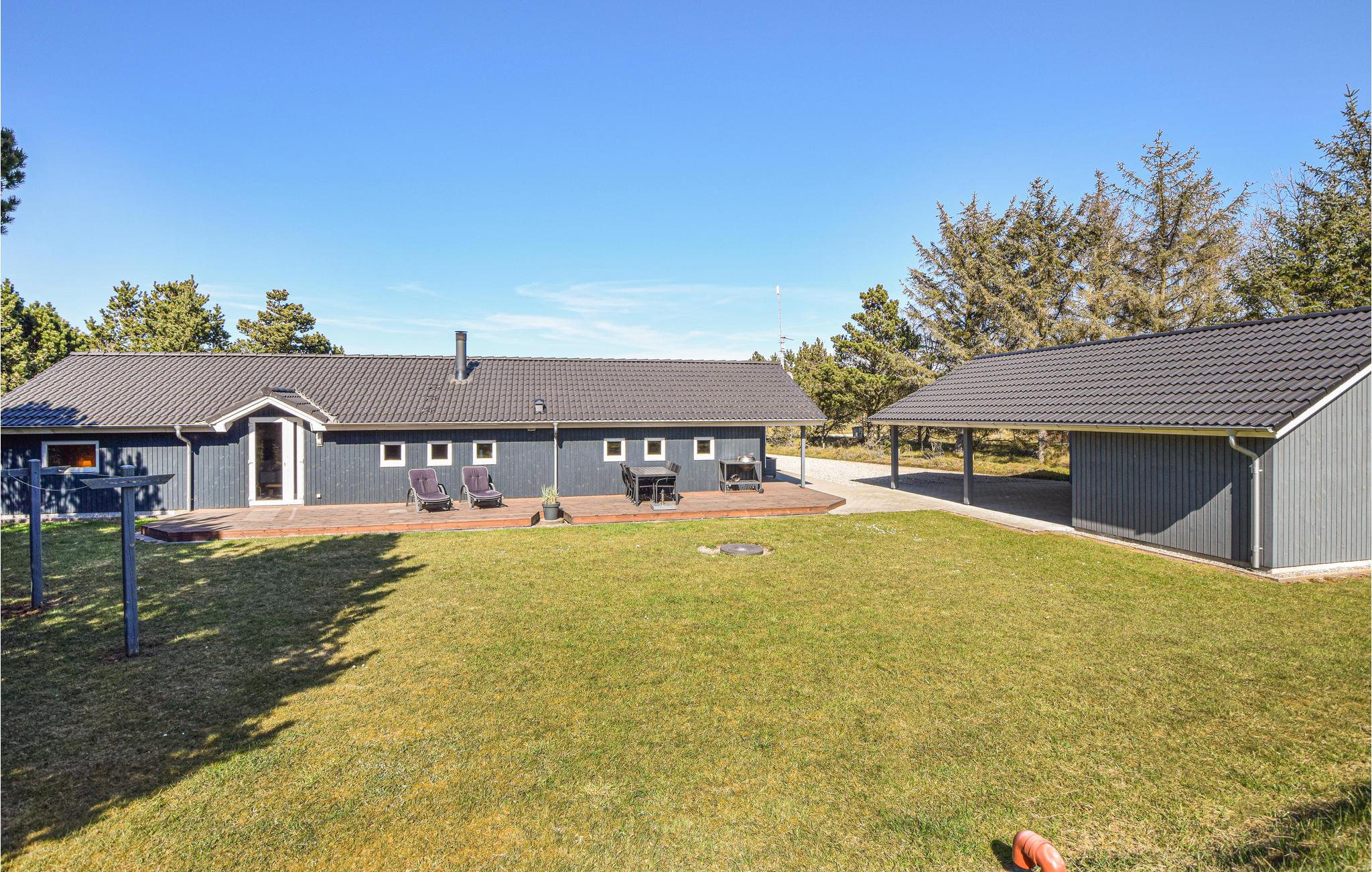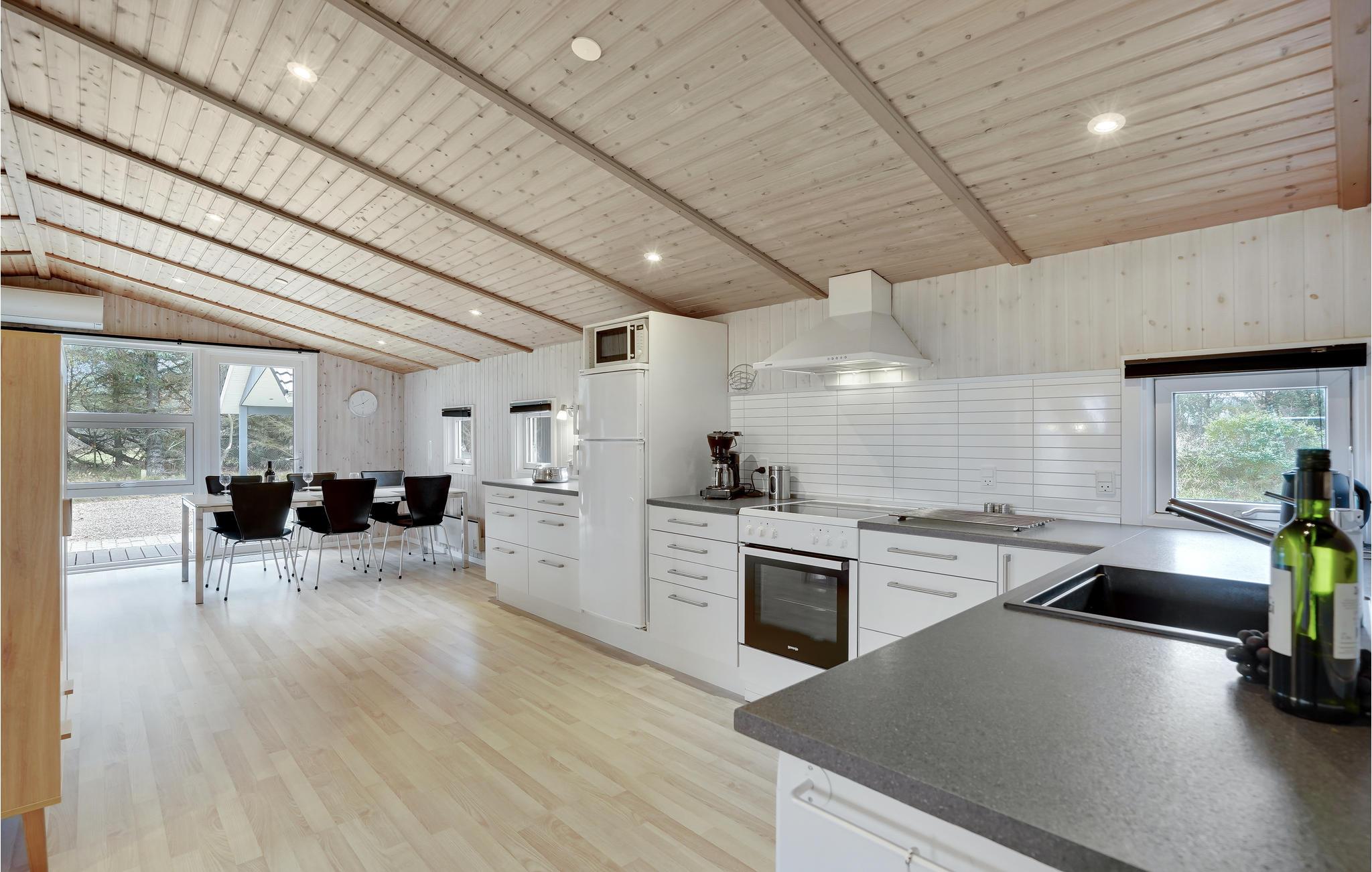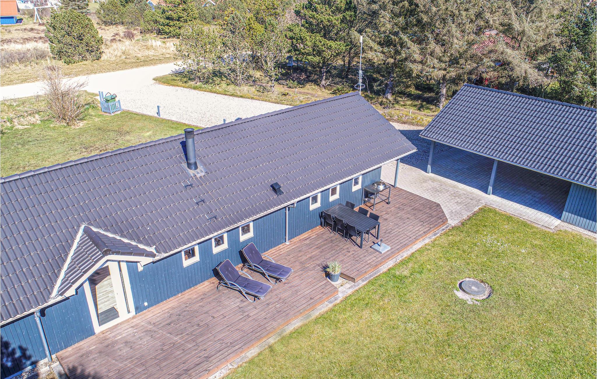 Hyggeligt feriehus beliggende i gåafstand til Blåvand by. Huset ligger på en delvis lukket naturgrund. I badeværelset kan både saunaen og spaen nydes. Fra husets store, dejlige terrasse er der fri udsigt til det skønne naturområde. Spisestuen, køkkenet og stuen hænger fint sammen og giver familien både plads og råderum på en gang - her kan alle være sammen. Der er mange små stier i sommerhusområdet, hvor I kan gå en tur i området, eller finde jeres egen vej ned til Blåvand by, der byder på gode restauranter og spændende butikker. Ved huset ligger der brænde som mod betaling kan benyttes i husets brændevon.