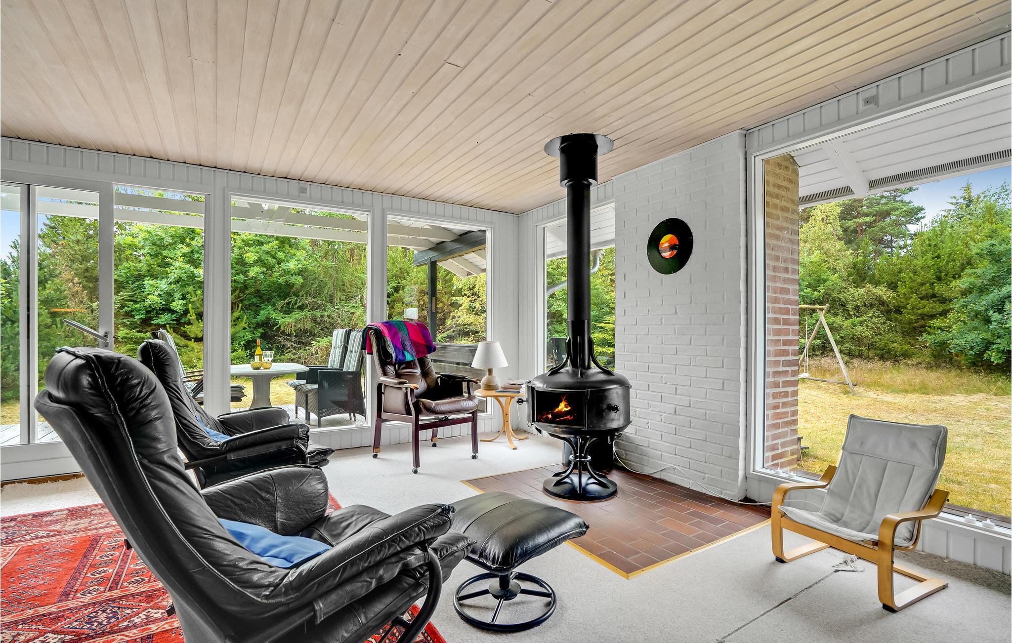 Sommerhuset byder på tre hyggelige soveværelser samt badeværelse, køkken og en hyggelig opholdsstue. Efter en masse aktiviteter i naturen kan I slappe af i opholdsstuen, mens ilden i brændeovnen, og hverdagen er sat på pause. De store vinduesfronter sørger for masser af lys og en dejlig udsigt til omgivelserne.