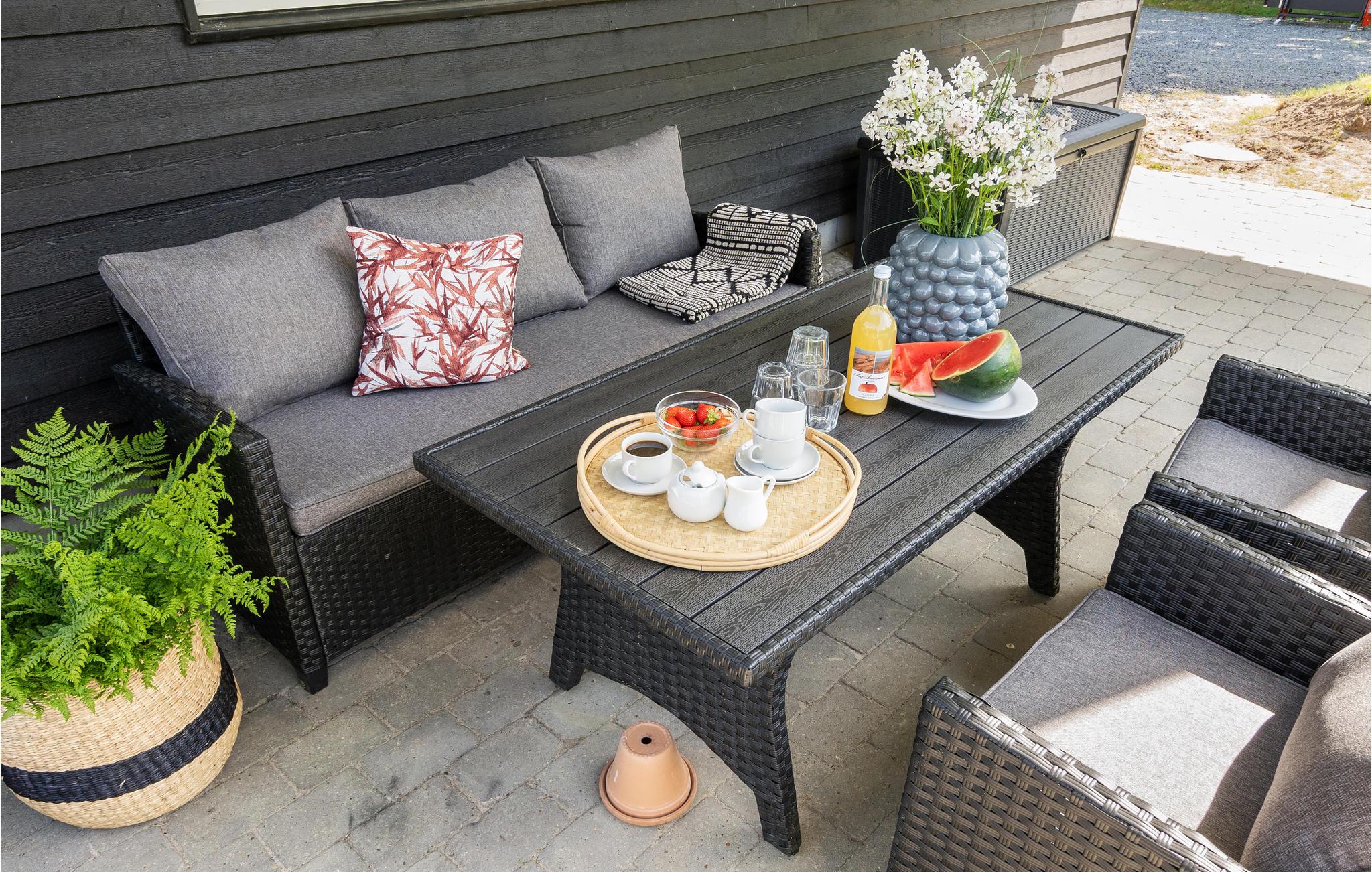 Når vejret er godt, kan I sætte jer ud på terrassen og nyde solens varme og den friske luft. Her kan I også samles til en hyggelig grillaften, mens børnene leger i haven. Forskelligt sportsudstyr og aktivitetsmuligheder sørger for gode stunder både for store og små. Det ekstra lange havebord gør, at der er plads til jer alle sammen også udenfor.