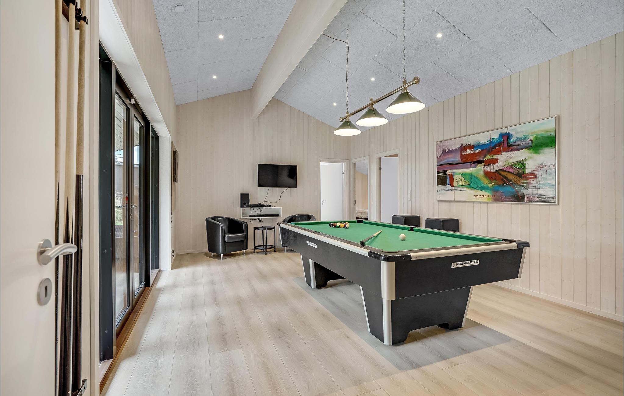 Dette lyse og venlige feriehus har plads til op mod 10 voksne og et lille barn. Her får I gode rammer til at slappe af, både sammen og hver for sig, for der venter jer nemlig et stort opholdsrum og fem gode soveværelser. Snup et spil bordfodbold eller billard, hvis I da ikke er mere i humør til at sætte jer i spabadet på terrassen. Her får I også gode rammer om måltiderne - lige fra en brunch i morgensolen til et glas vin om aftenen. I kan også invitere vennerne over til en dejlig grillmiddag, lige som jeres børn får herlige forhold på grunden, hvor der er rig mulighed for at løbe og lege.