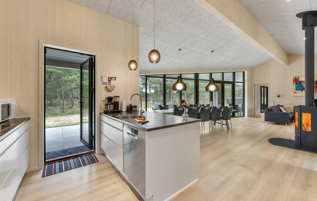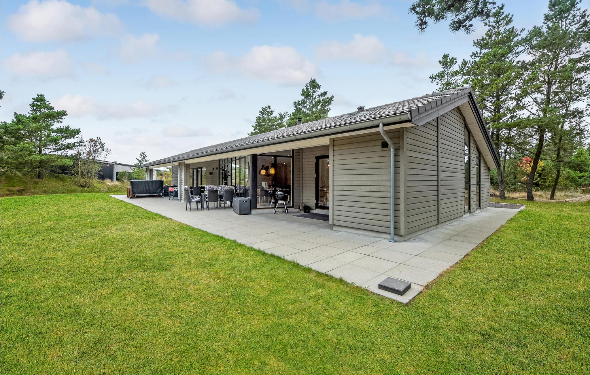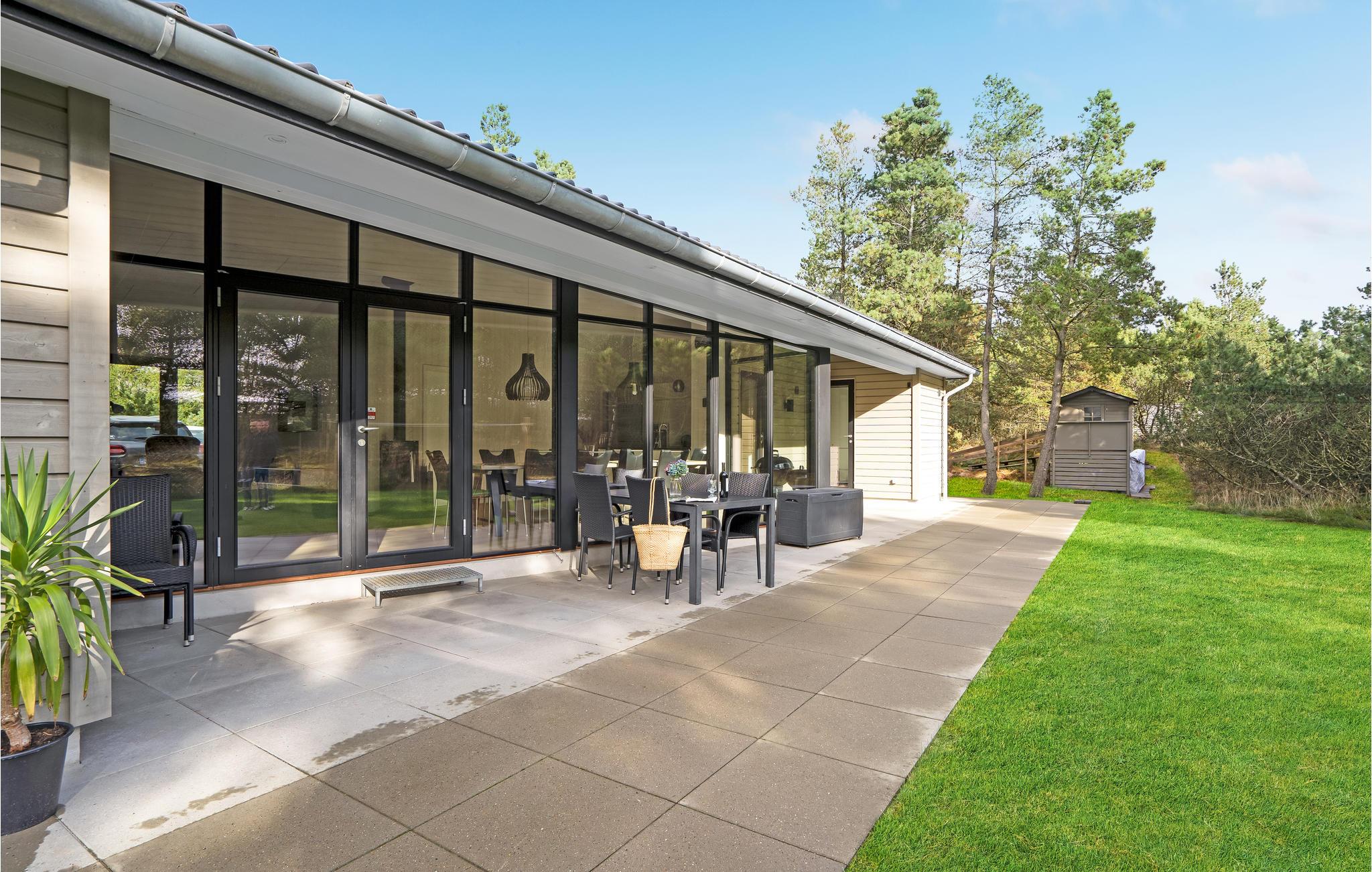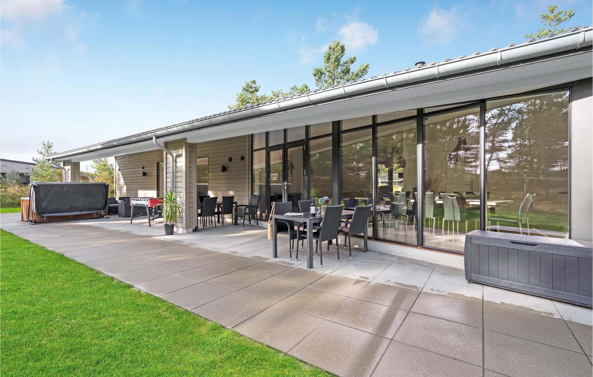 Flot og rummeligt sommerhus i Blåvand med spa, aktivitetsrum og stor naturgrund til afslapning og leg.