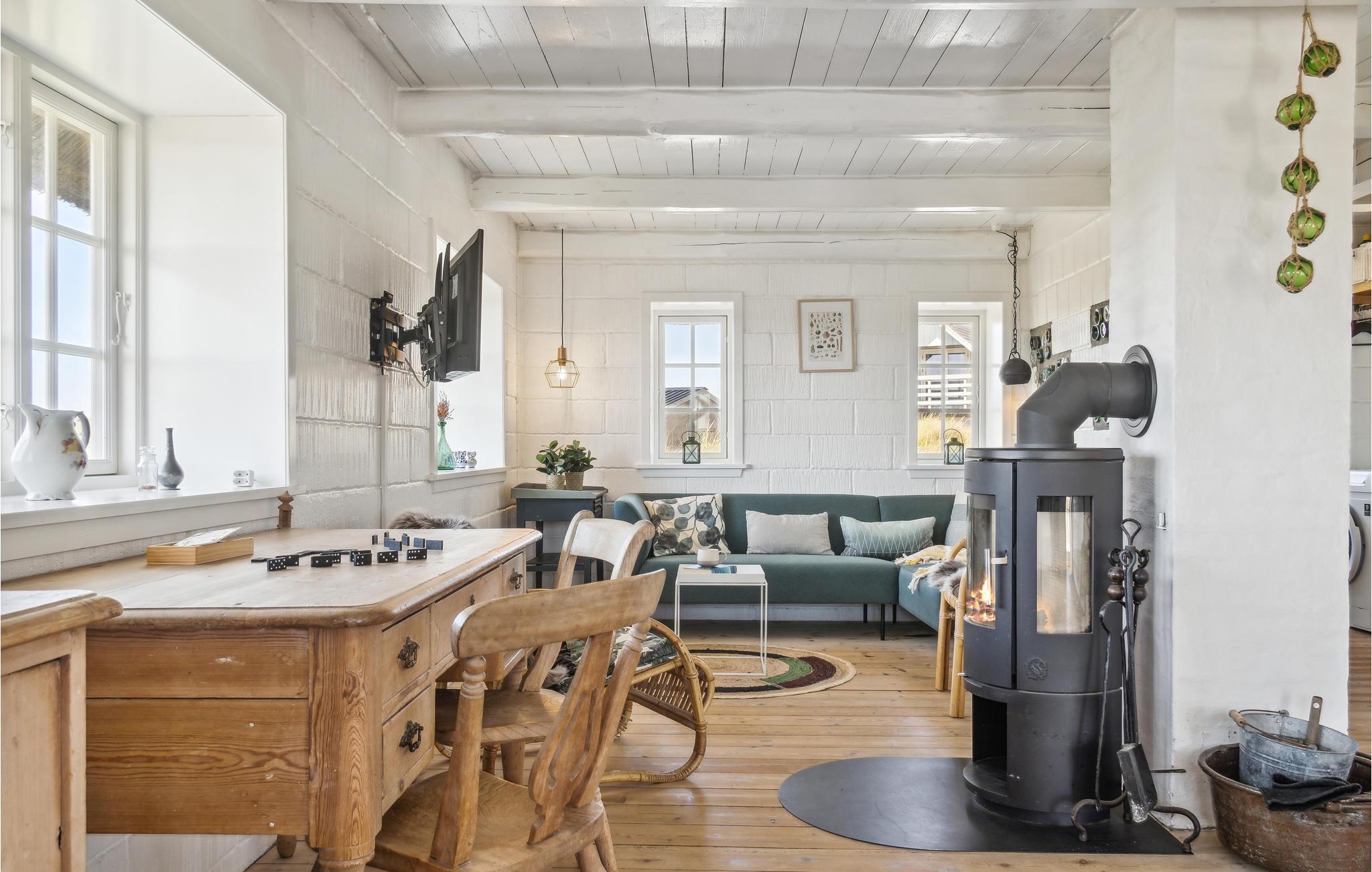 I det attraktive ferieområde Blåvand finder I mellem klitterne dette skønne, stråtækte hus blot få skridt fra Vesterhavet. Indenfor venter jer et personligt og unikt interiør med mange, flotte detaljer, der gør et varmt og lyst indtryk. De stemningsfulde rum har en dejlig ro over sig og lægger op til afslappede læsetimer, sjove brætspilsaftener og hyggelige vinterdage foran brændeovnen, mens I lytter til flammernes knitren.
